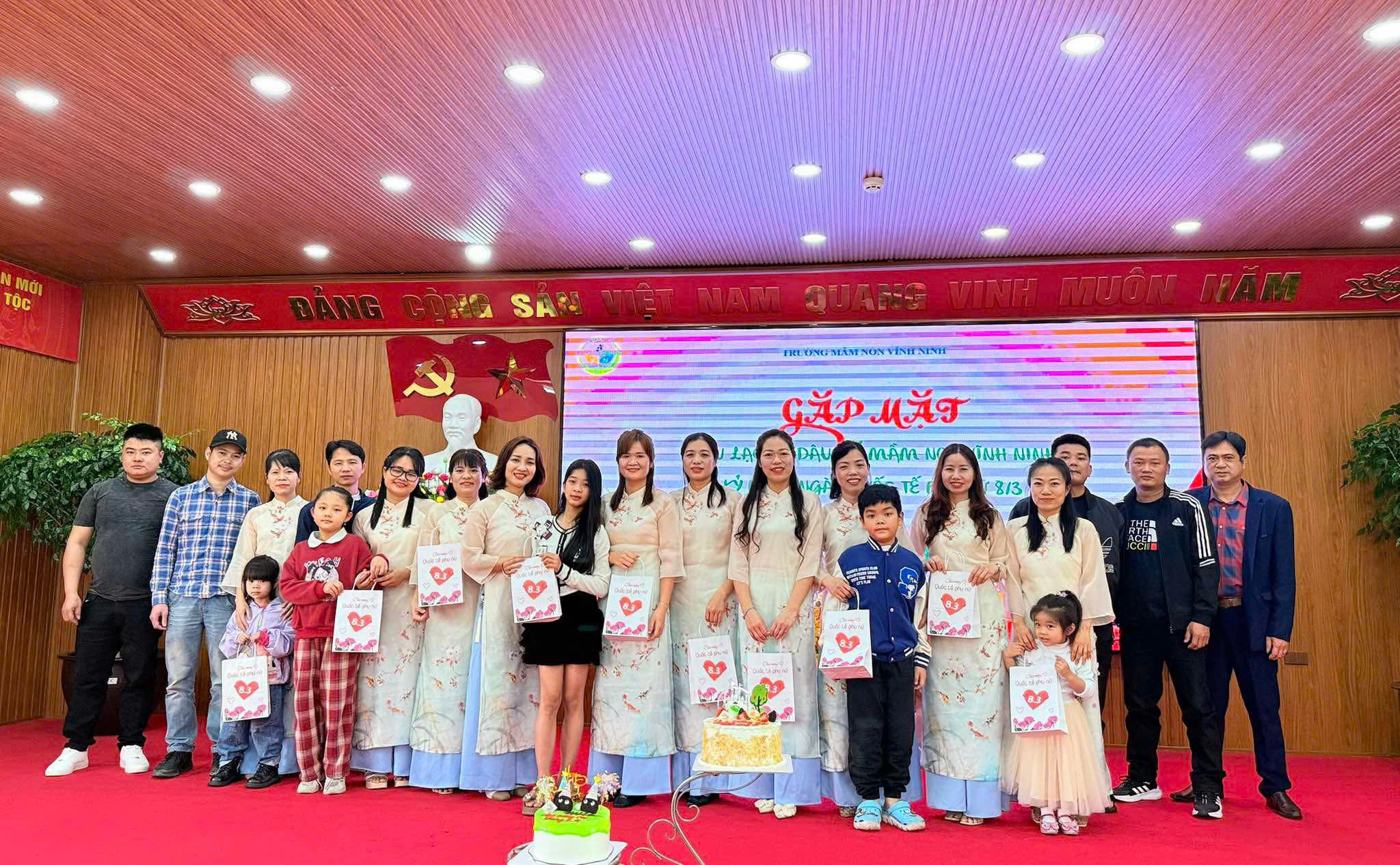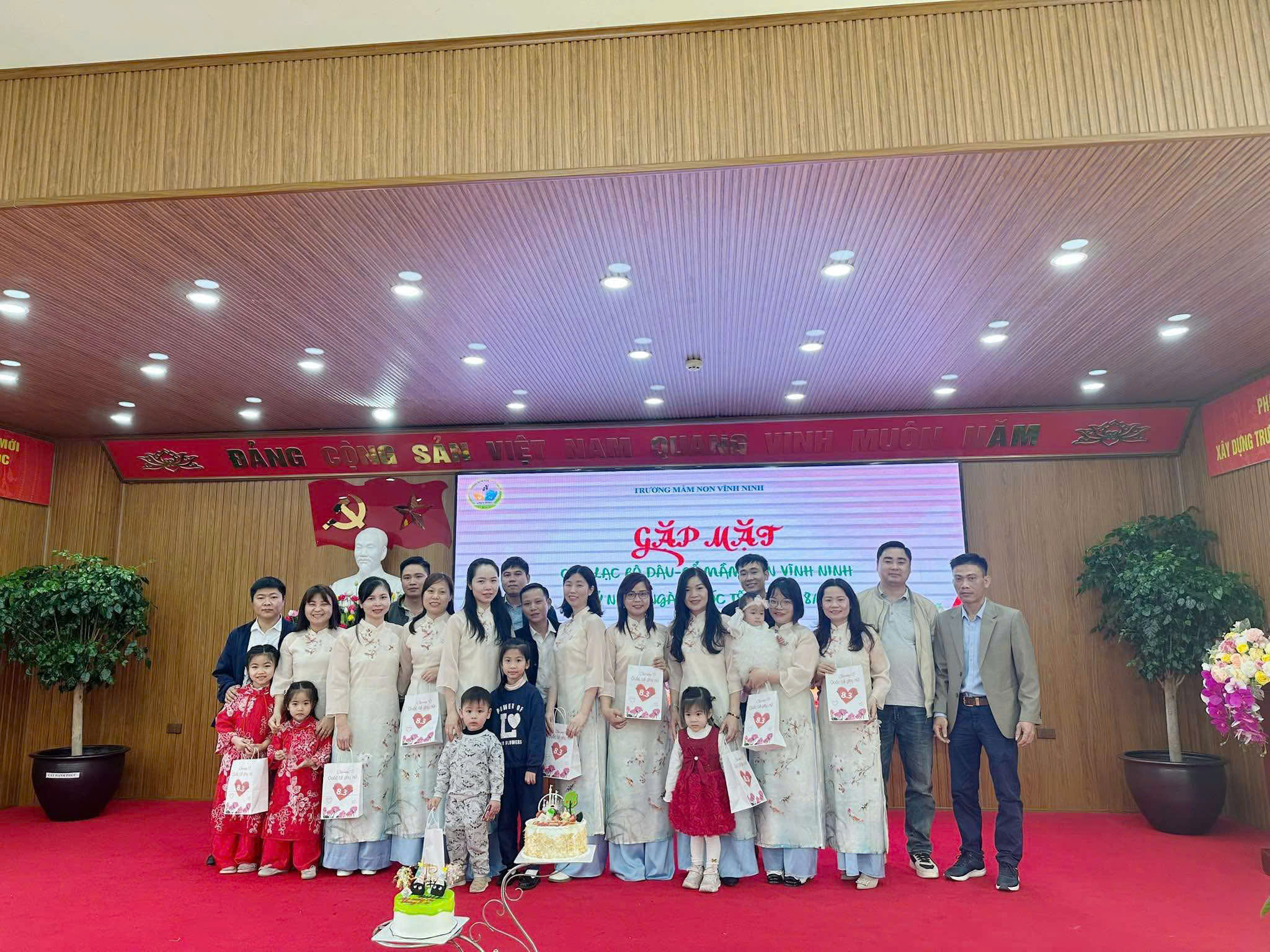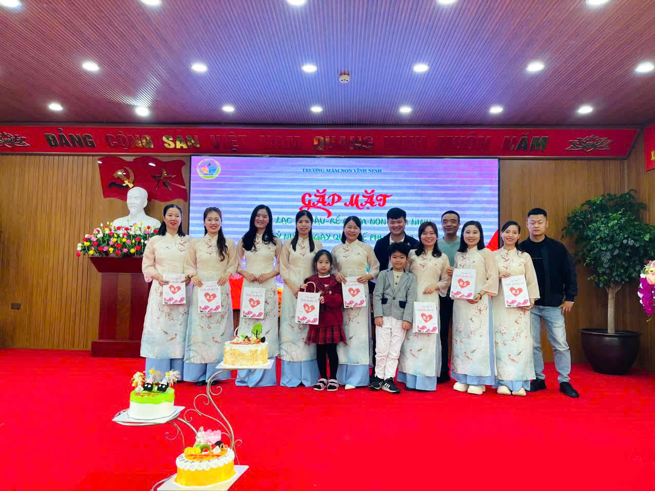 Tham dự buổi gặp mặt có đầy đủ cán bộ, giáo viên, nhân viên và các chàng rể quý, dâu hiền cùng các con yêu của Đại gia đình trường mầm non Vĩnh Ninh. Đây là dịp để ôn lại lịch sử của ngày Quốc tế phụ nữ đồng thời tri ân những đóng góp của chị em phụ nữ và gắn kết các thành viên trong nhà trường với nhau.