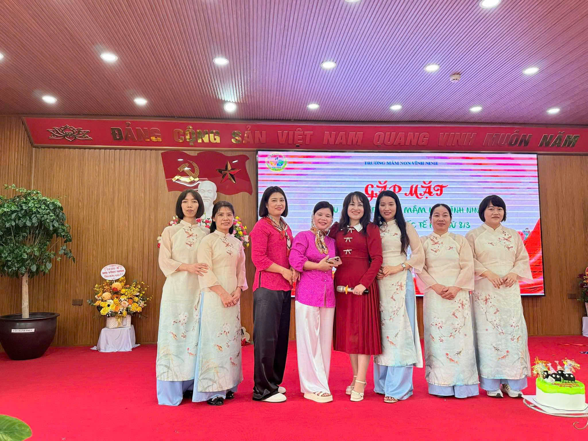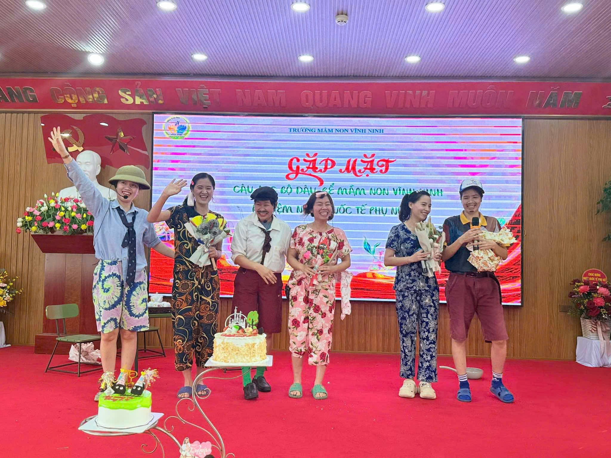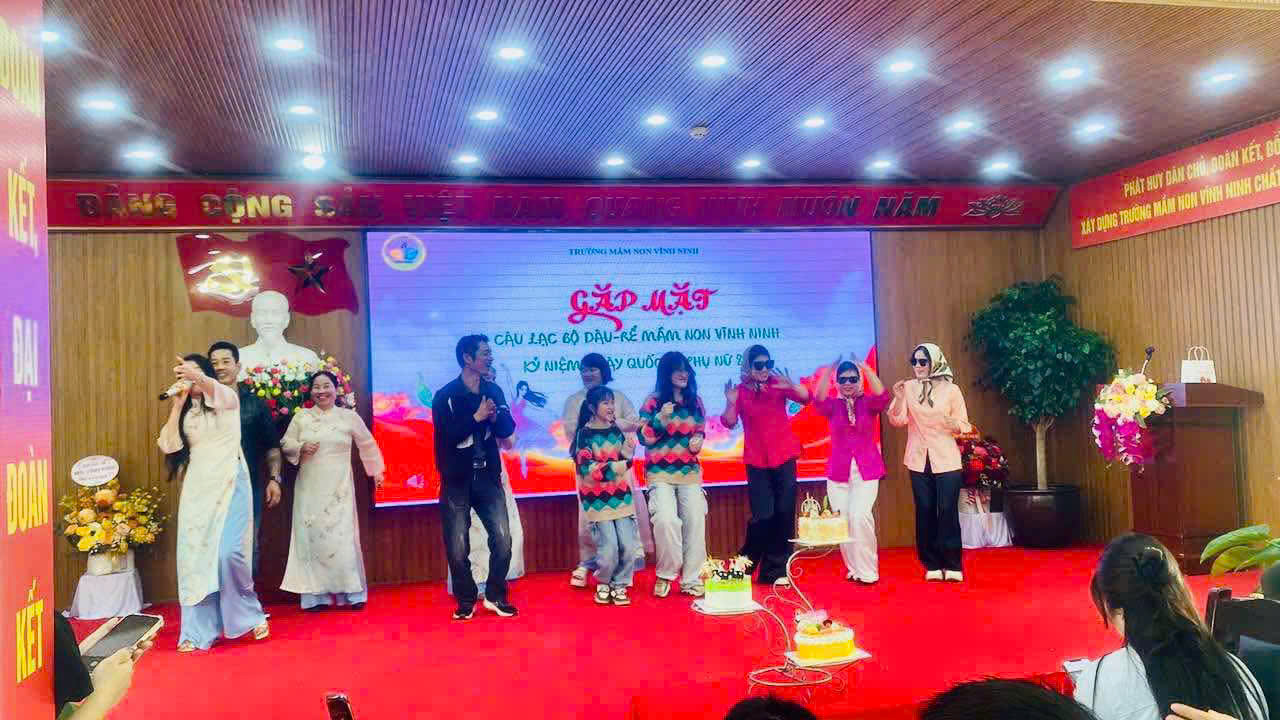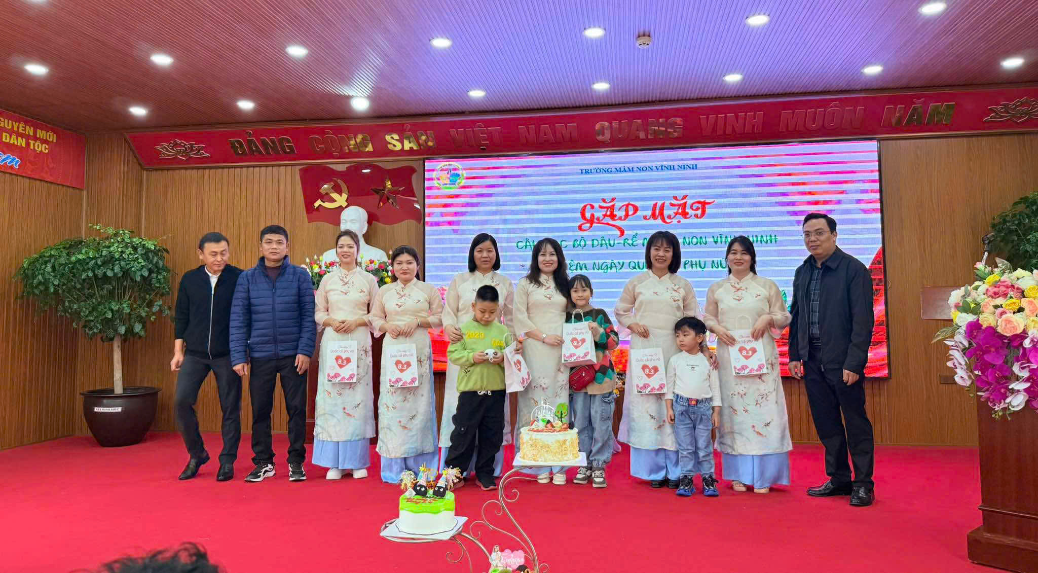 Tham dự buổi gặp mặt có đầy đủ cán bộ, giáo viên, nhân viên và các chàng rể quý, dâu hiền cùng các con yêu của Đại gia đình trường mầm non Vĩnh Ninh. Đây là dịp để ôn lại lịch sử của ngày Quốc tế phụ nữ đồng thời tri ân những đóng góp của chị em phụ nữ và gắn kết các thành viên trong nhà trường với nhau.
