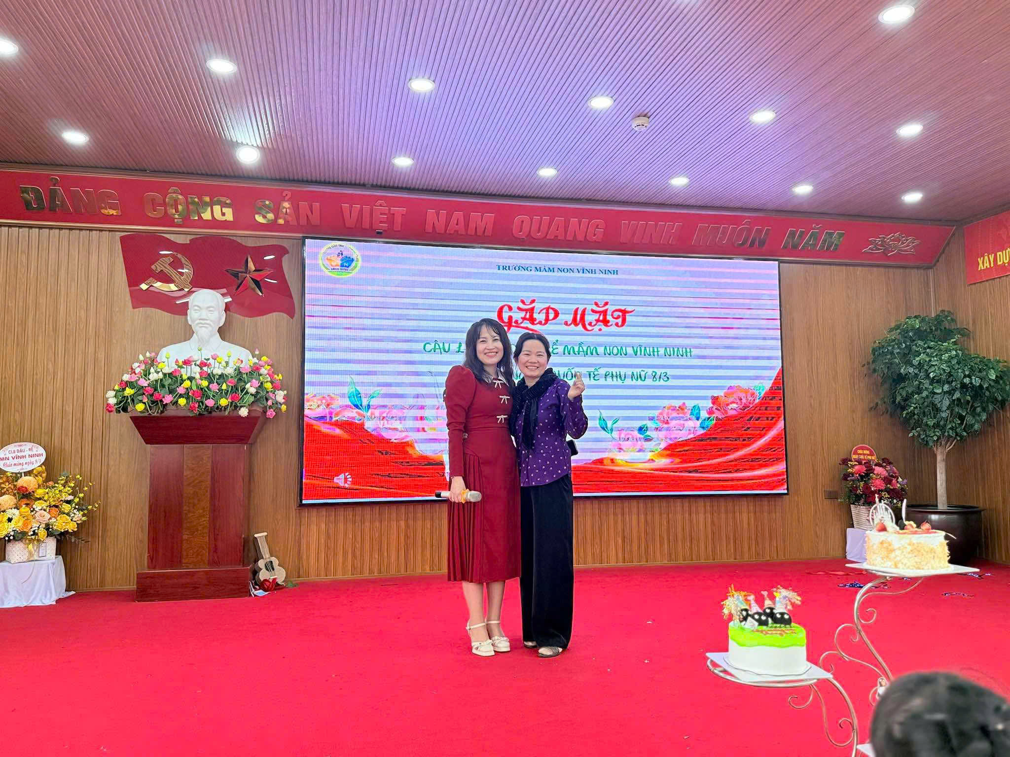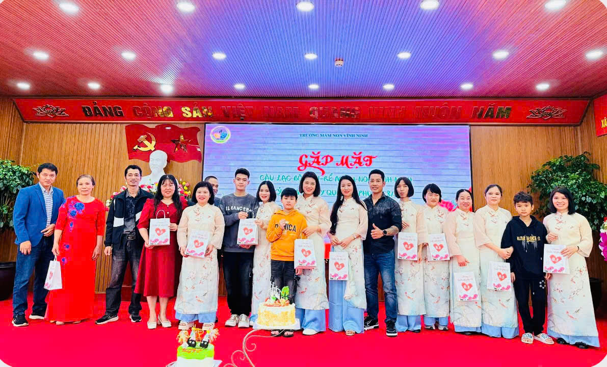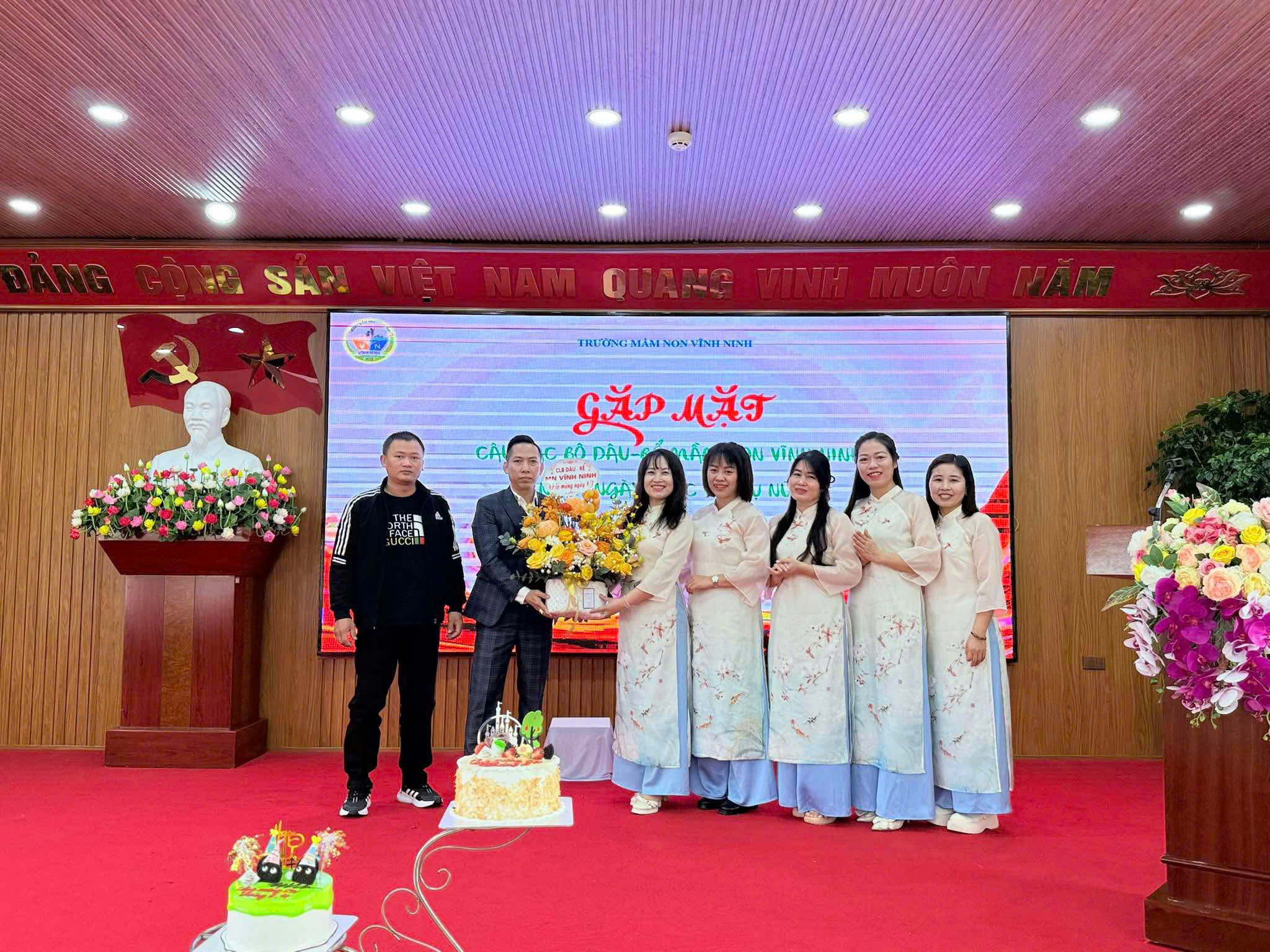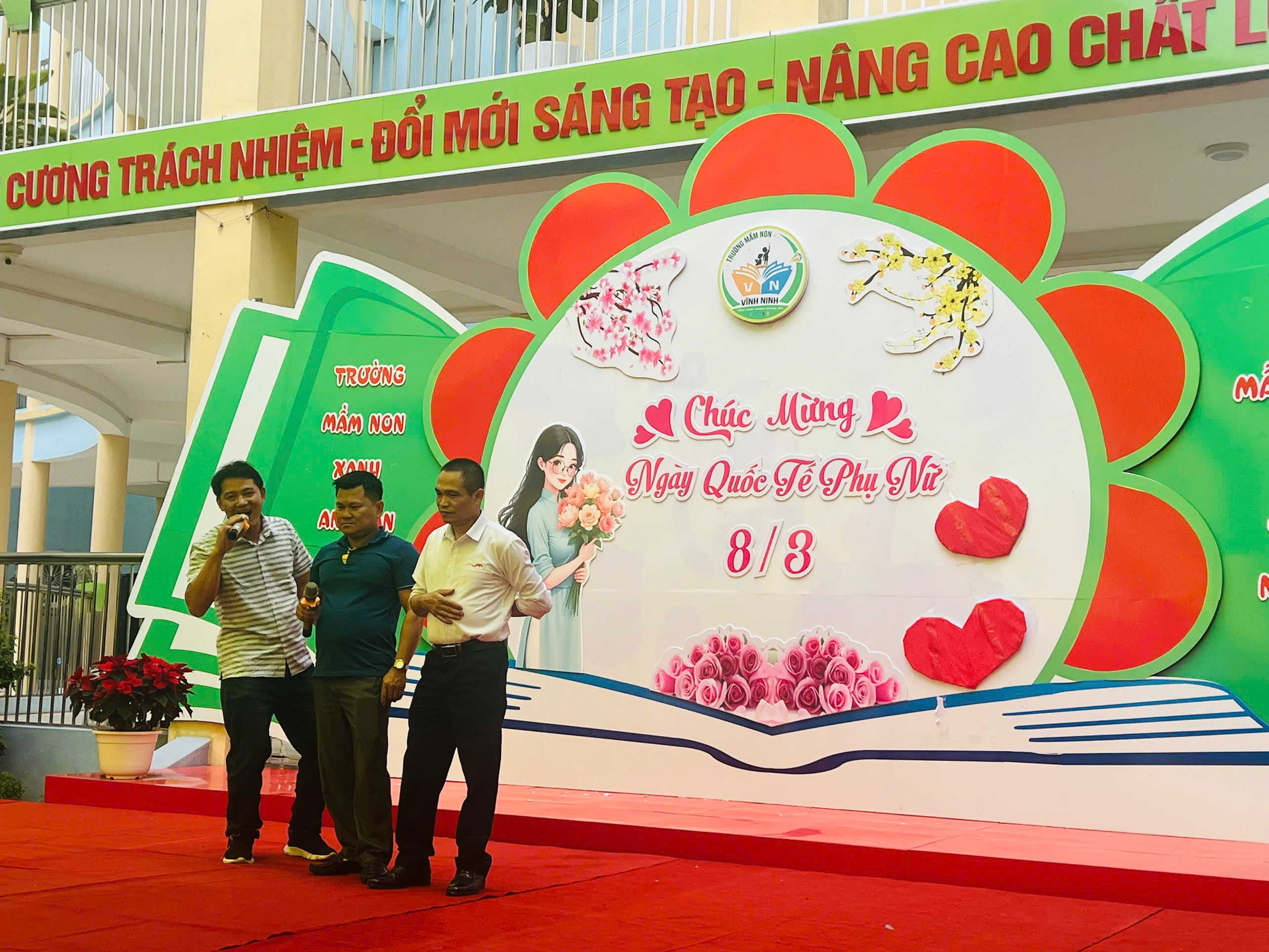 Tham dự buổi gặp mặt có đầy đủ cán bộ, giáo viên, nhân viên và các chàng rể quý, dâu hiền cùng các con yêu của Đại gia đình trường mầm non Vĩnh Ninh. Đây là dịp để ôn lại lịch sử của ngày Quốc tế phụ nữ đồng thời tri ân những đóng góp của chị em phụ nữ và gắn kết các thành viên trong nhà trường với nhau.