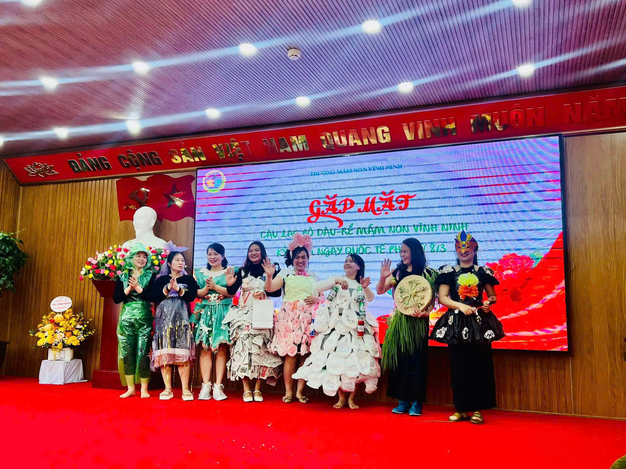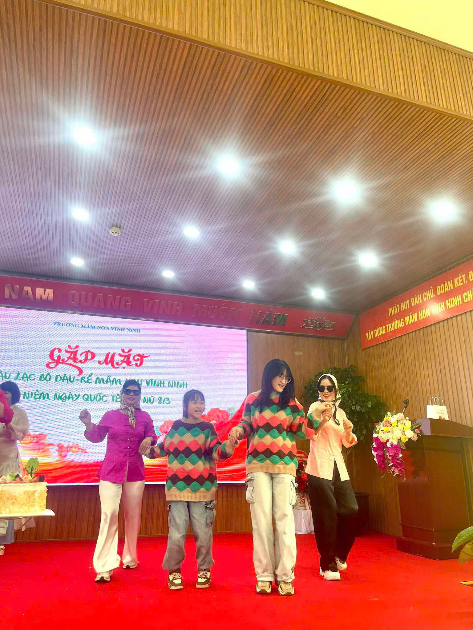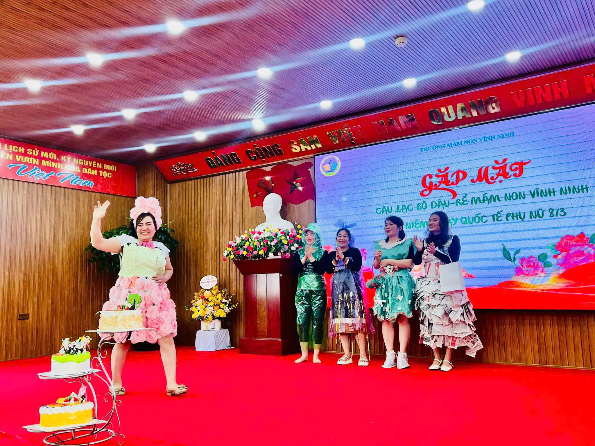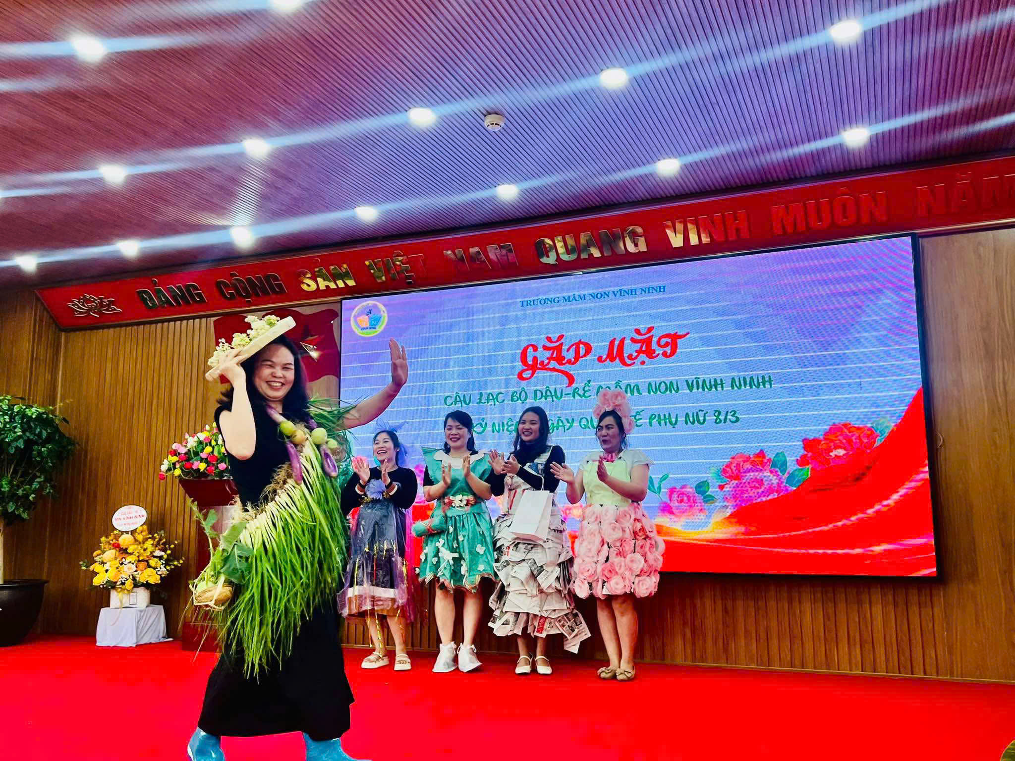 Nhân dịp này, BGH- BCH công đoàn phối hợp với Câu lạc bộ Dâu - Rể trường mầm non Vĩnh Ninh tổ chức Buổi gặp mặt Dâu - Rể với tình cảm trân trọng và tấm lòng tri ân đối với hậu phương lớn của cán bộ, giáo