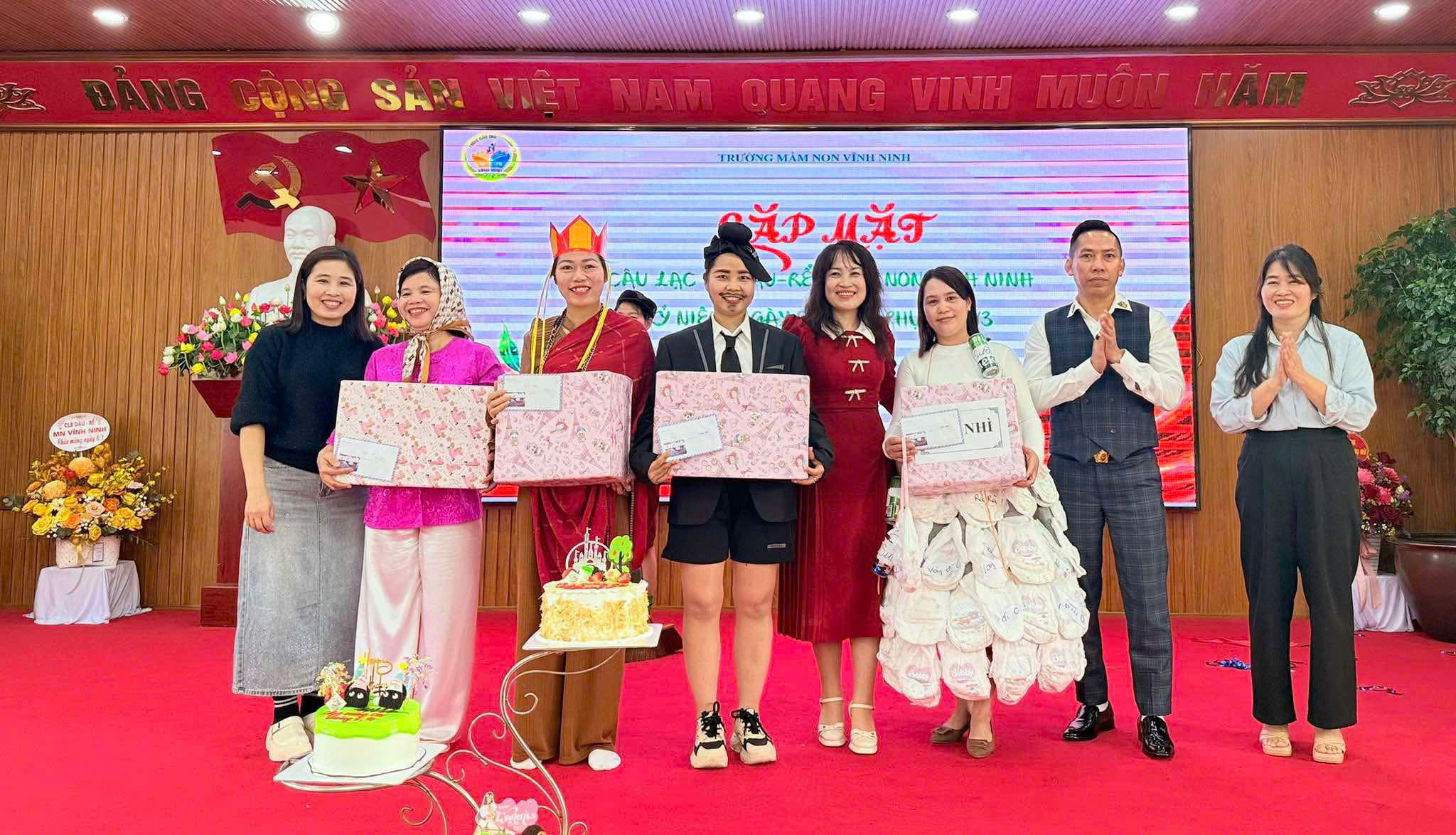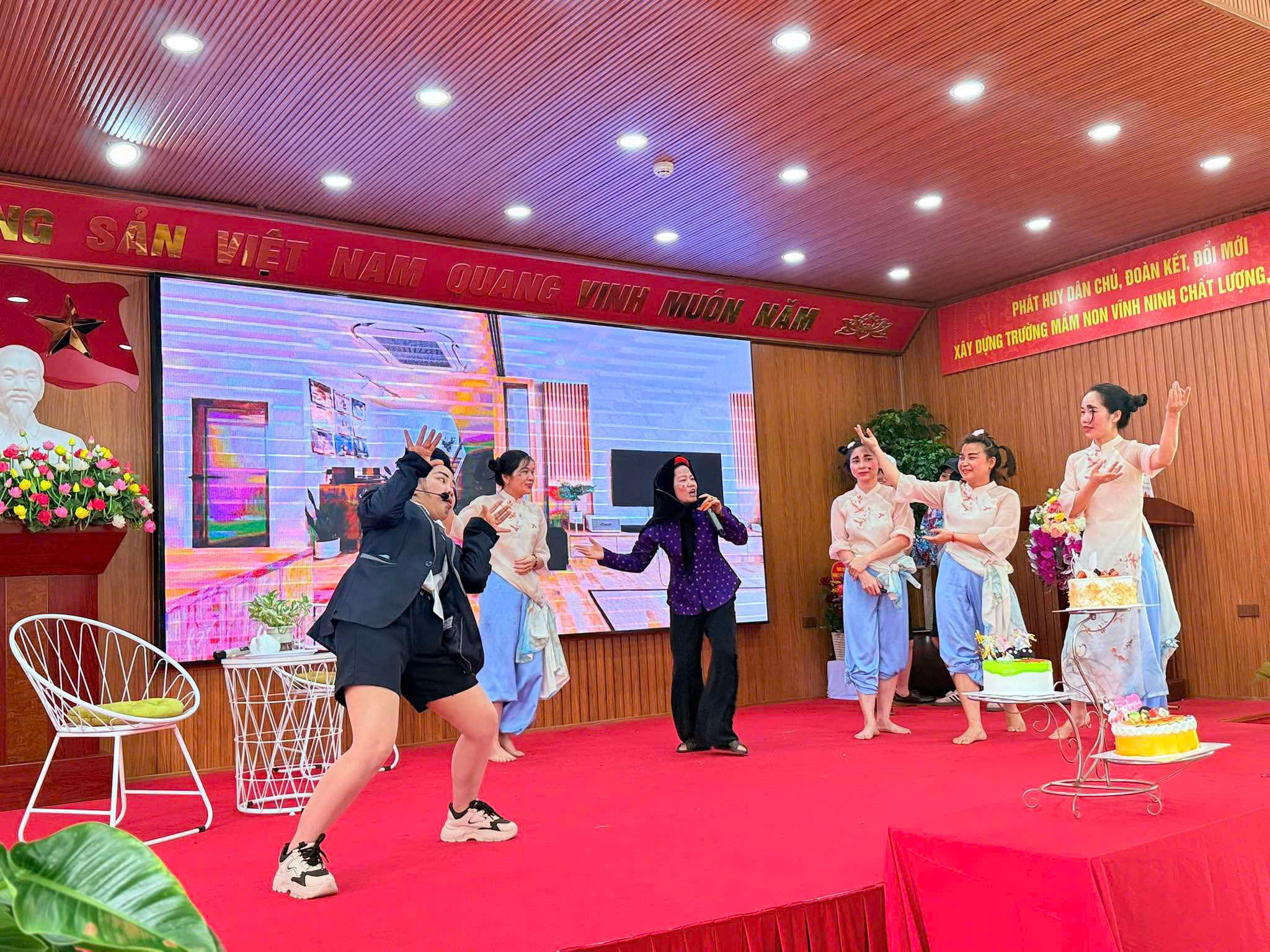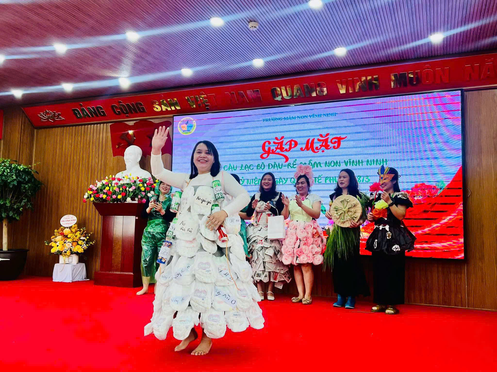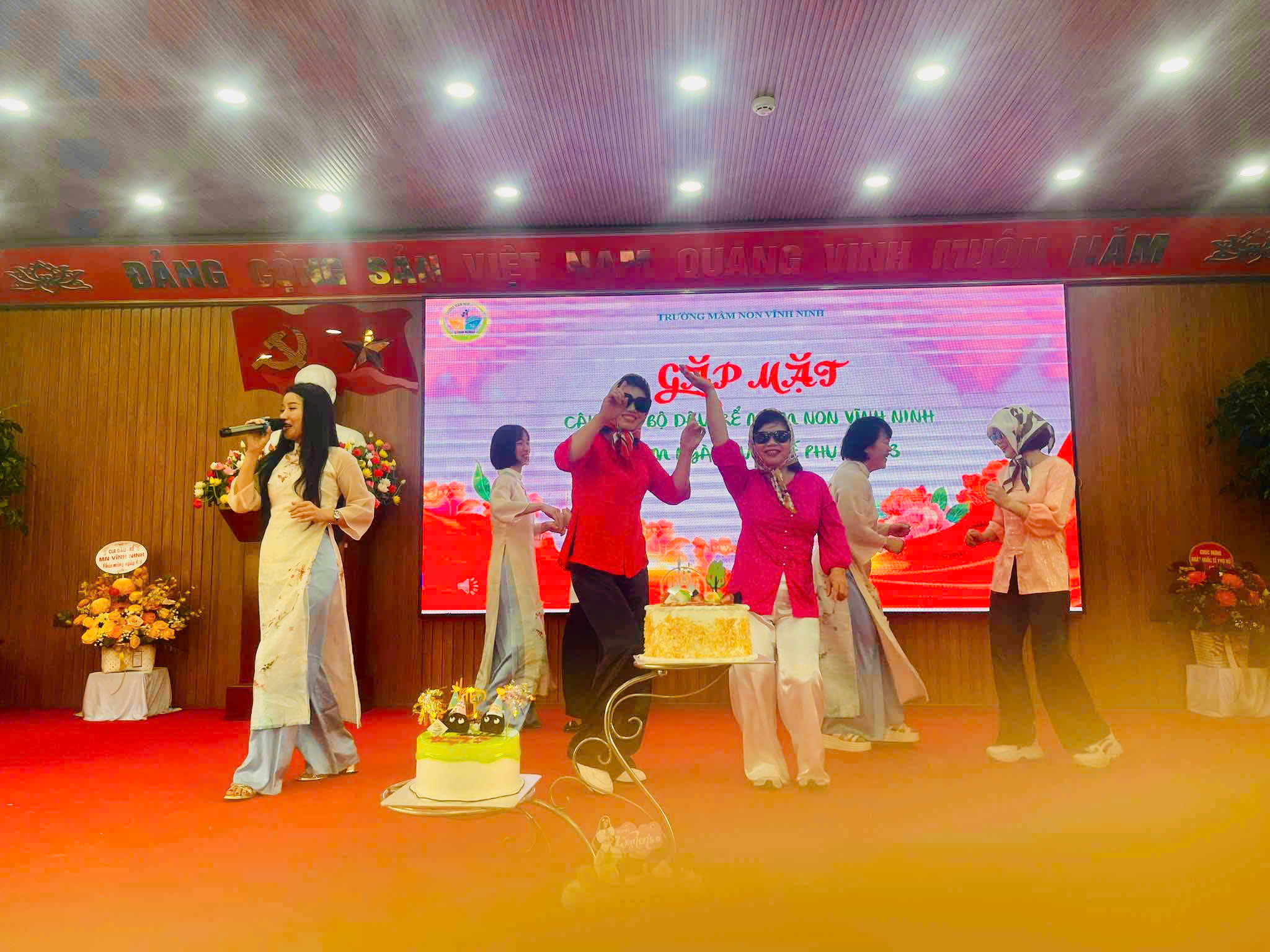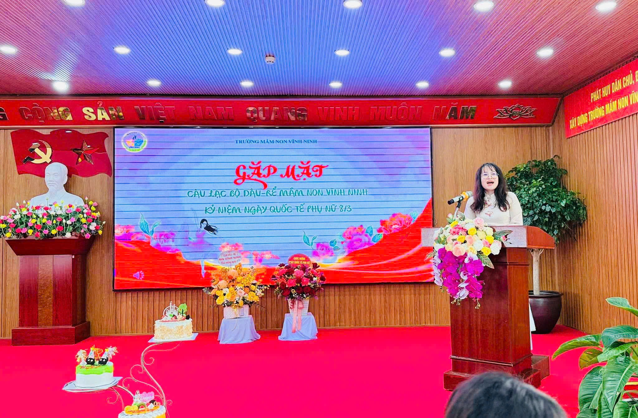 Nhân dịp này, BGH- BCH công đoàn phối hợp với Câu lạc bộ Dâu - Rể trường mầm non Vĩnh Ninh tổ chức Buổi gặp mặt Dâu - Rể với tình cảm trân trọng và tấm lòng tri ân đối với hậu phương lớn của cán bộ, giáo
