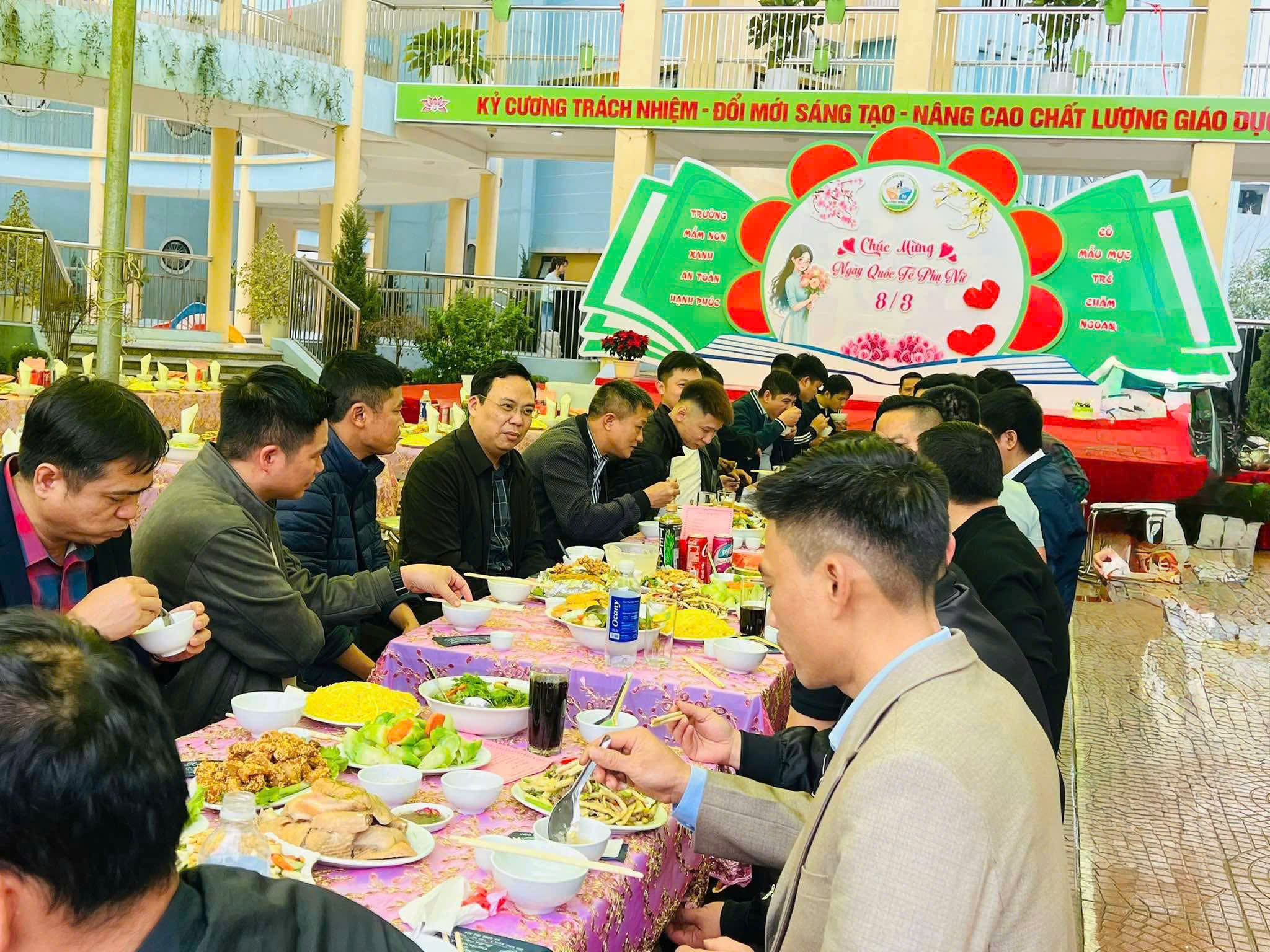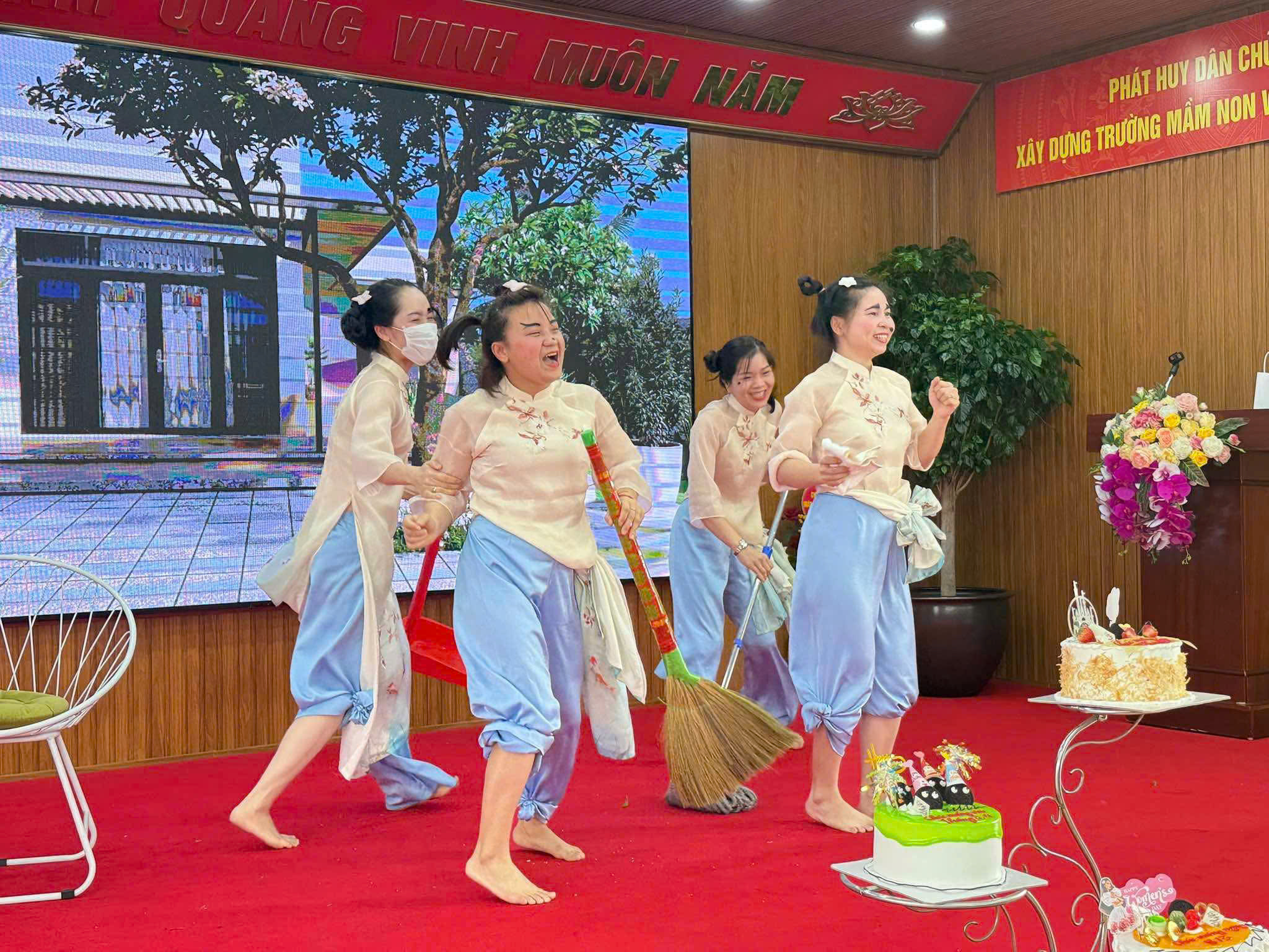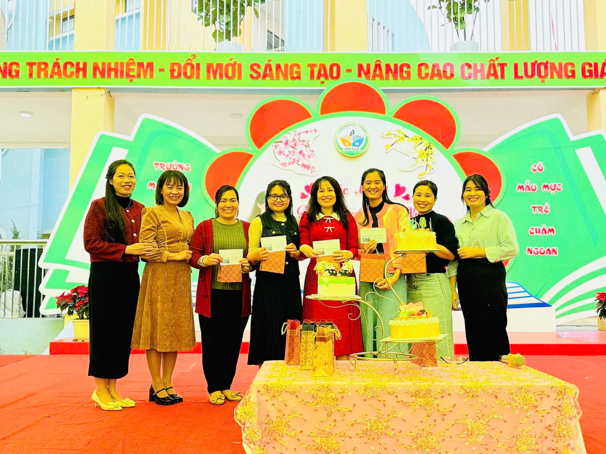 Hòa chung trong niềm vui ngày 8/3, các đức lang quân trao tặng cho các chị, em món quà ý nghĩa, chứa chan tình cảm. Buổi gặp mặt diễn ra trong không khí trang trọng, ấm áp và vui vẻ với những tiết mục hát, múa, nhảy, hài kịch, thời trang...vô cùng đặc sắc cây nhà lá vườn đến từ các cô giáo ở 4 khối lớp và các nhân viên tổ bếp, tổ BV và các Chàng rể quý.