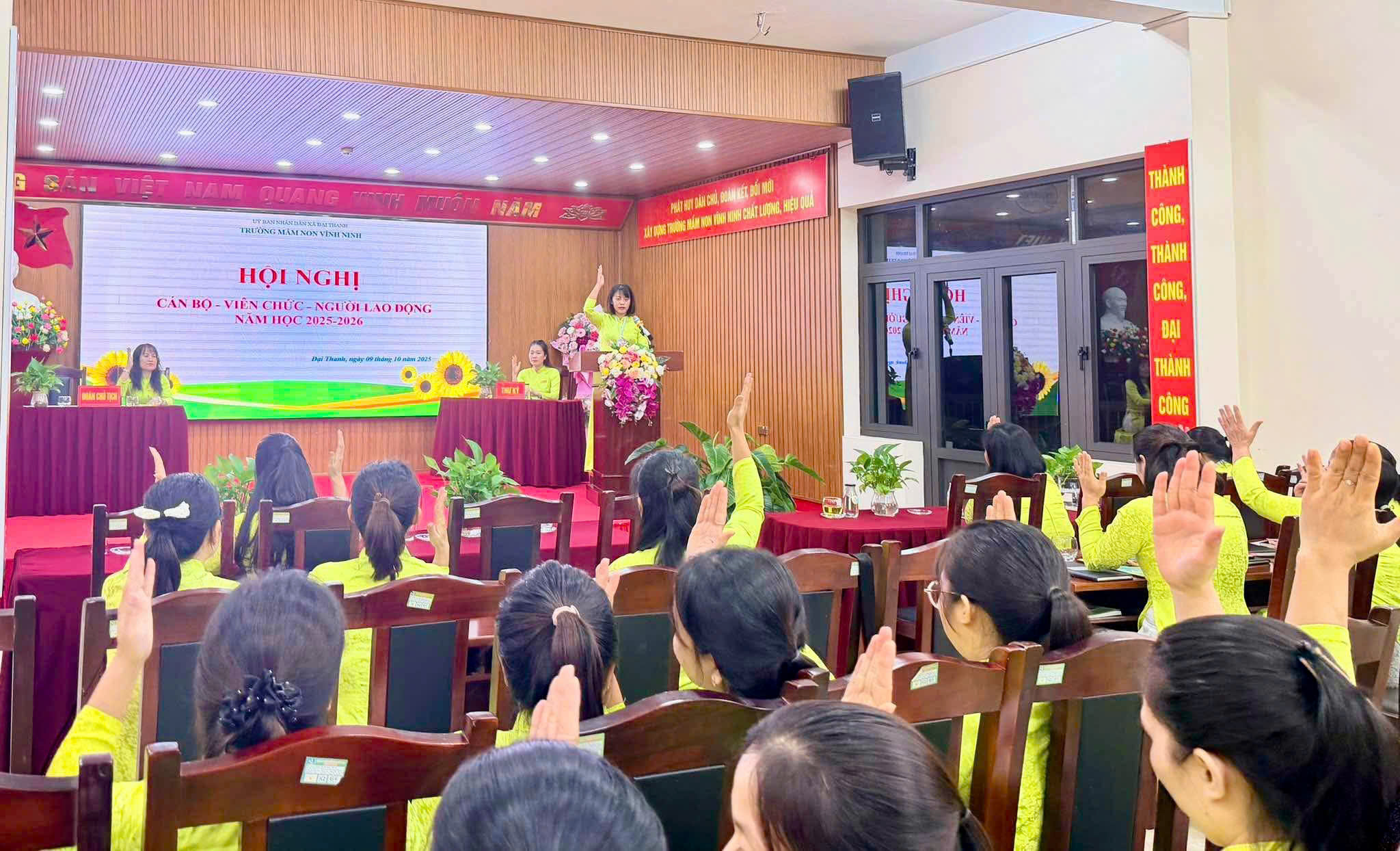 Chiều ngày 9/10/2025, Trường Mầm non Vĩnh Ninh đã tổ chức thành công Hội nghị cán bộ, viên chức, người lao động năm học 2025 – 2026.