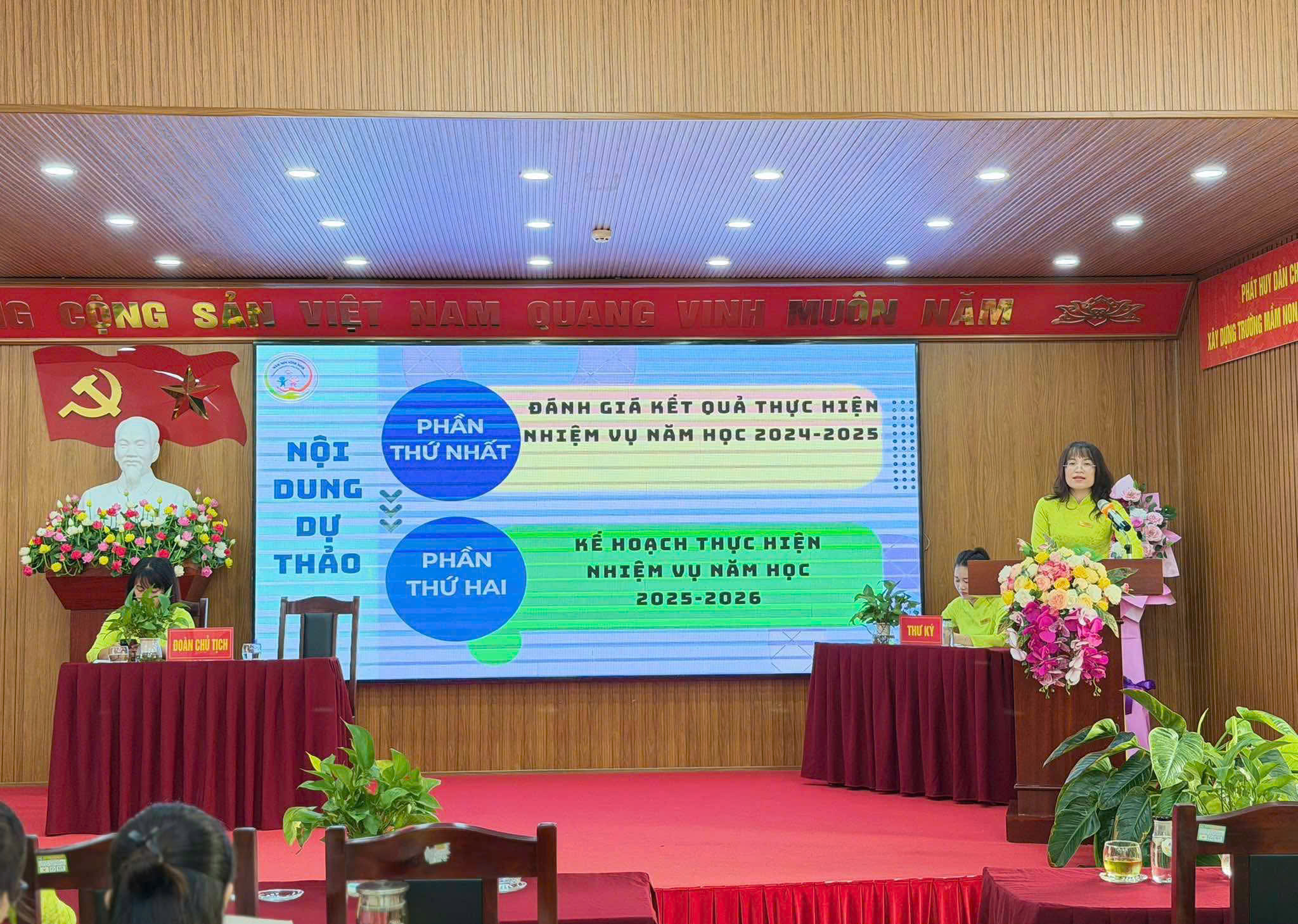 🎯 Hội nghị là dịp để tập thể nhìn lại kết quả năm học vừa qua, đồng thời thống nhất phương hướng, nhiệm vụ và các chỉ tiêu thi đua trọng tâm cho năm học mới, bám sát chủ đề "Kỷ cương - Sáng tạo - Đột phá - Phát triển". Mục tiêu xuyên suốt là nâng cao chất lượng chăm sóc và giáo dục trẻ toàn diện.