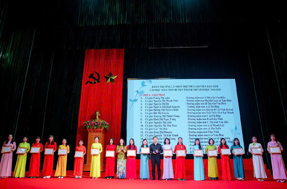 Với sự nỗ lực, cố gắng và sáng tạo của các cô giáo tại Hội thi "Giáo viên dạy giỏi cấp mầm non huyện Thanh Trì năm học 2024-2025", 04 cô giáo tham gia dự thi đã xuất sắc đạt được 04 giải Nhất gồm: