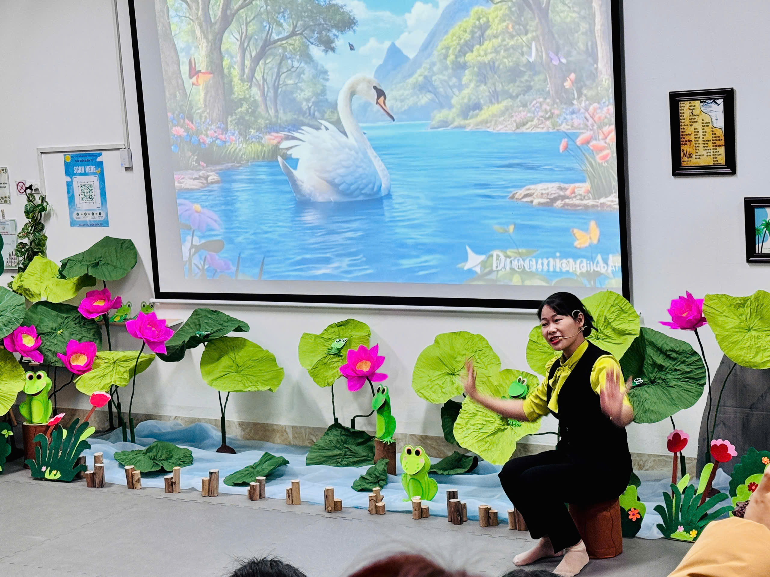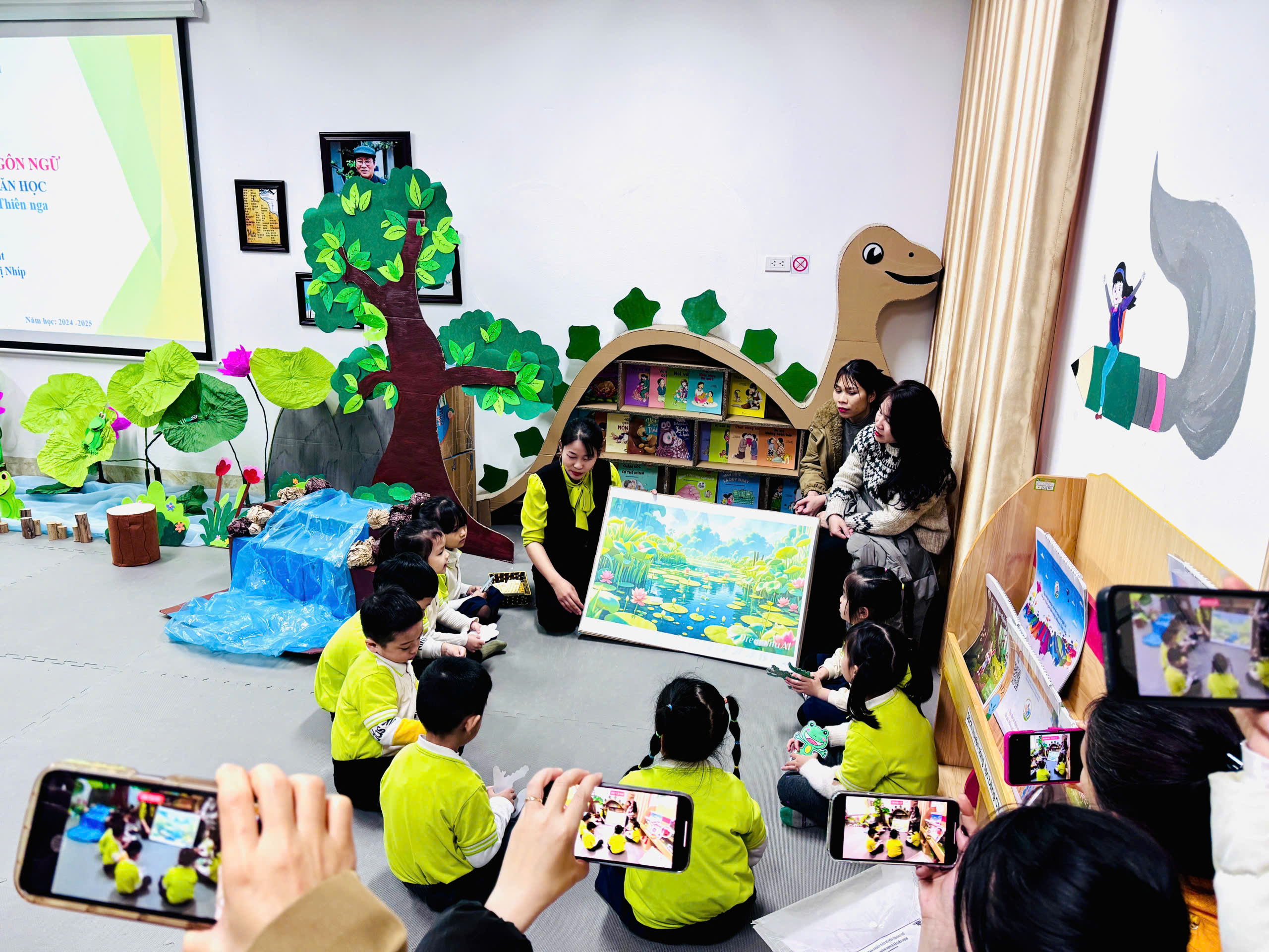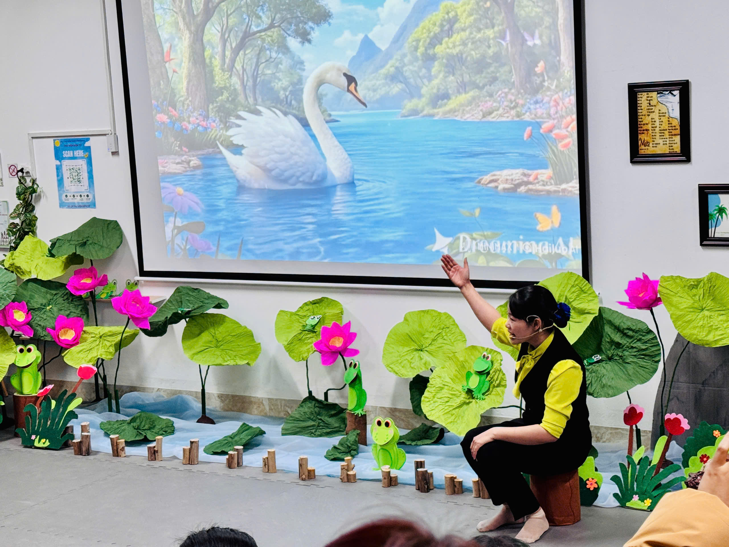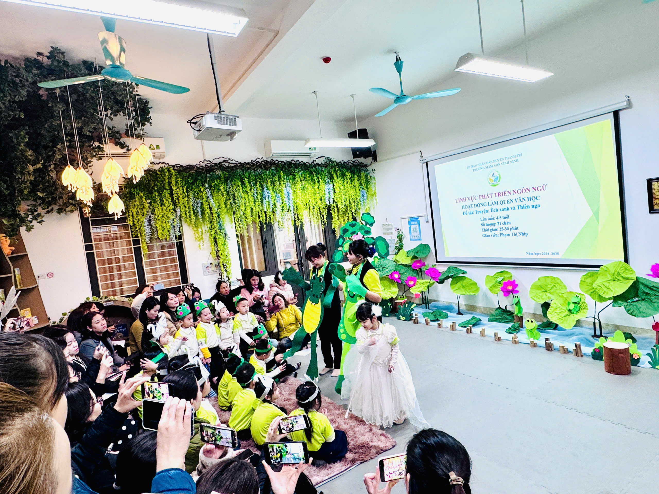Phần chia sẻ của cô giáo Phạm Thị Nhíp - giáo viên lớp mẫu giáo nhỡ với hoạt động Làm quen với Văn học qua câu chuyện "Ếch xanh và Thiên Nga" theo hình thức kể chuyện âm nhạc. Đây là một phương pháp tiếp cận văn học sáng tạo, giúp trẻ không chỉ phát triển khả năng ngôn ngữ mà còn nuôi dưỡng tình yêu với âm nhạc và nghệ thuật biểu diễn.