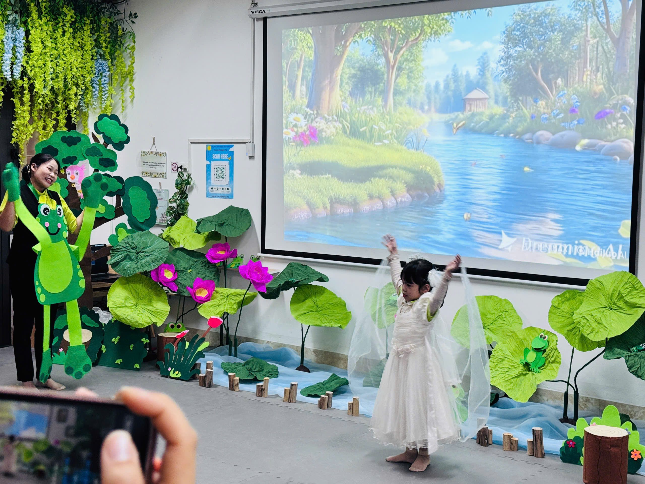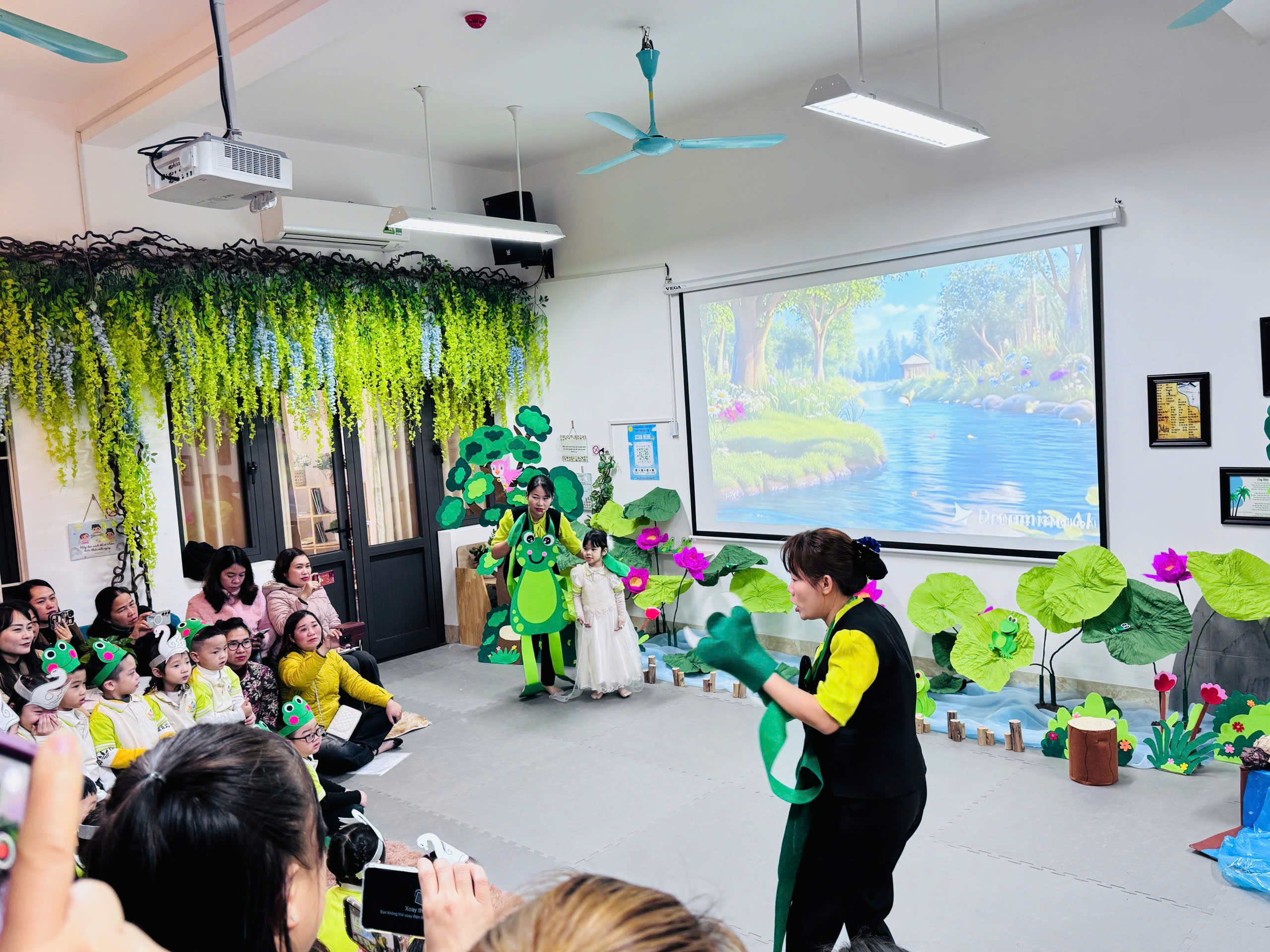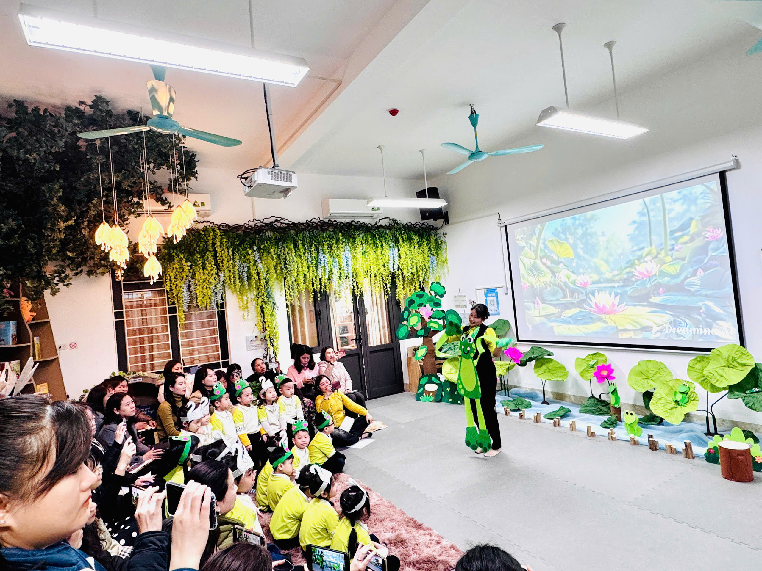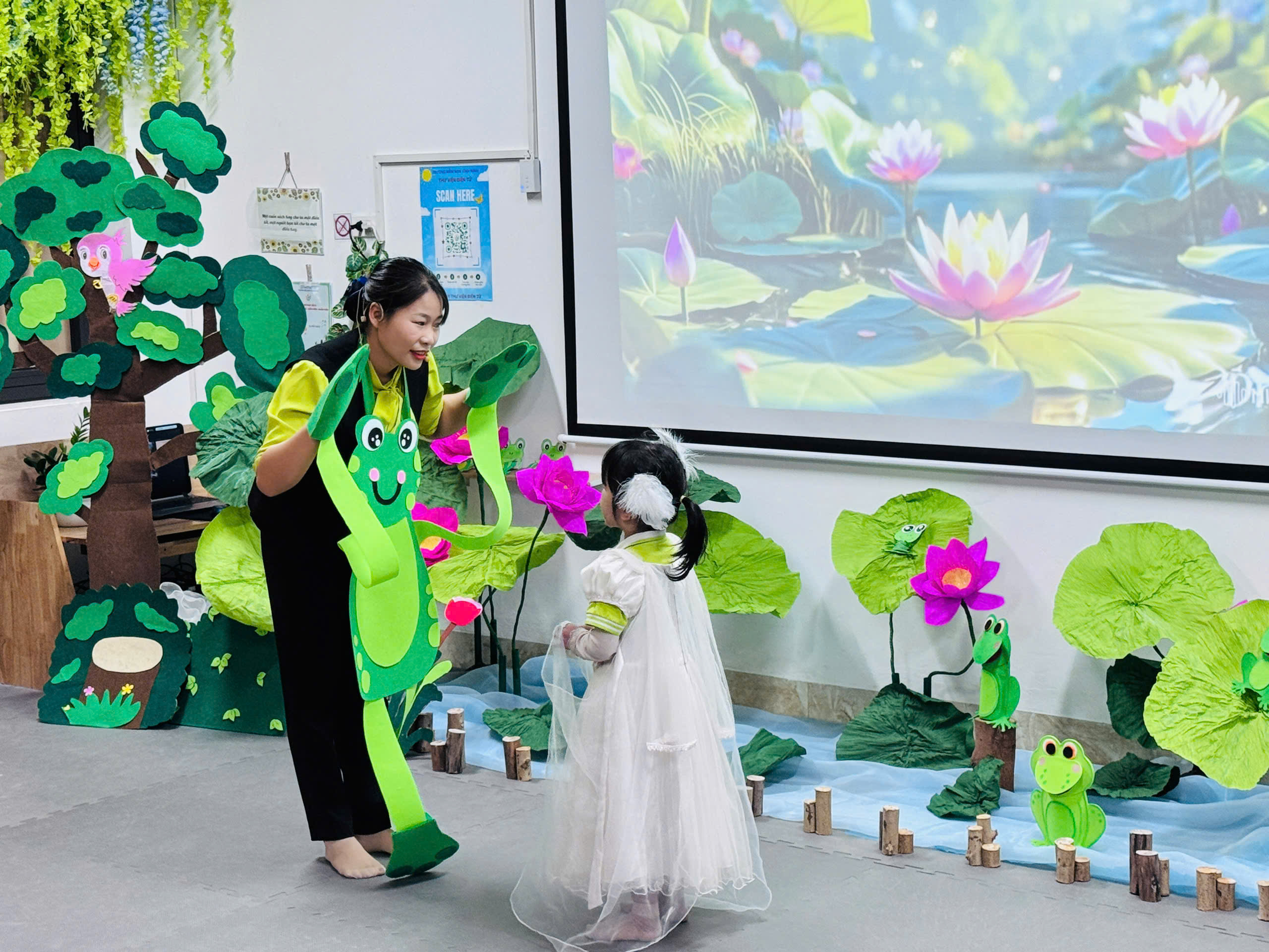Phần chia sẻ của cô giáo Phạm Thị Nhíp - giáo viên lớp mẫu giáo nhỡ với hoạt động Làm quen với Văn học qua câu chuyện "Ếch xanh và Thiên Nga" theo hình thức kể chuyện âm nhạc. Đây là một phương pháp tiếp cận văn học sáng tạo, giúp trẻ không chỉ phát triển khả năng ngôn ngữ mà còn nuôi dưỡng tình yêu với âm nhạc và nghệ thuật biểu diễn.