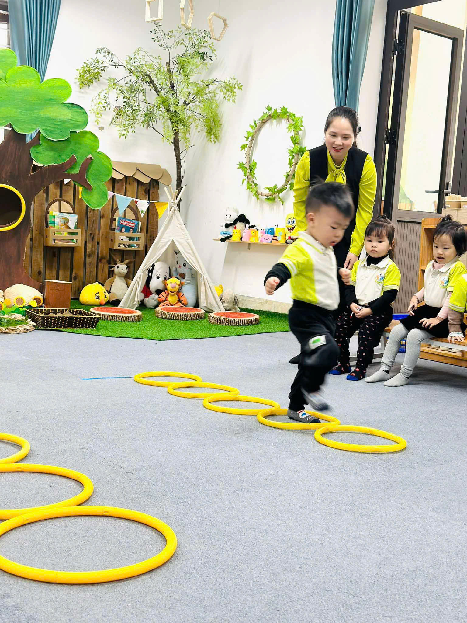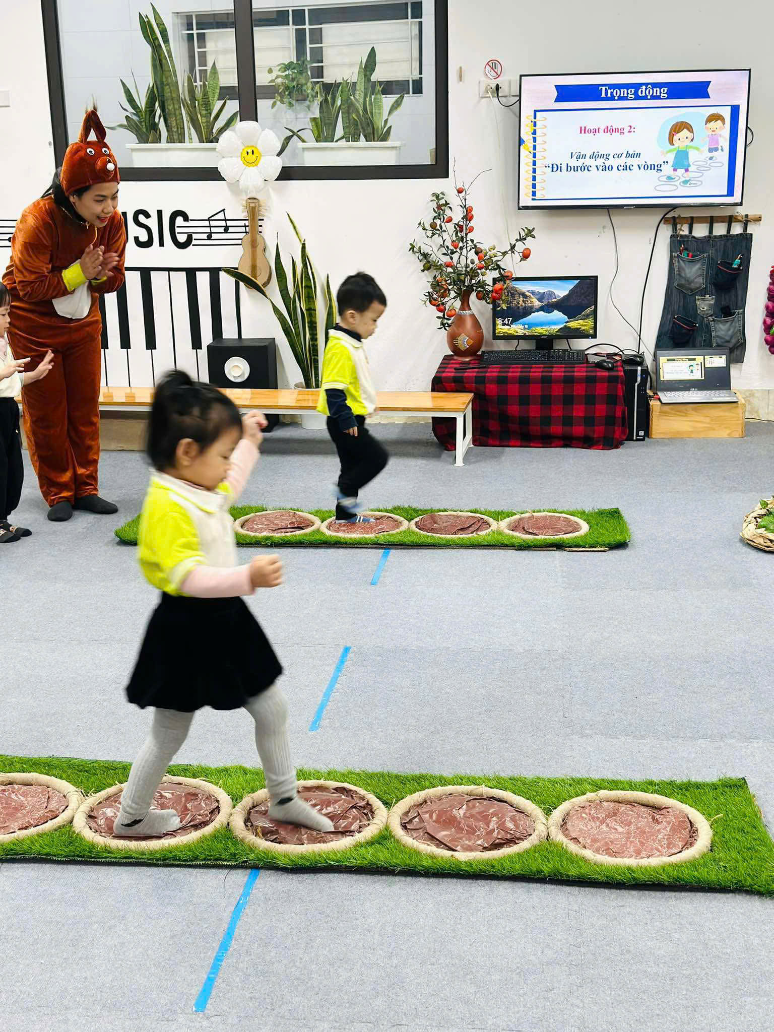 Cô Nguyễn Thị Ngọc Anh - giáo viên lớp nhà trẻ đã chia sẻ về hoạt động vận động với Vận động cơ bản "Đi bước vào các vòng" kết hợp với trò chơi vận động "Chiếc vòng kỳ diệu". Đây là một hoạt động giúp trẻ từ 24-36 tháng tuổi phát triển kỹ năng vận động cơ bản, rèn luyện sự phối hợp giữa tay và chân, nâng cao khả năng giữ thăng bằng và bước đi chắc chắn.