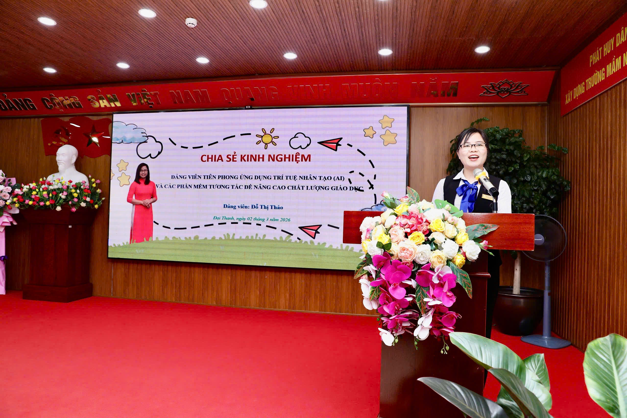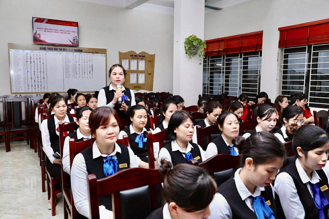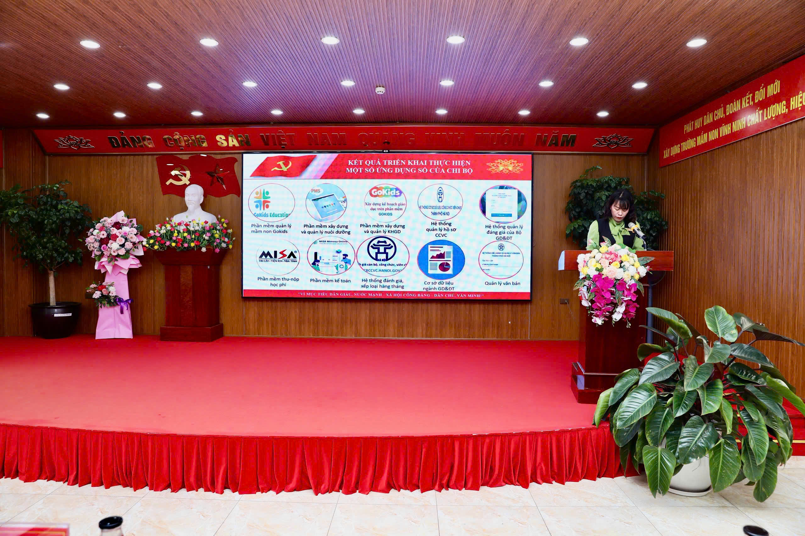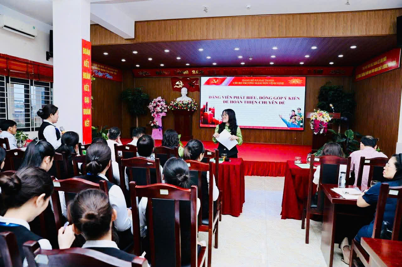 Buổi sinh hoạt được chuẩn bị chu đáo, tổ chức đúng quy trình, đảm bảo tính Đảng, phát huy tinh thần dân chủ và trách nhiệm của mỗi đảng viên. Nội dung thảo luận tập trung làm rõ vai trò tiên phong, gương mẫu của đảng viên trong học tập, rèn luyện và ứng dụng kỹ năng số; khai thác hiệu quả các phần mềm quản lý, ứng dụng trí tuệ nhân tạo, góp phần nâng cao chất lượng chăm sóc, giáo dục trẻ và hiệu quả quản trị nhà trường. Đặc biệt, không khí thảo luận sôi nổi, thẳng thắn, mang tính xây dựng cao đã thể hiện tinh thần đoàn kết, quyết tâm đổi mới, sáng tạo của tập thể chi bộ trong giai đoạn chuyển đổi số hiện nay.