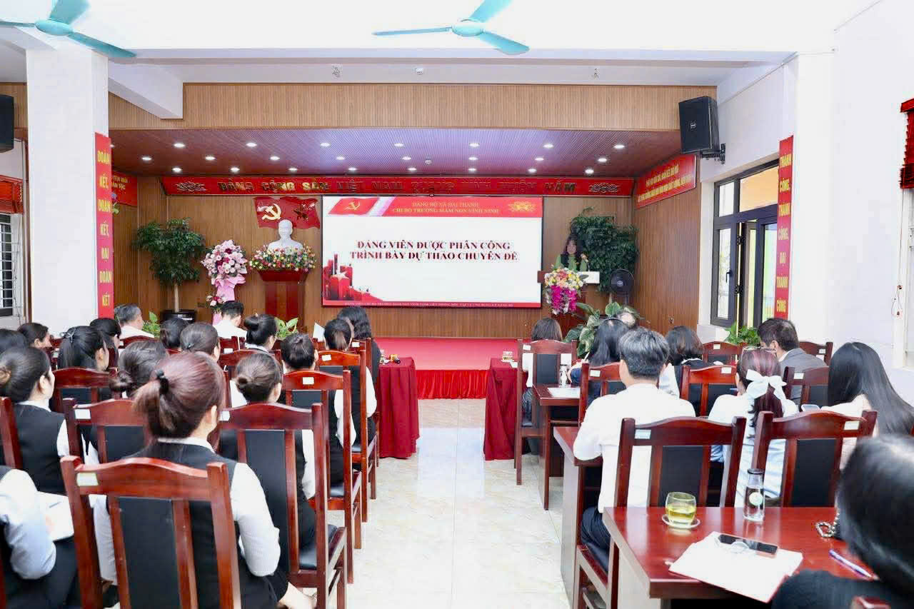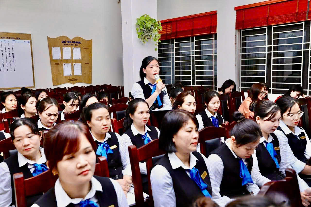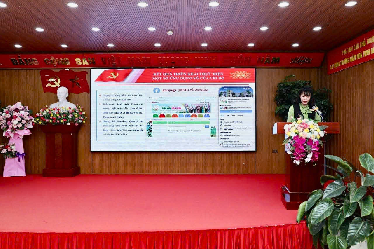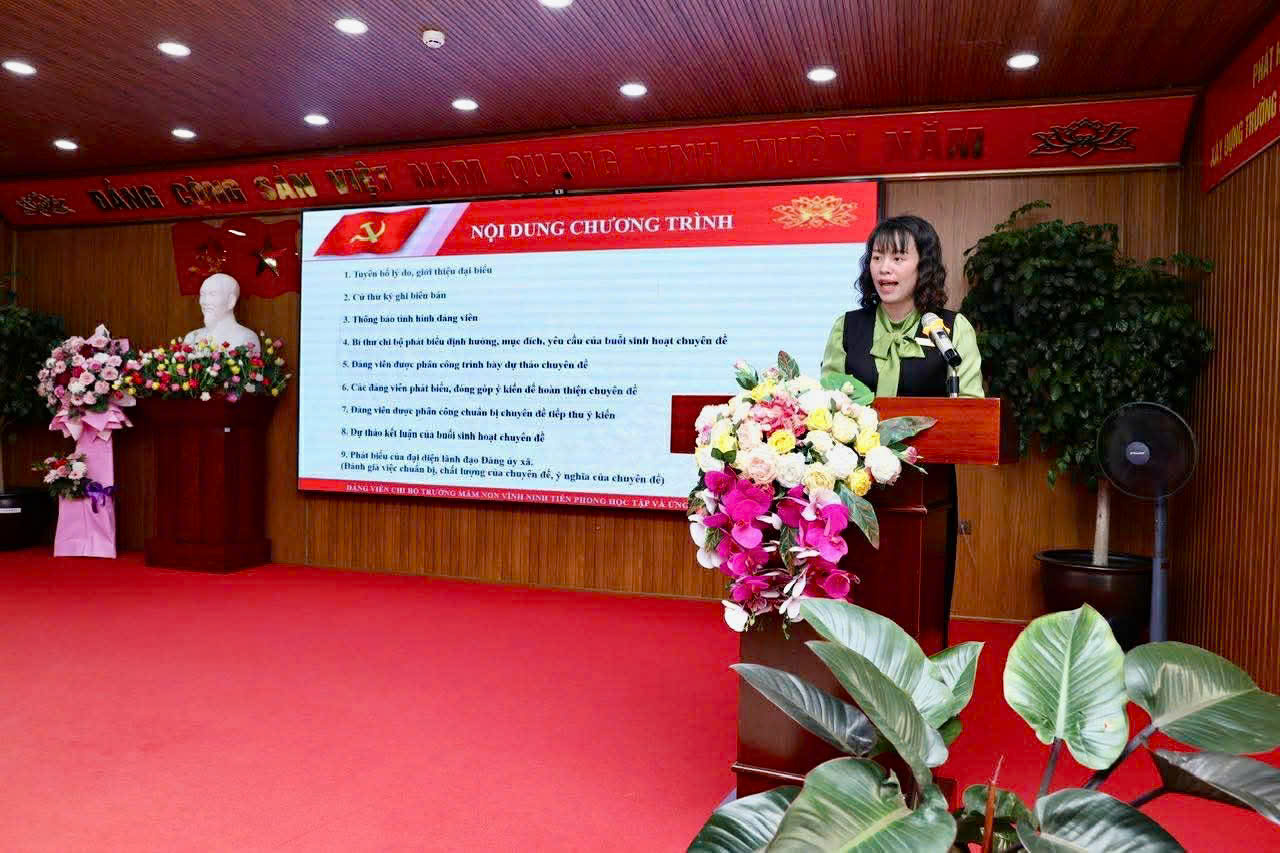 Buổi sinh hoạt được chuẩn bị chu đáo, tổ chức đúng quy trình, đảm bảo tính Đảng, phát huy tinh thần dân chủ và trách nhiệm của mỗi đảng viên. Nội dung thảo luận tập trung làm rõ vai trò tiên phong, gương mẫu của đảng viên trong học tập, rèn luyện và ứng dụng kỹ năng số; khai thác hiệu quả các phần mềm quản lý, ứng dụng trí tuệ nhân tạo, góp phần nâng cao chất lượng chăm sóc, giáo dục trẻ và hiệu quả quản trị nhà trường. Đặc biệt, không khí thảo luận sôi nổi, thẳng thắn, mang tính xây dựng cao đã thể hiện tinh thần đoàn kết, quyết tâm đổi mới, sáng tạo của tập thể chi bộ trong giai đoạn chuyển đổi số hiện nay.