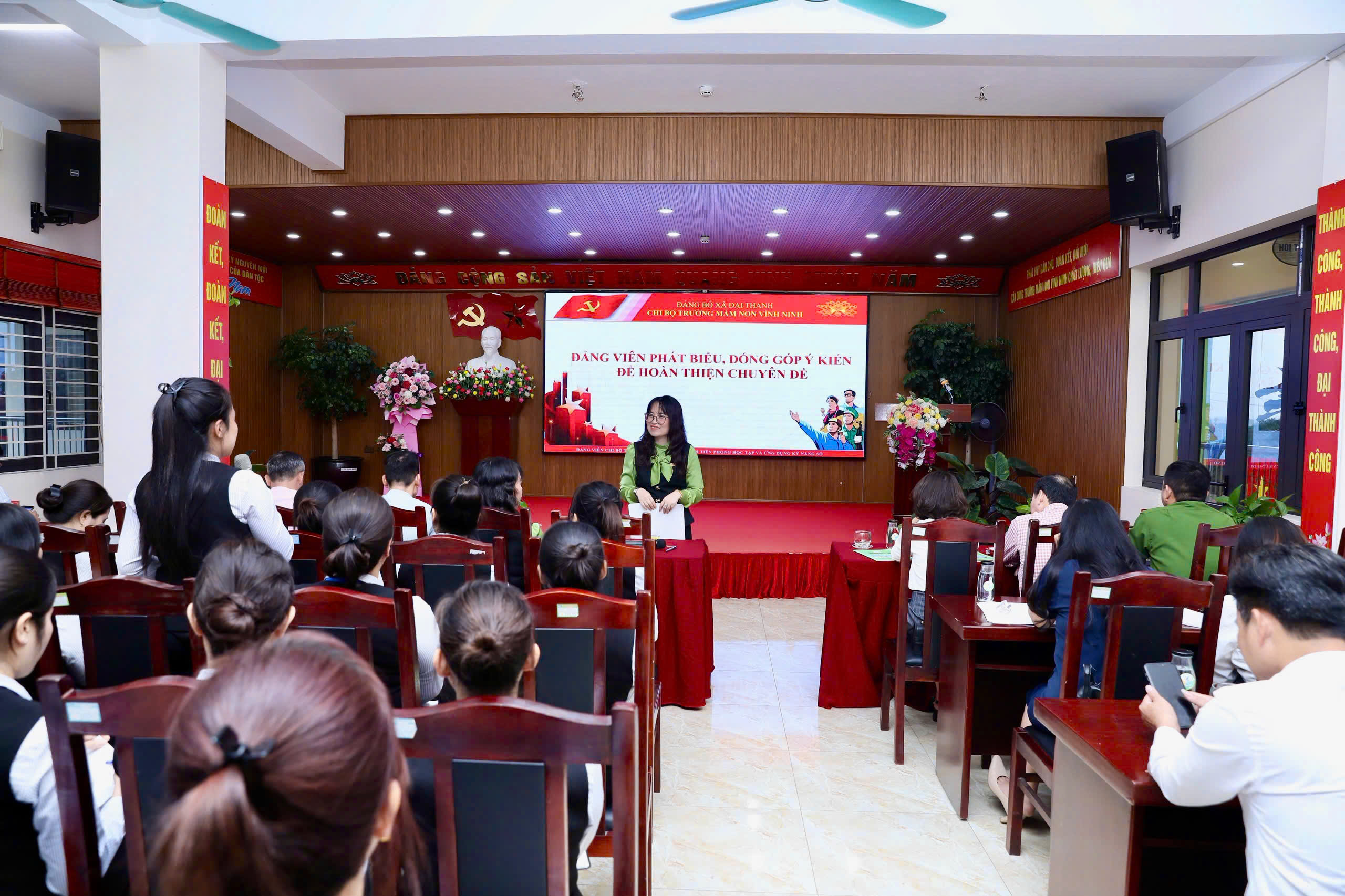 Đồng thời thực hiện sự phân công, chỉ đạo của Ban Thường vụ Đảng ủy xã Đại Thanh về việc tổ chức sinh hoạt chuyên đề “Mẫu” đối với loại hình chi bộ khối hành chính, sự nghiệp, doanh nghiệp.