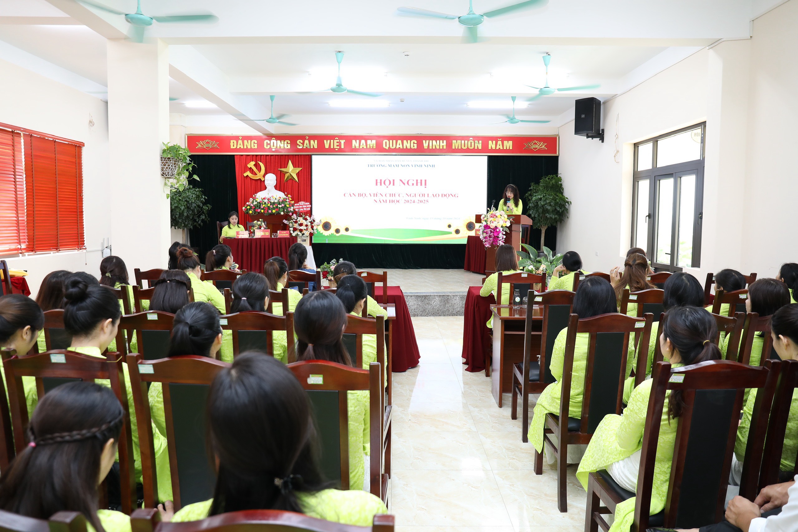 Sáng ngày 15/10/2024, trường mầm non Vĩnh Ninh long trọng tổ chức Hội nghị Cán bộ, Viên chức, người lao động năm học 2024-2025