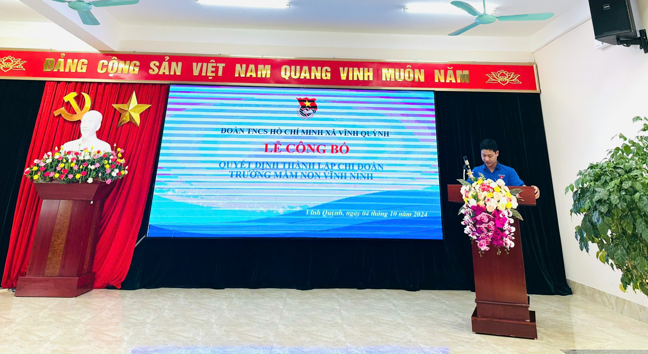🌟Thay mặt Thường trực Đoàn xã, đồng chí Nguyễn Duy Bắc - ĐUV, Bí thư đã phát biểu giao nhiệm vụ cho chi đoàn mầm non Vĩnh Ninh. Cũng tại buổi lễ, chi đoàn đã vinh dự được lắng nghe ý kiến chỉ đạo của đồng chí Dương Văn Độ - Phó Bí thư thường trực Đảng ủy xã Vĩnh Quỳnh.