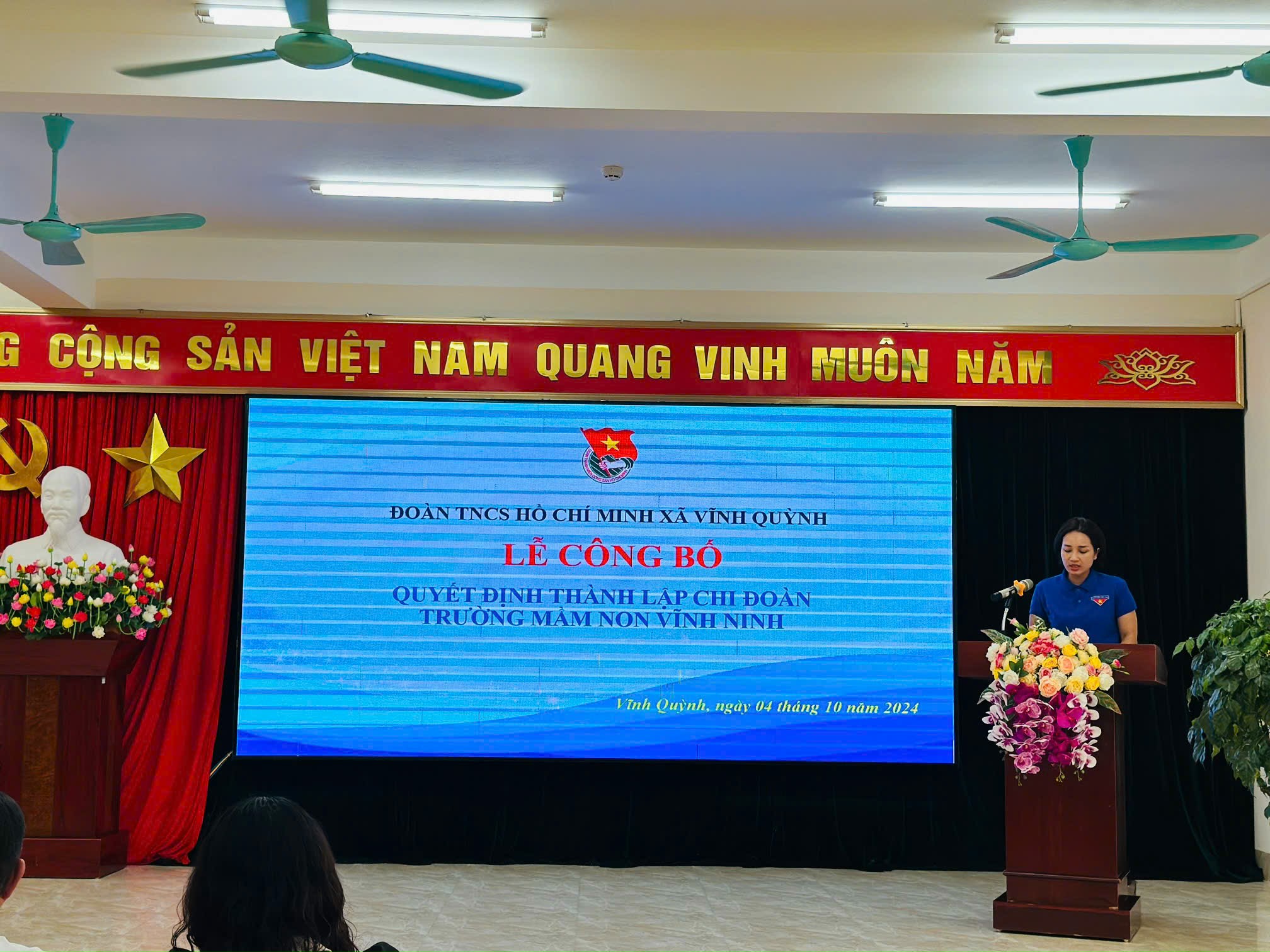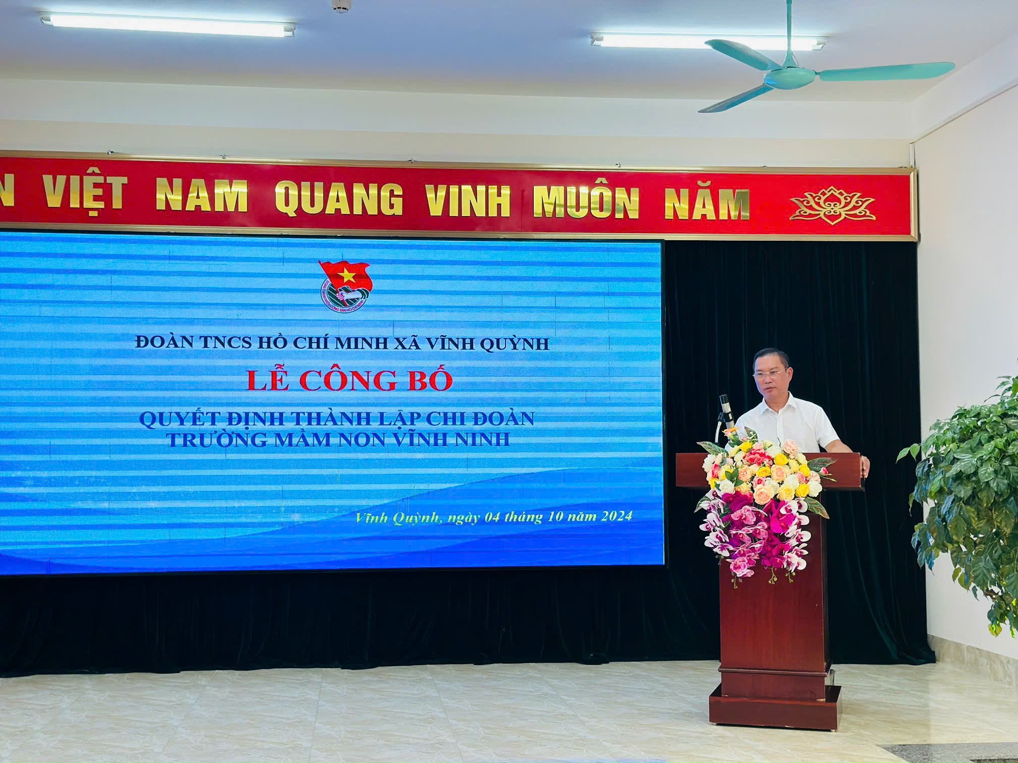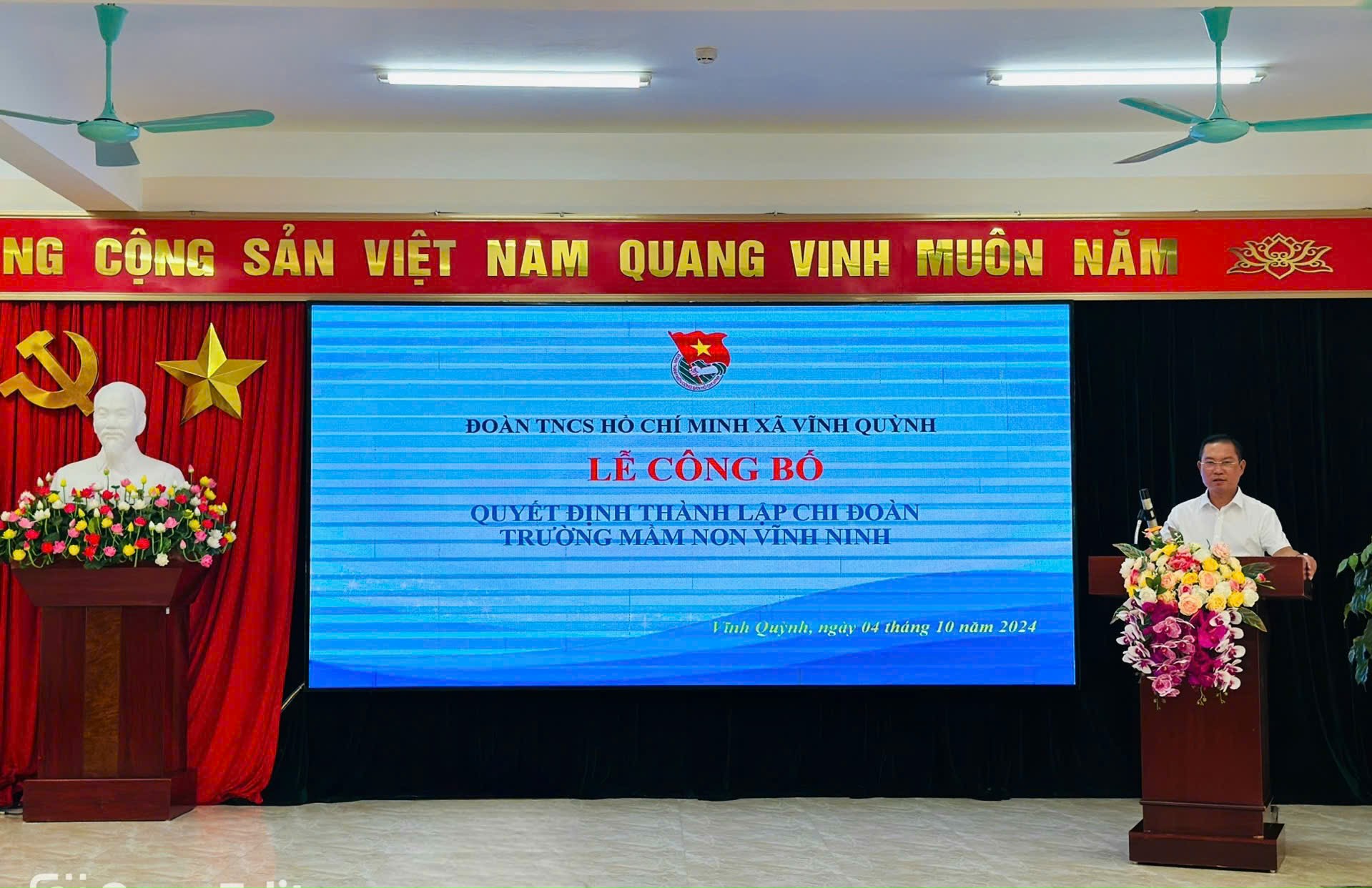 💐💐Hòa chung không khí chào mừng kỷ niệm 70 năm ngày Giải phóng huyện Thanh Trì (06/10/1954-06/10/2024), 70 năm ngày Giải phóng Thủ đô (10/10/1954- 10/10/2024), chiều ngày 04/10/2024, tập thể Đoàn viên Chi đoàn Trường mầm non Vĩnh Ninh vinh dự được đón các đồng chí lãnh đạo Đảng uỷ; Các đồng chí Thường trực Đoàn xã Vĩnh Quỳnh về trao Quyết định thành lập Chi đoàn cũng như Chỉ định Ban chấp hành chi đoàn nhà trường.