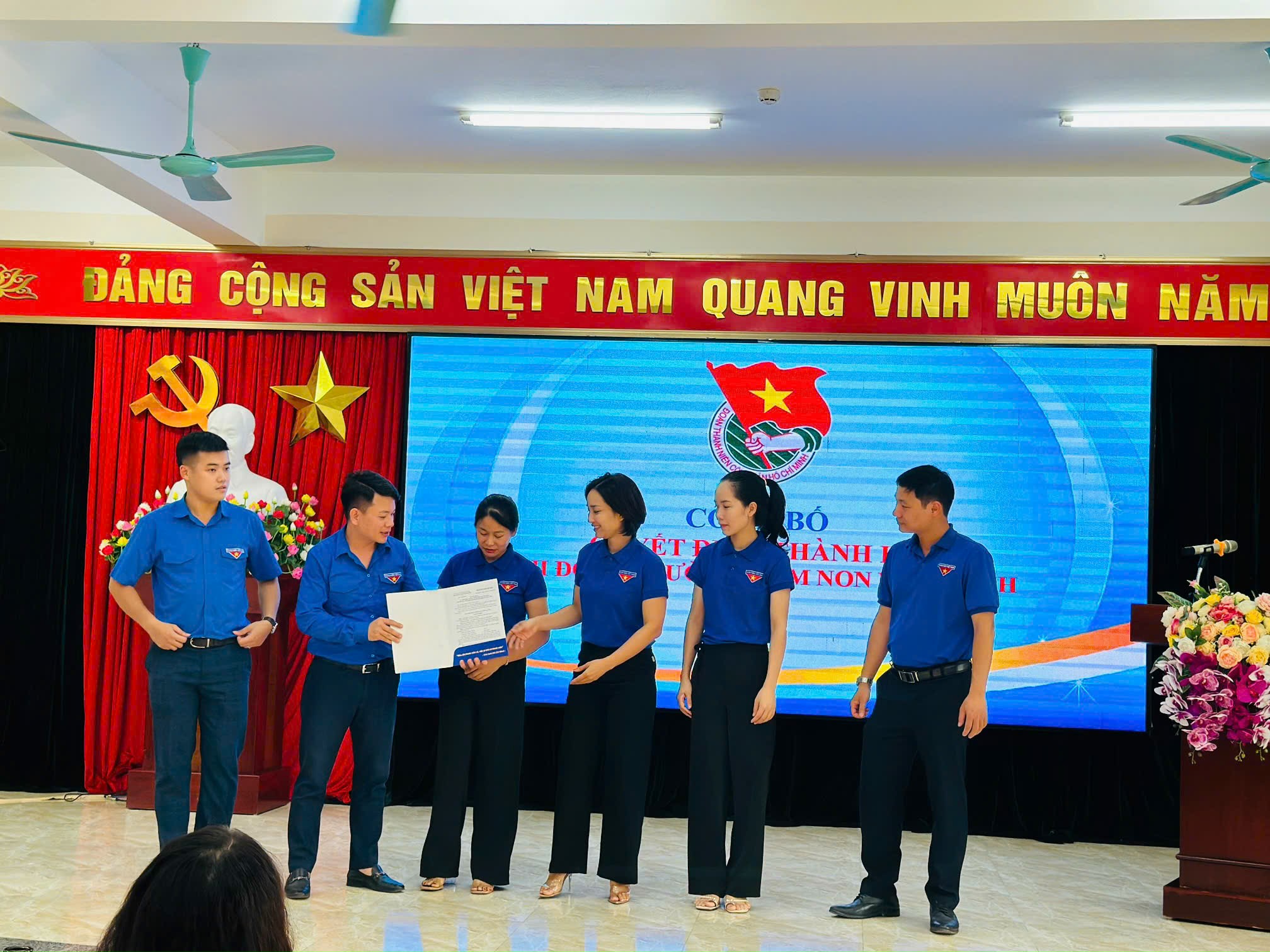🎊🎊Lễ công bố và trao Quyết định được diễn ra trong không khí trang trọng, ý nghĩa. Chúc mừng các đồng chí trong Ban chấp hành chi đoàn mới đuợc bổ nhiệm. Chúc các đồng chí tiếp tục phát huy bản lĩnh chính trị, ưu điểm, thành tích đã đạt được, không ngừng rèn luyện, trau dồi phẩm chất đạo đức, chuyên môn, nghiệp vụ; tích cực xây dựng khối đoàn kết, thống nhất, cùng tập thể trường mầm non Vĩnh Ninh hoàn thành xuất sắc nhiệm vụ được giao.🌻