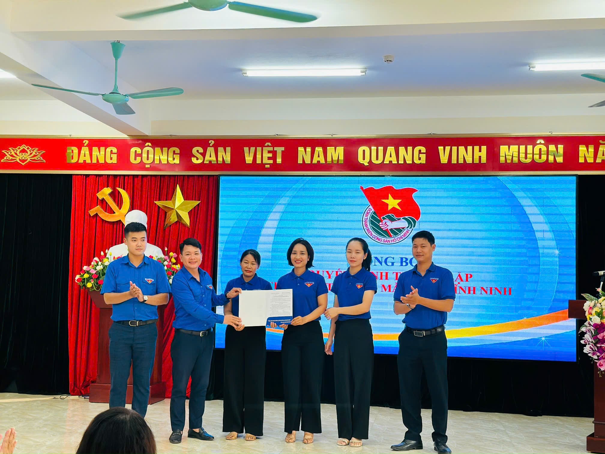 🎉Tại buổi lễ, các đồng chí Thường trực Đoàn xã đã Trao Quyết định thành lập chi đoàn trường mầm non Vĩnh Ninh gồm 23 đoàn viên và Chỉ định Ban chấp hành Chi đoàn trường mầm non Vĩnh Ninh gồm 03 đồng chí.