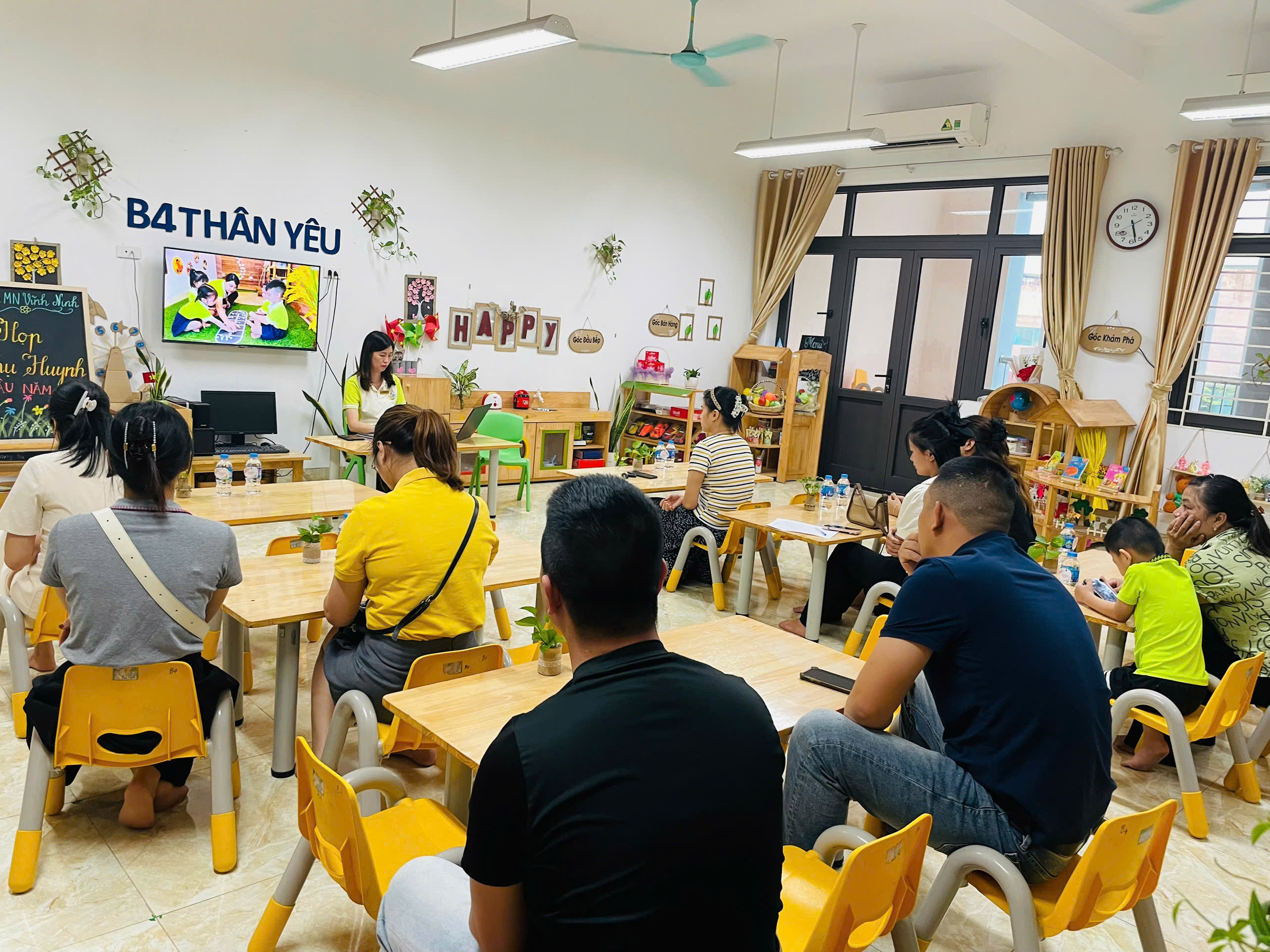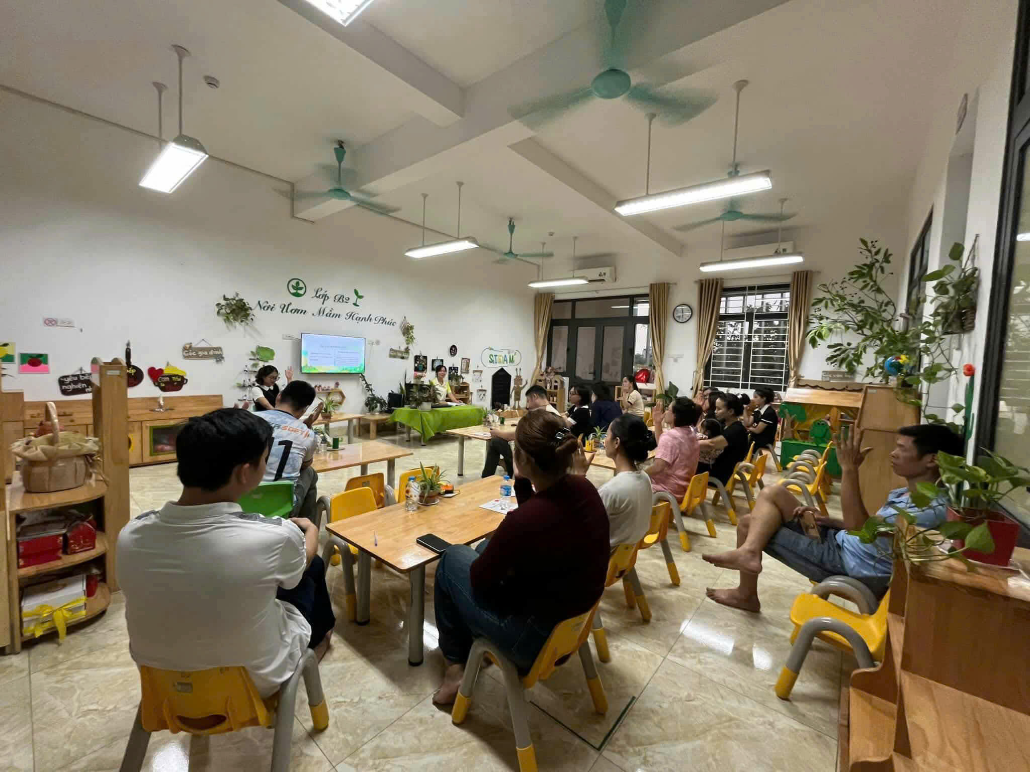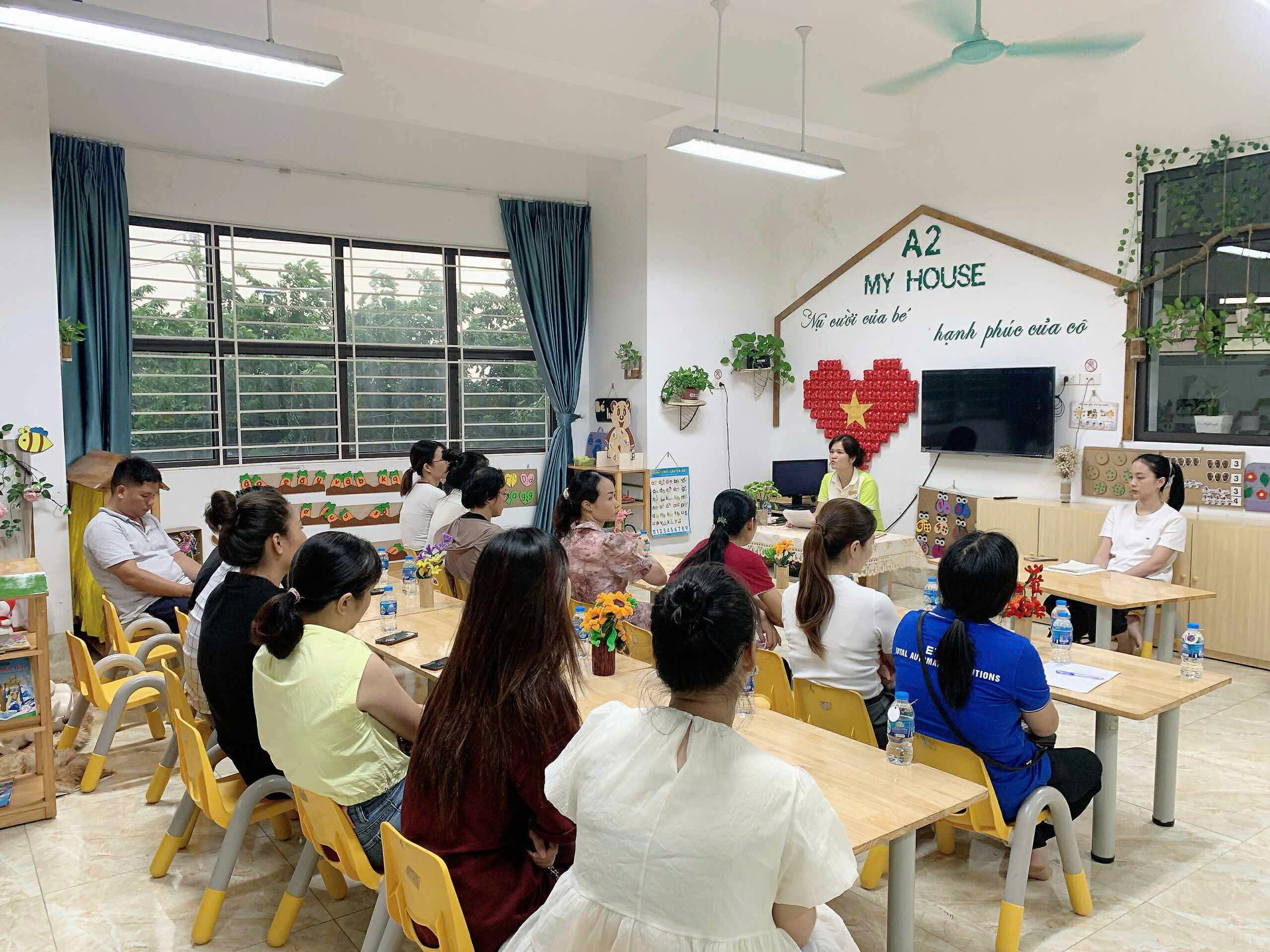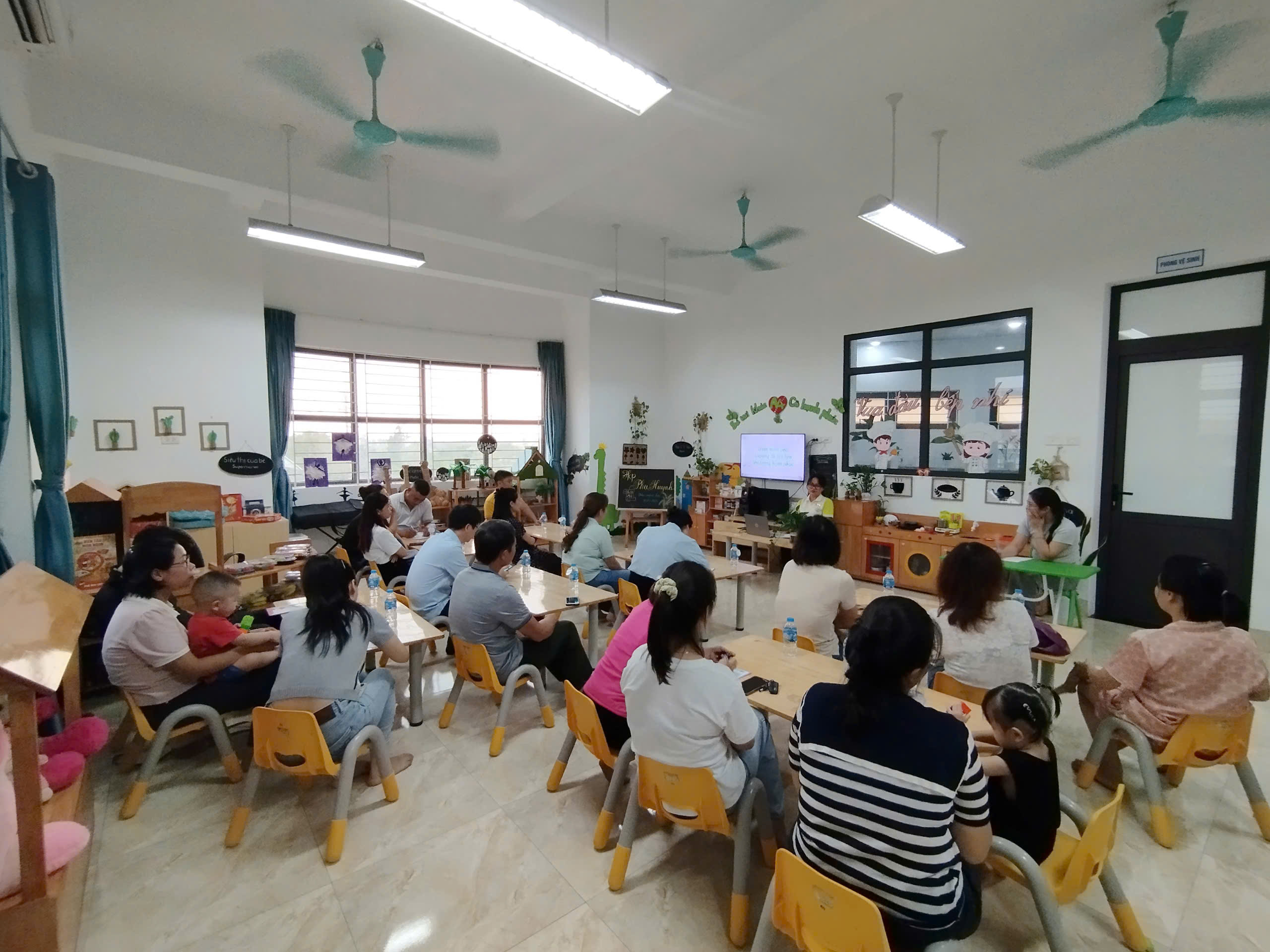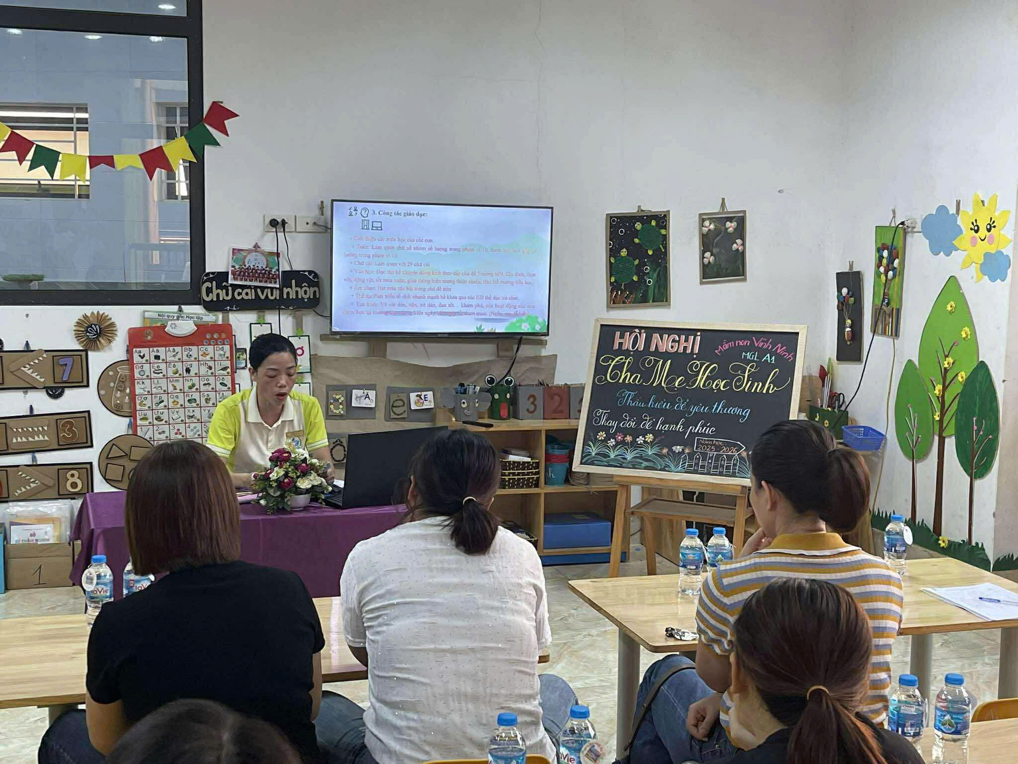 Ở từng lớp, các cô giáo đã chia sẻ cụ thể về kế hoạch chăm sóc, giáo dục, phương pháp tổ chức hoạt động và mục tiêu phát triển dành cho các bé trong năm học này. Đây cũng là khoảng thời gian để phụ huynh trao đổi trực tiếp, bày tỏ tâm tư, mong muốn và cùng thống nhất phương hướng phối hợp với nhà trường.