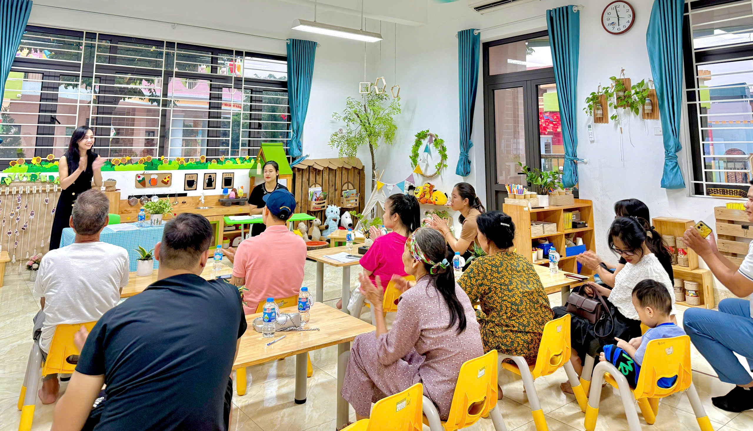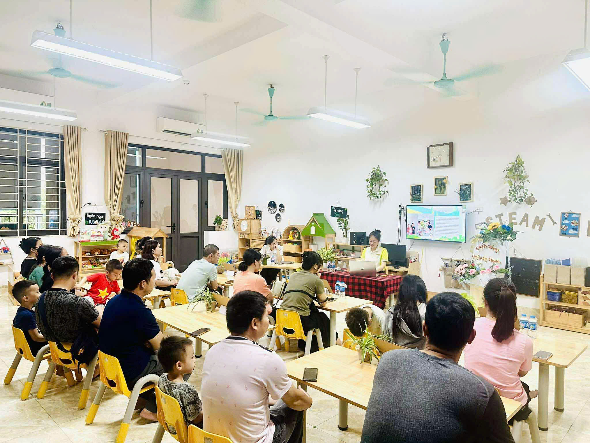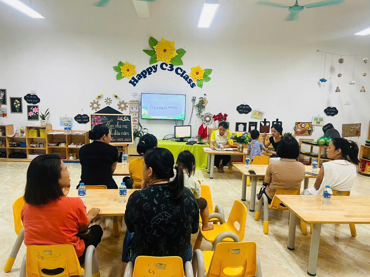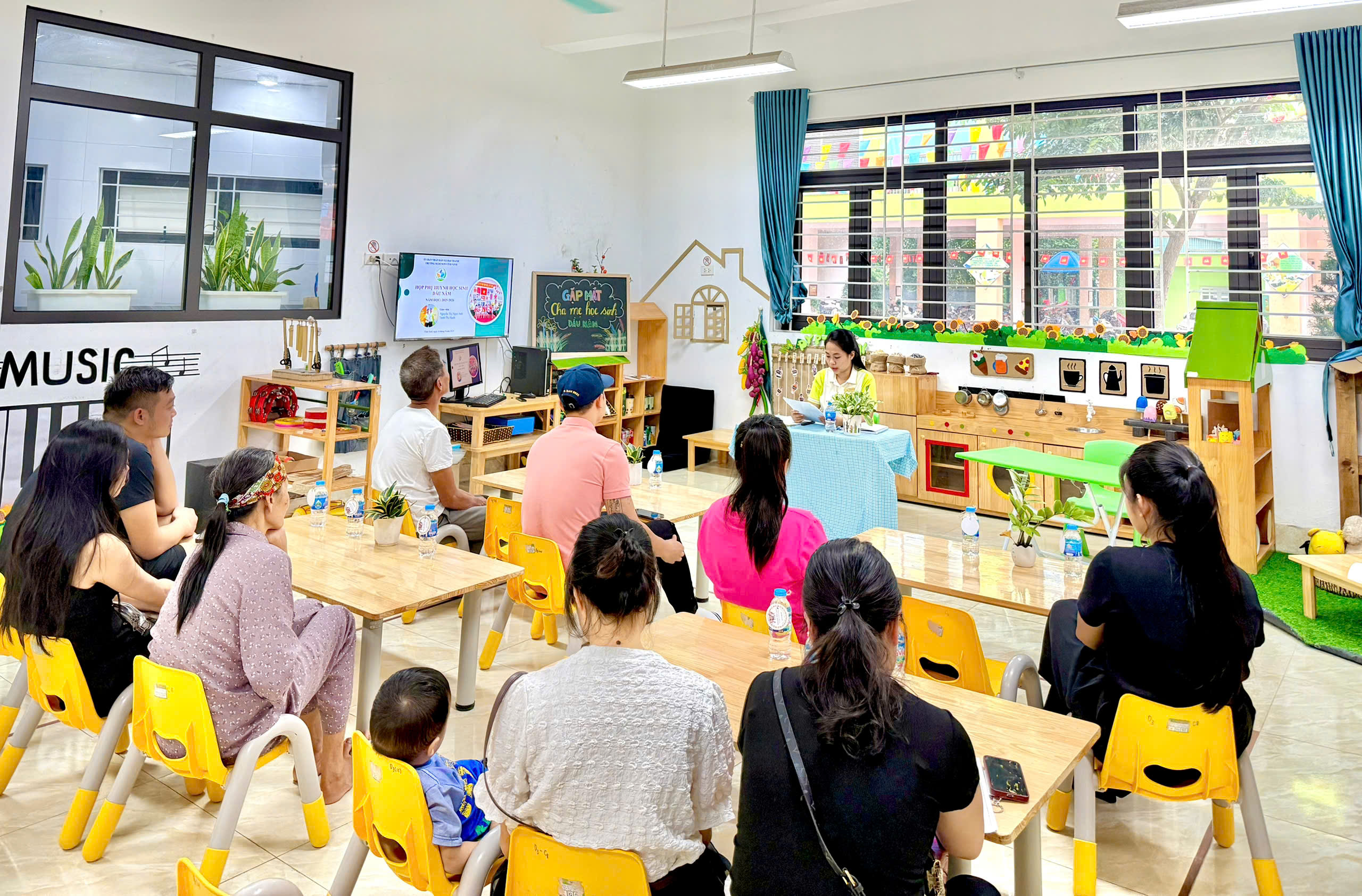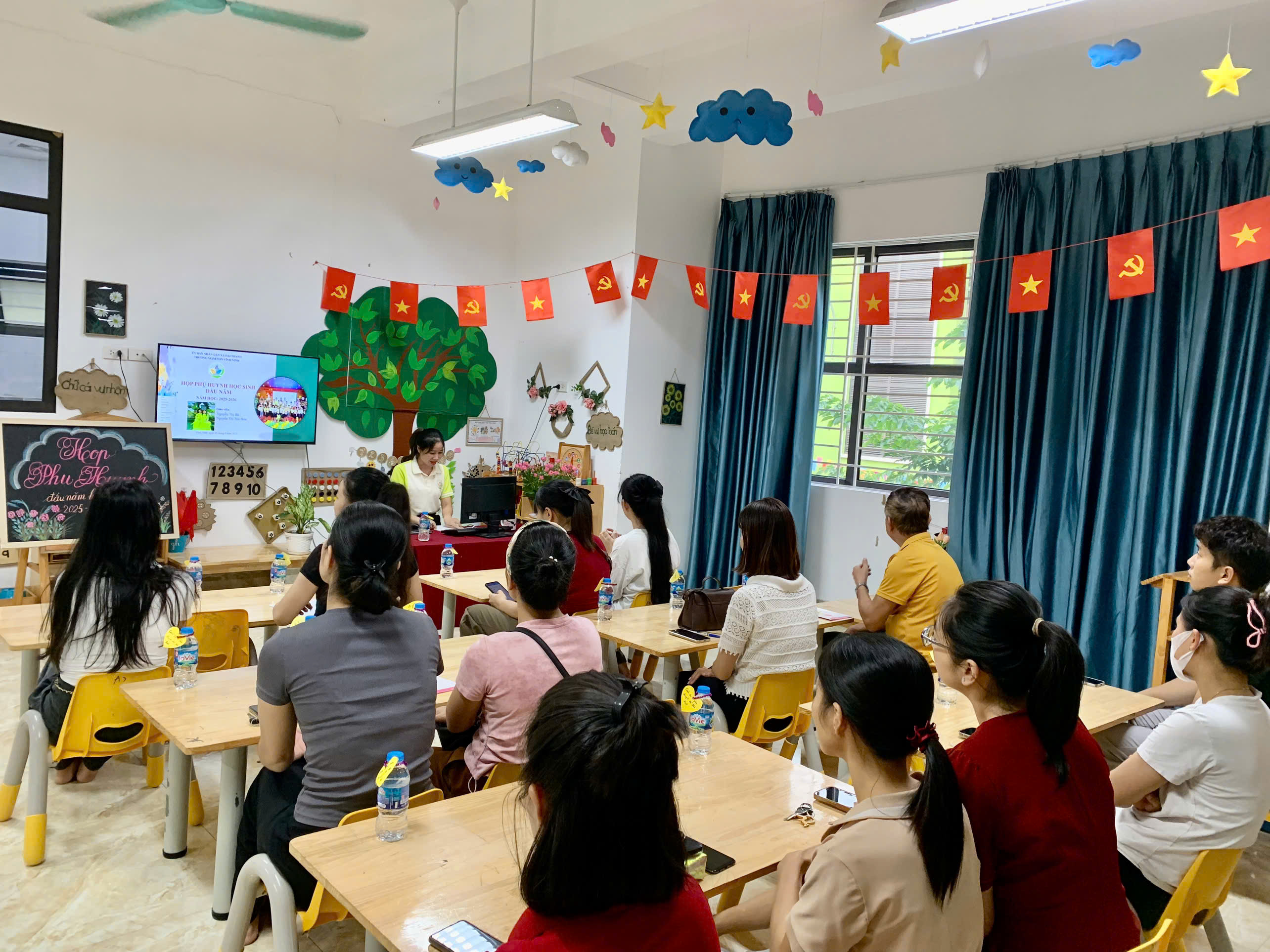 Ở từng lớp, các cô giáo đã chia sẻ cụ thể về kế hoạch chăm sóc, giáo dục, phương pháp tổ chức hoạt động và mục tiêu phát triển dành cho các bé trong năm học này. Đây cũng là khoảng thời gian để phụ huynh trao đổi trực tiếp, bày tỏ tâm tư, mong muốn và cùng thống nhất phương hướng phối hợp với nhà trường.