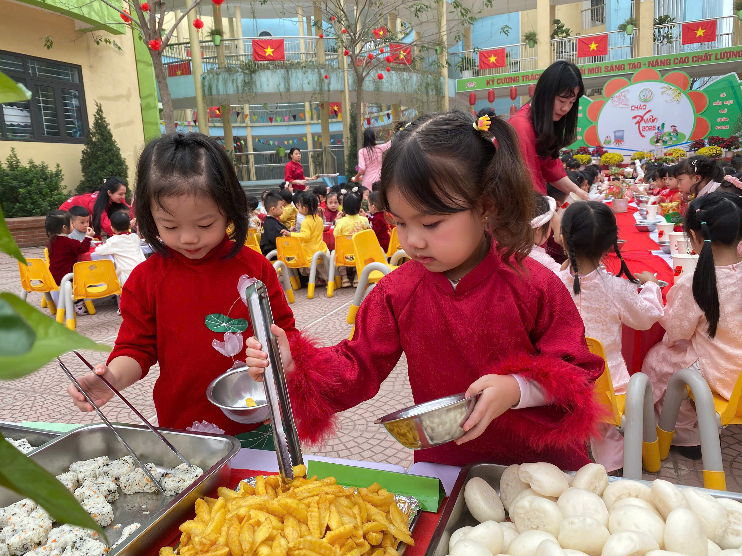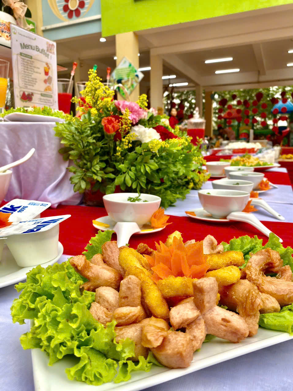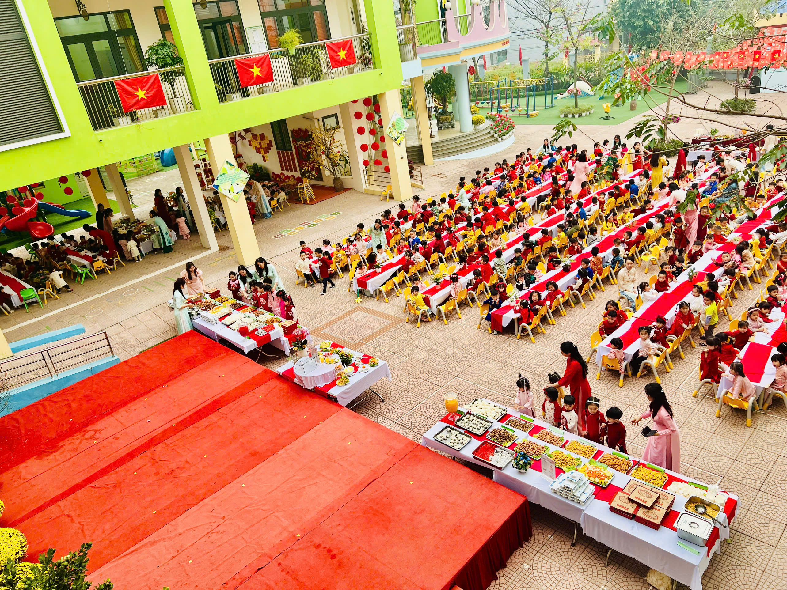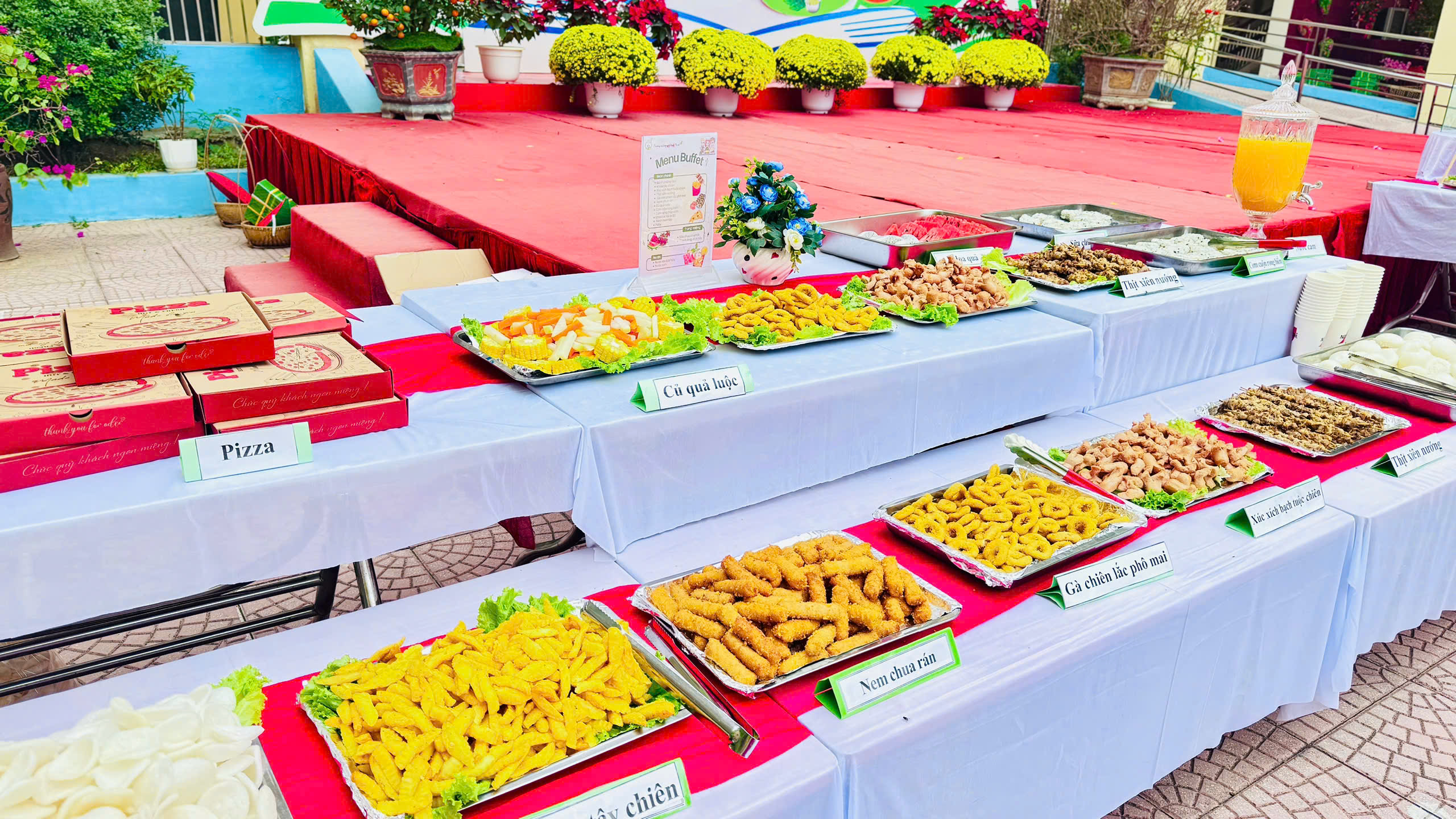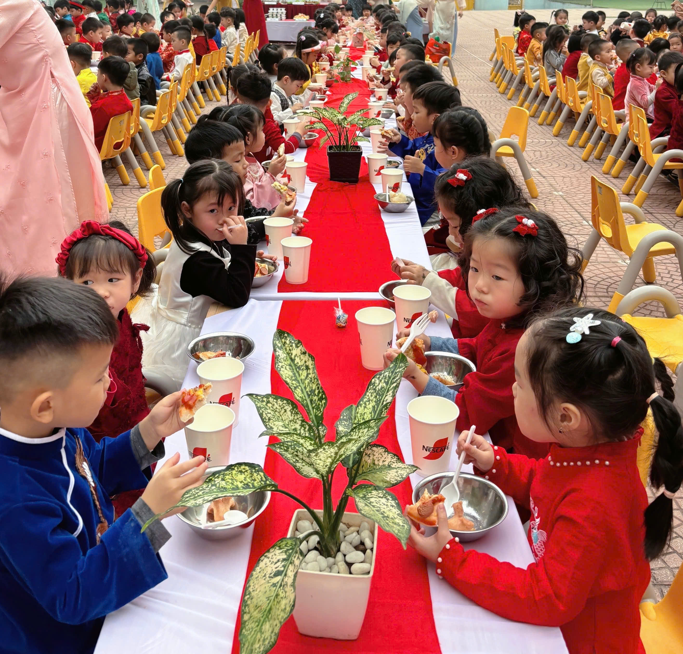 Đại Tiệc Buffet "Vạn Người Mê": Để nạp lại năng lượng sau những giờ "quẩy" nhiệt tình, các bé đã được chiêu đãi một bữa tiệc Buffet đoàn viên siêu thịnh soạn. Nhìn các "thực thần nhí" thưởng thức món ngon một cách ngon lành, các cô giáo và bố mẹ cũng thấy ấm lòng lây!