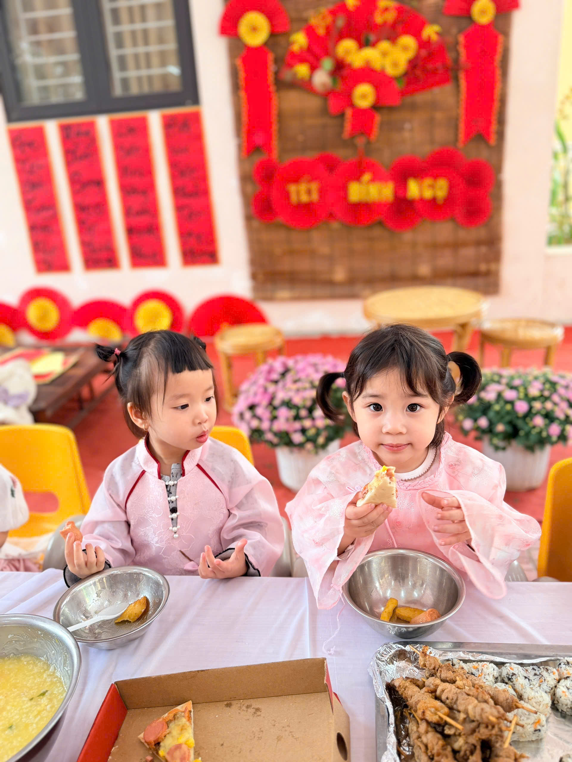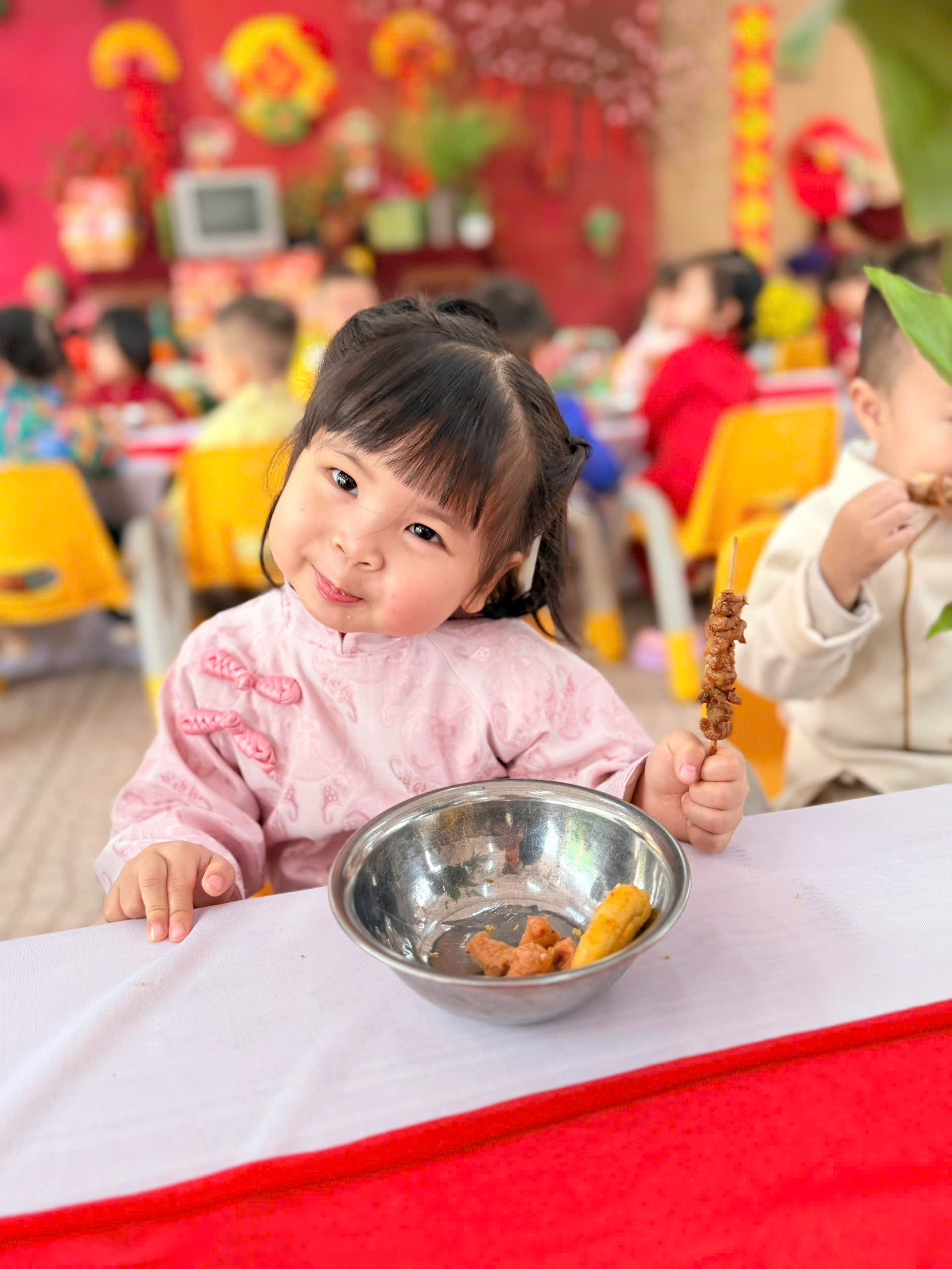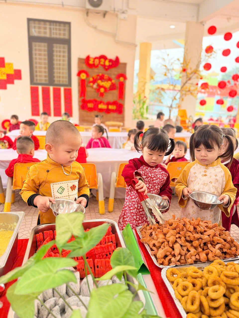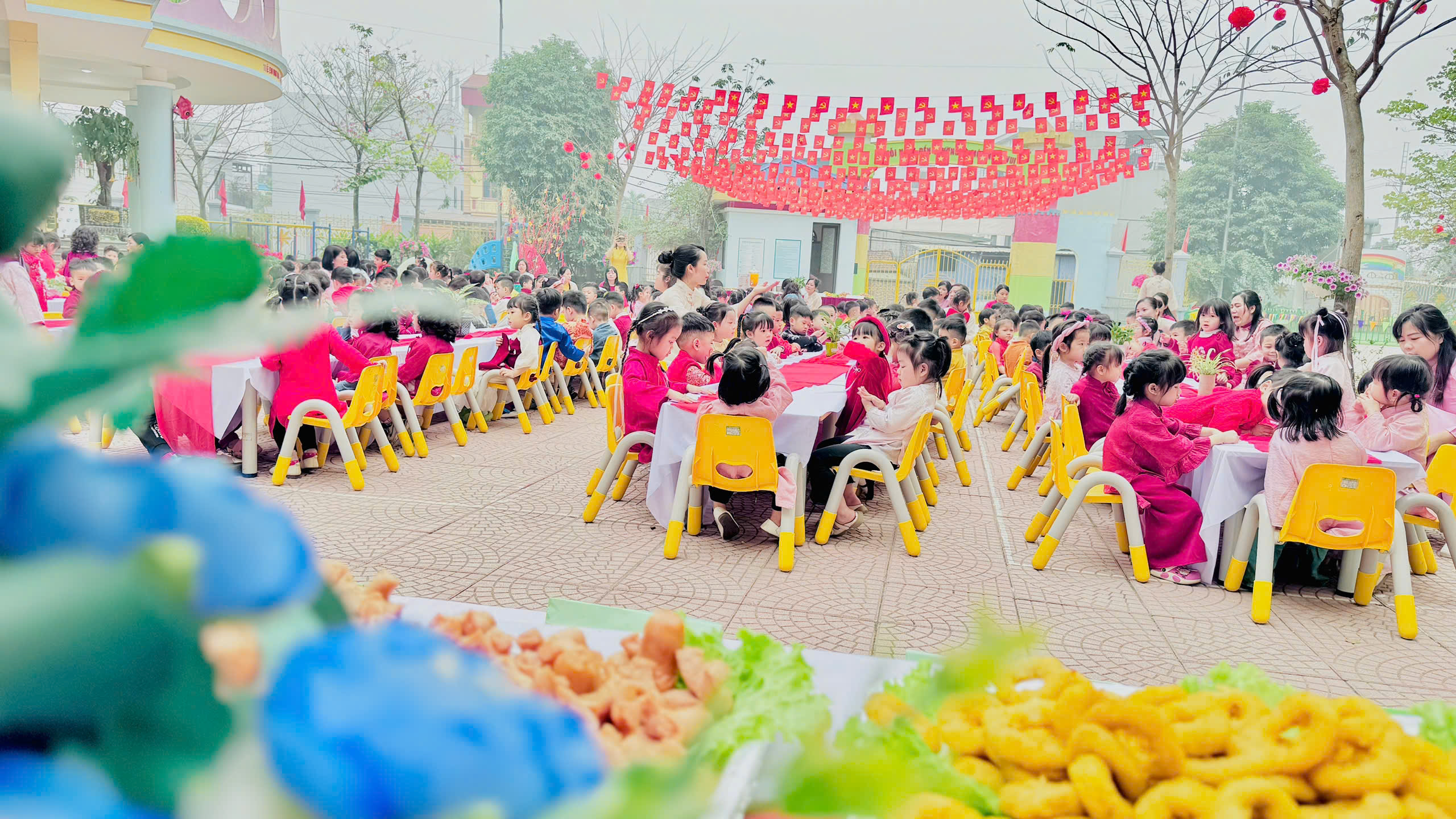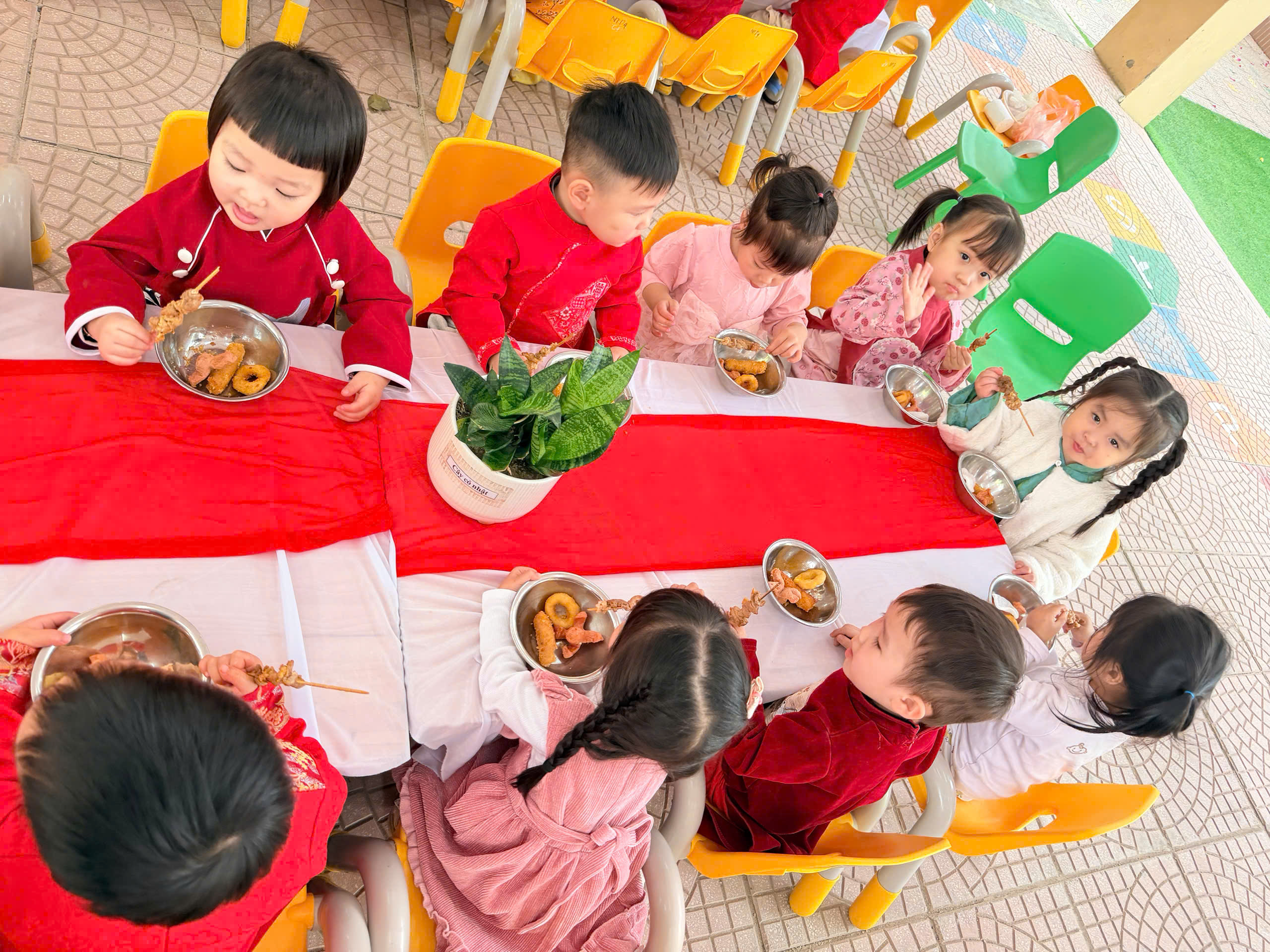 Đại Tiệc Buffet "Vạn Người Mê": Để nạp lại năng lượng sau những giờ "quẩy" nhiệt tình, các bé đã được chiêu đãi một bữa tiệc Buffet đoàn viên siêu thịnh soạn. Nhìn các "thực thần nhí" thưởng thức món ngon một cách ngon lành, các cô giáo và bố mẹ cũng thấy ấm lòng lây!