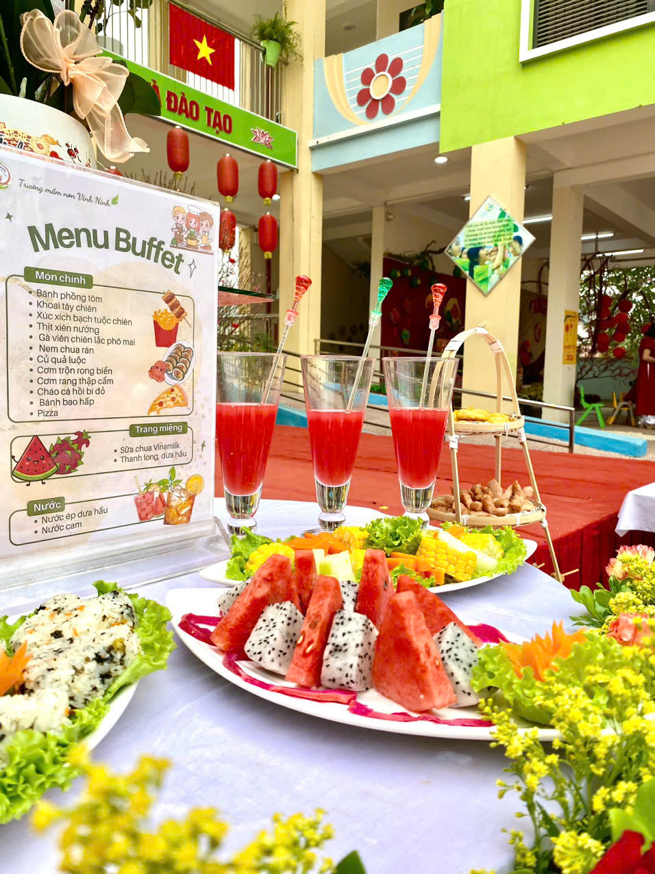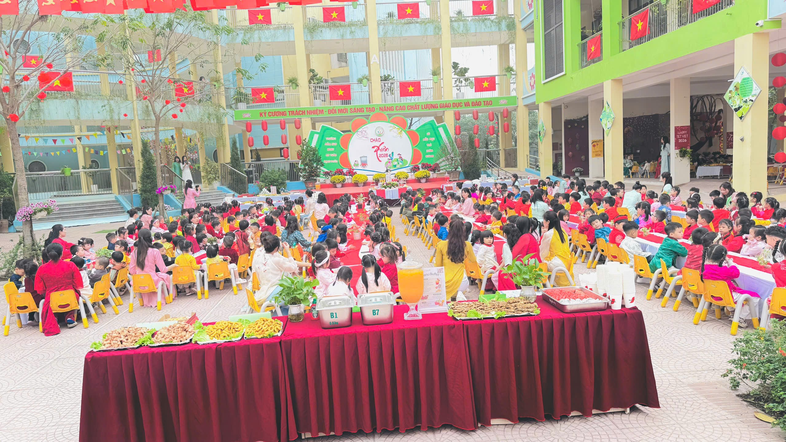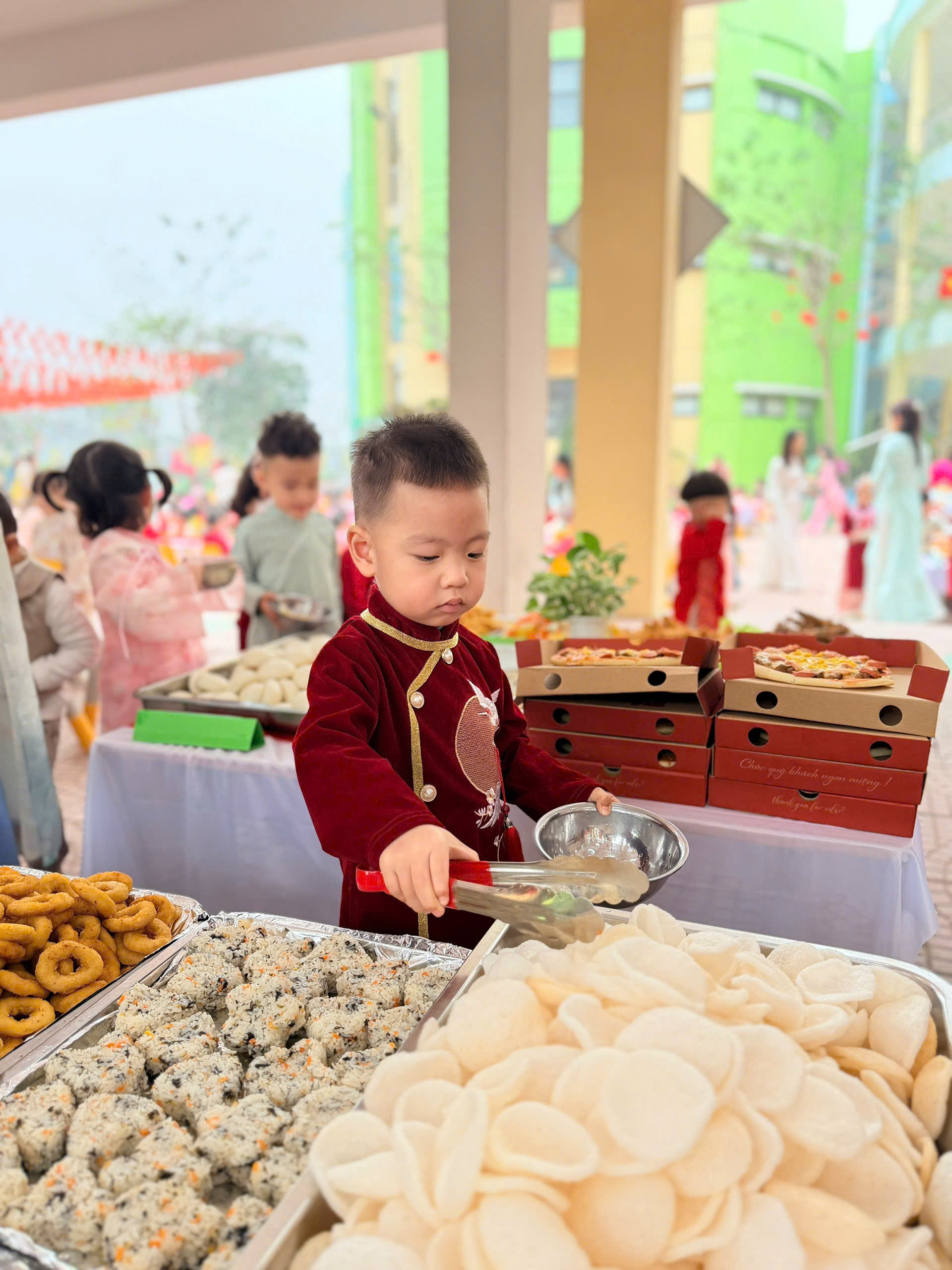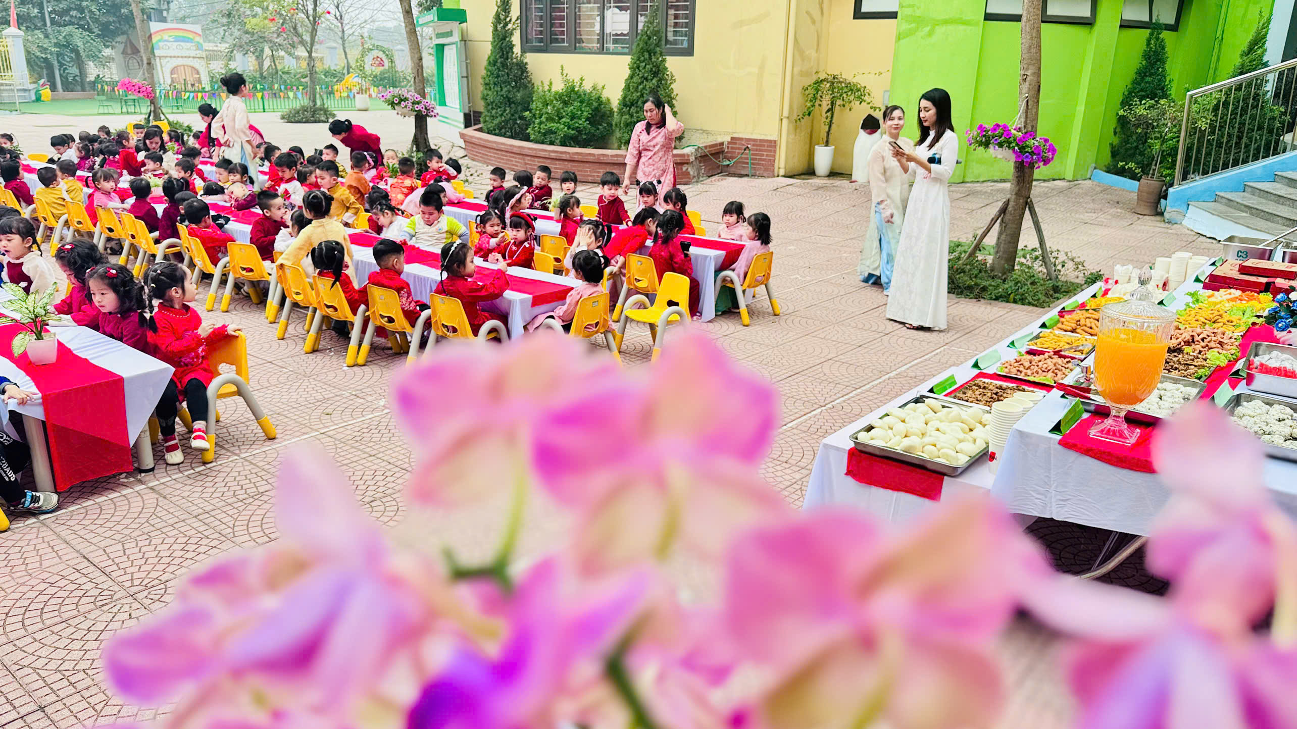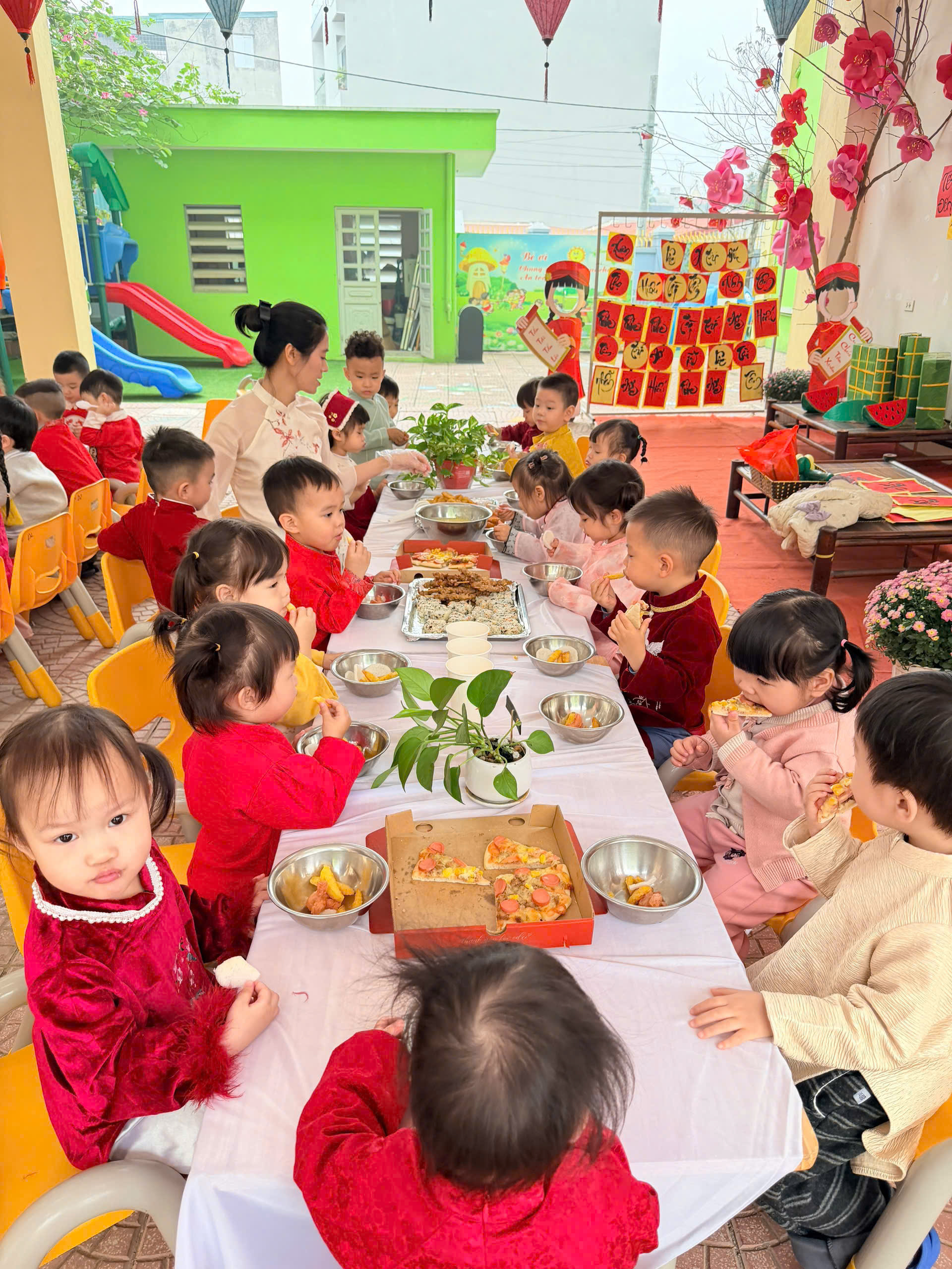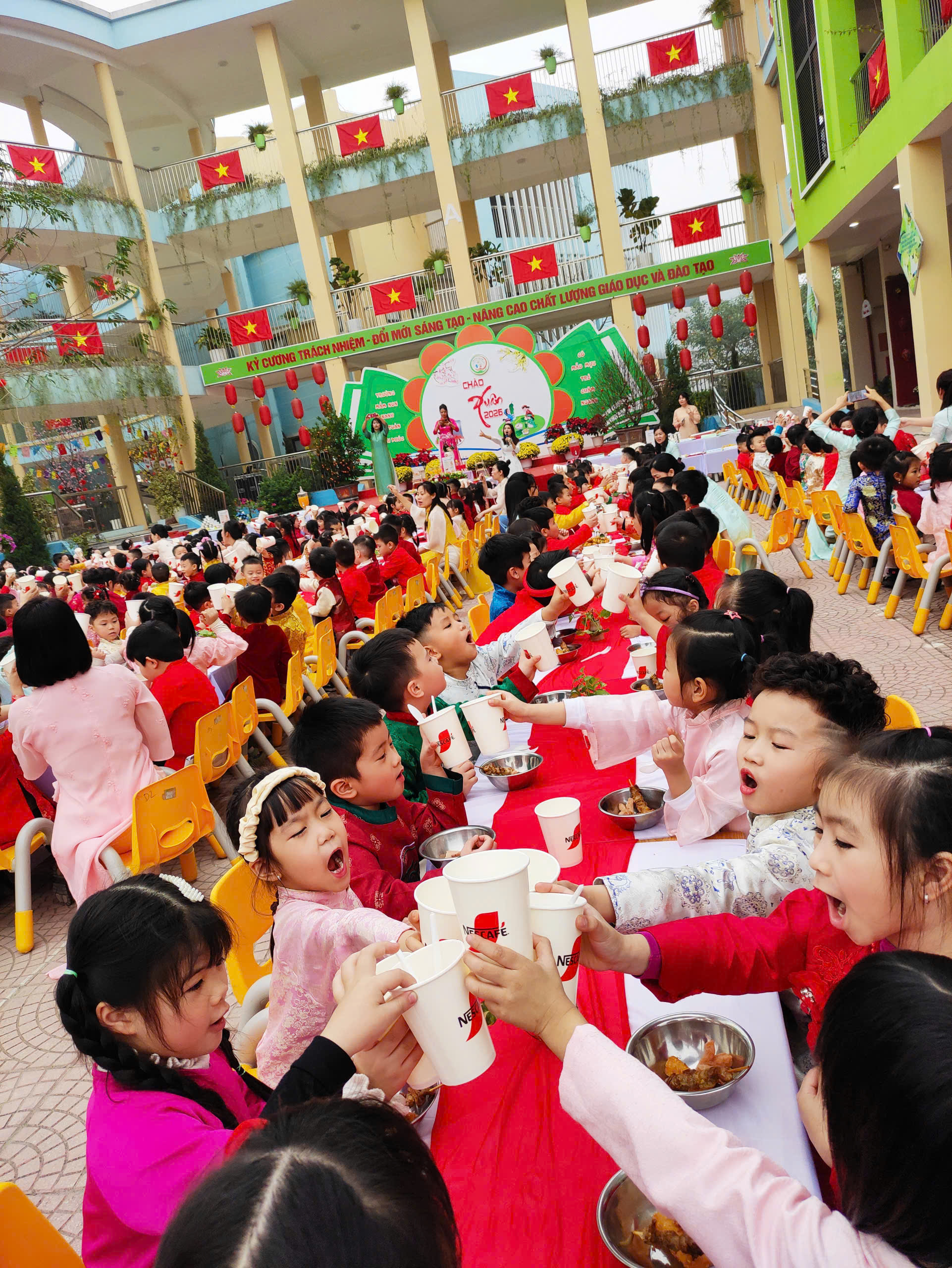 Đại Tiệc Buffet "Vạn Người Mê": Để nạp lại năng lượng sau những giờ "quẩy" nhiệt tình, các bé đã được chiêu đãi một bữa tiệc Buffet đoàn viên siêu thịnh soạn. Nhìn các "thực thần nhí" thưởng thức món ngon một cách ngon lành, các cô giáo và bố mẹ cũng thấy ấm lòng lây!