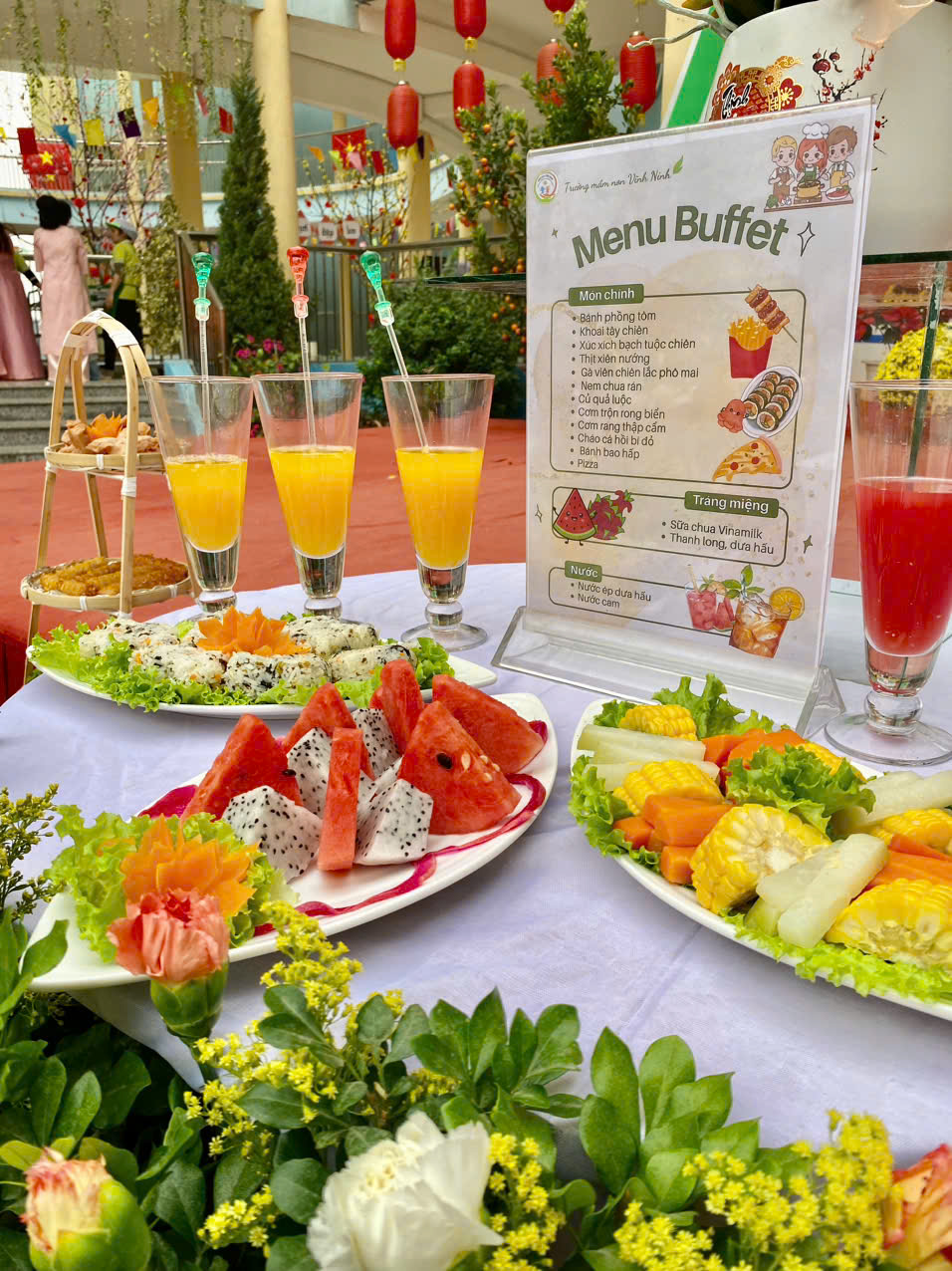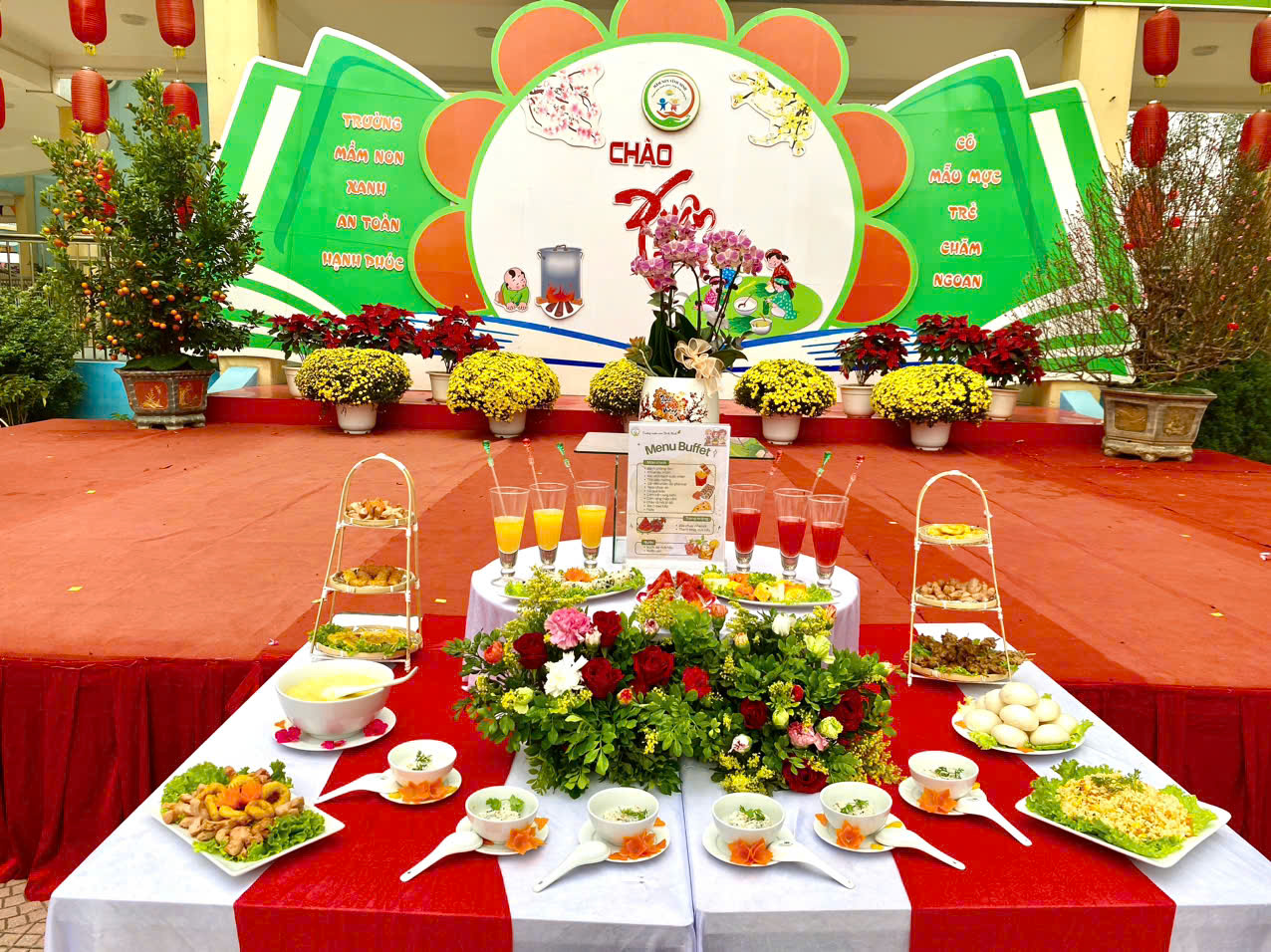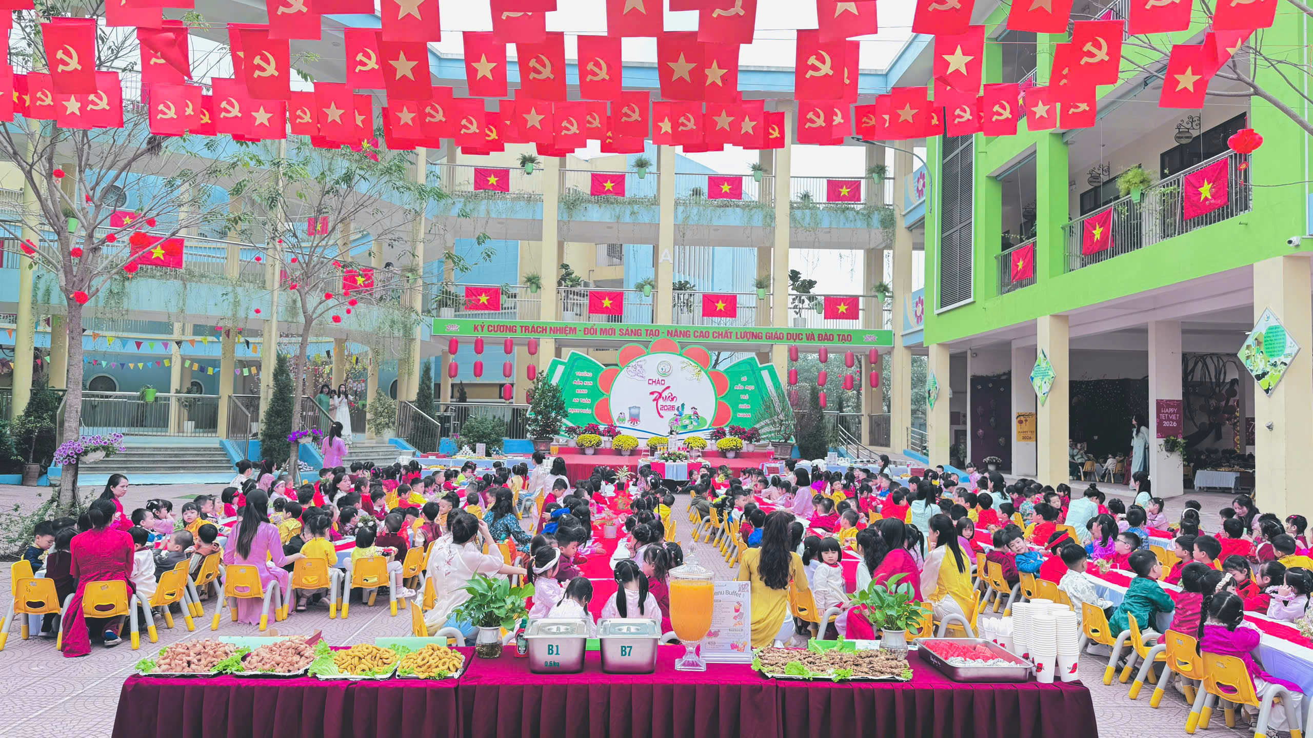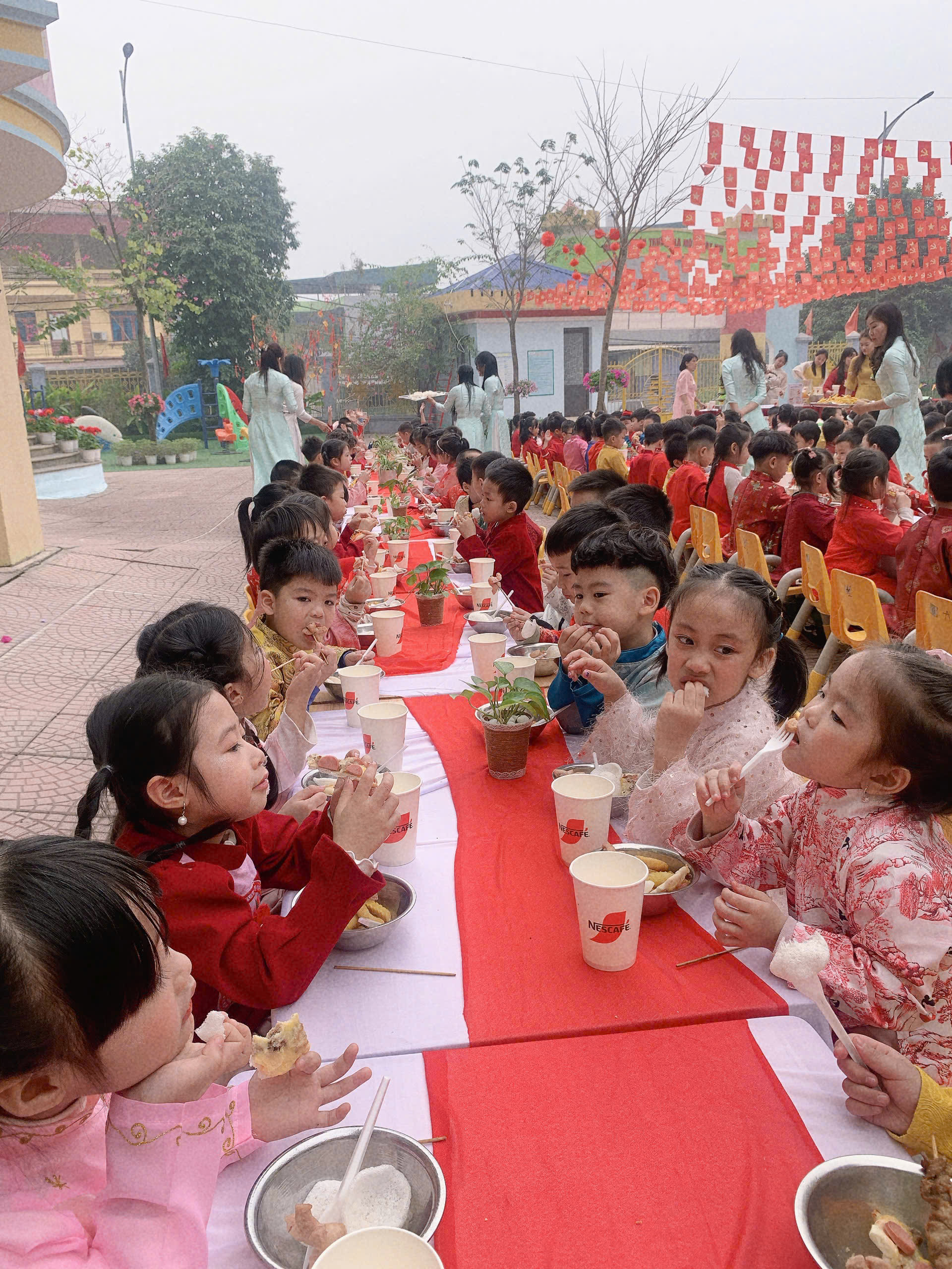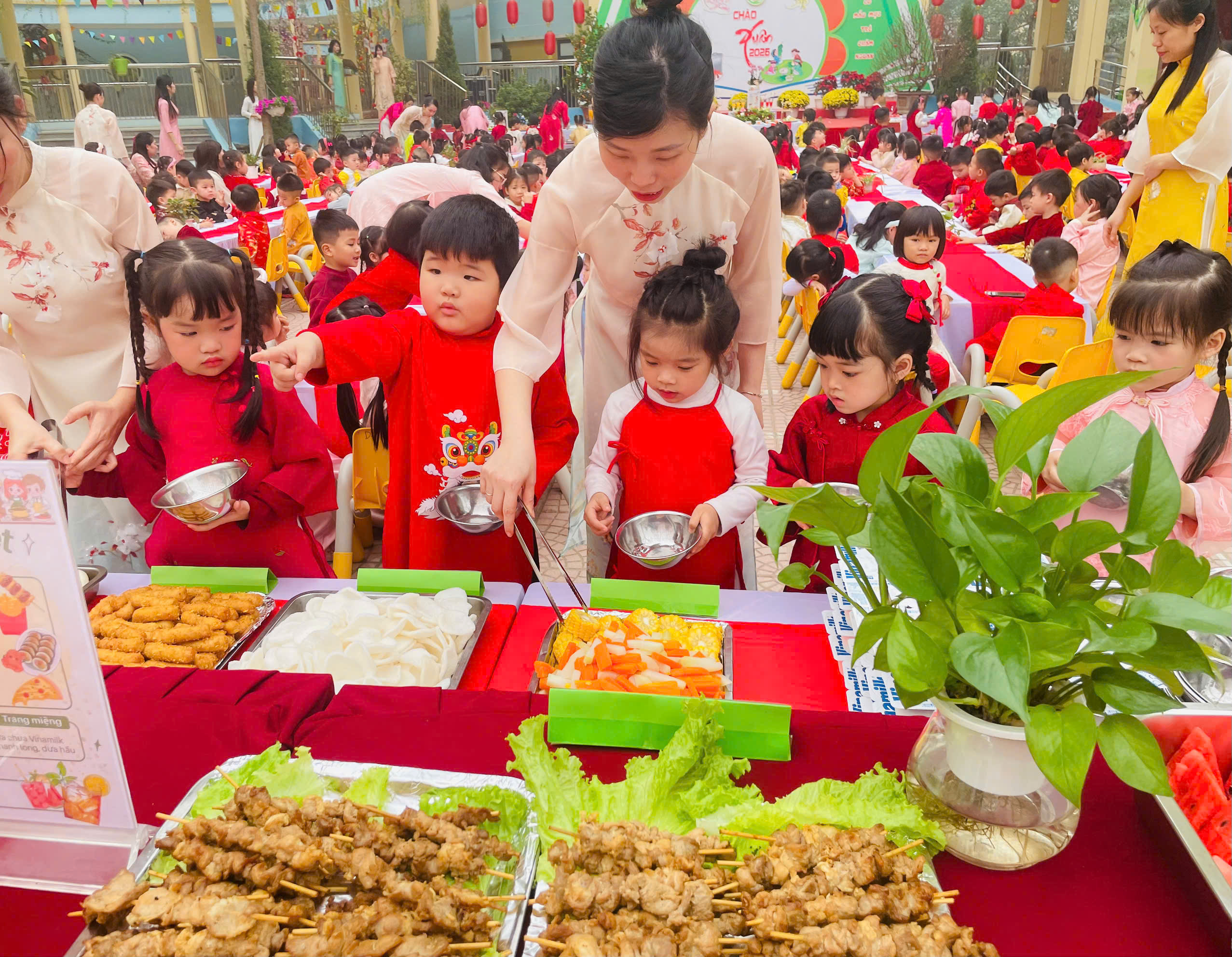 Đại Tiệc Buffet "Vạn Người Mê": Để nạp lại năng lượng sau những giờ "quẩy" nhiệt tình, các bé đã được chiêu đãi một bữa tiệc Buffet đoàn viên siêu thịnh soạn. Nhìn các "thực thần nhí" thưởng thức món ngon một cách ngon lành, các cô giáo và bố mẹ cũng thấy ấm lòng lây!