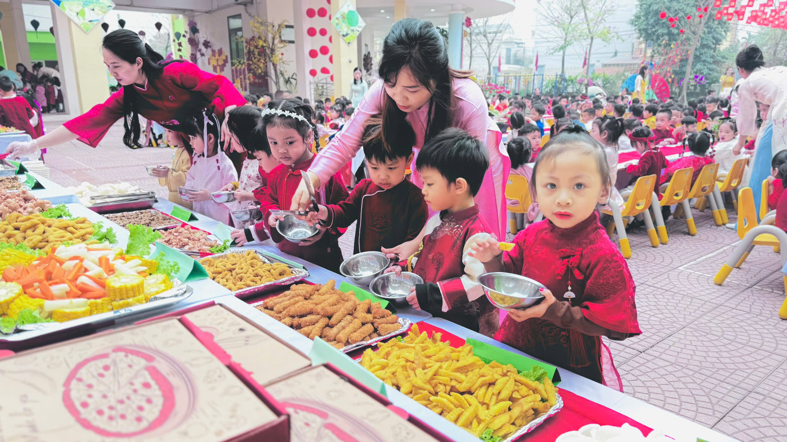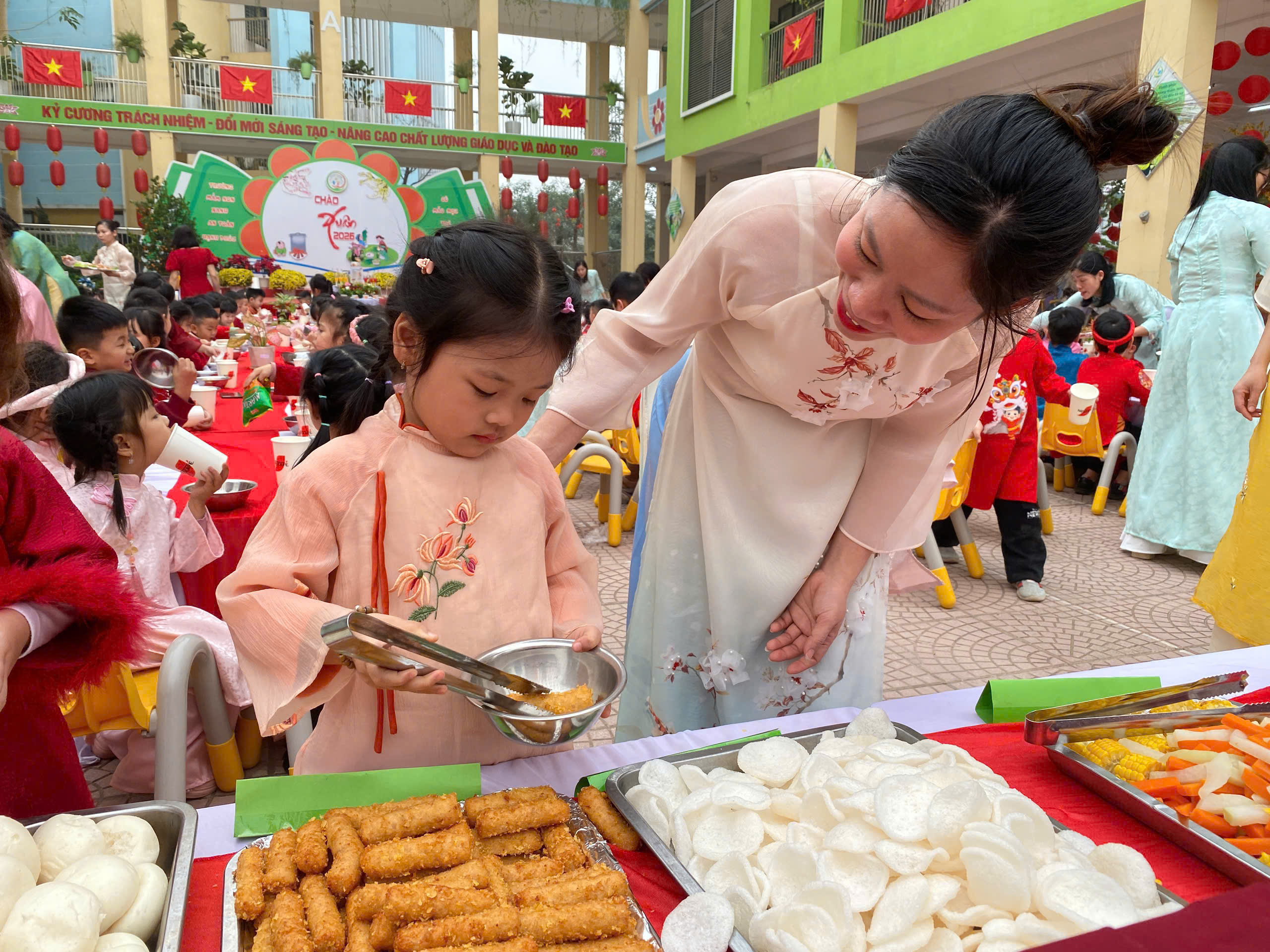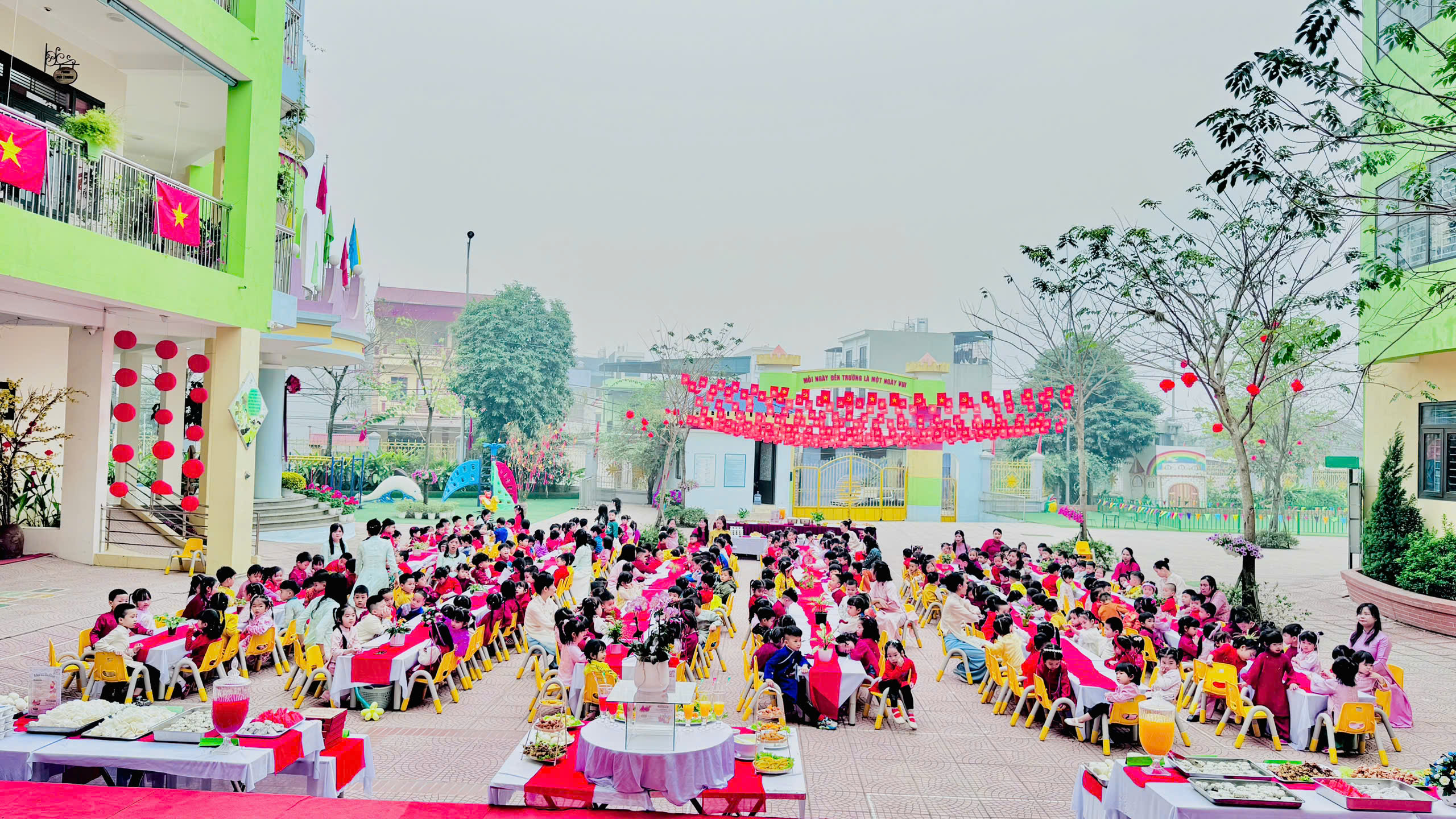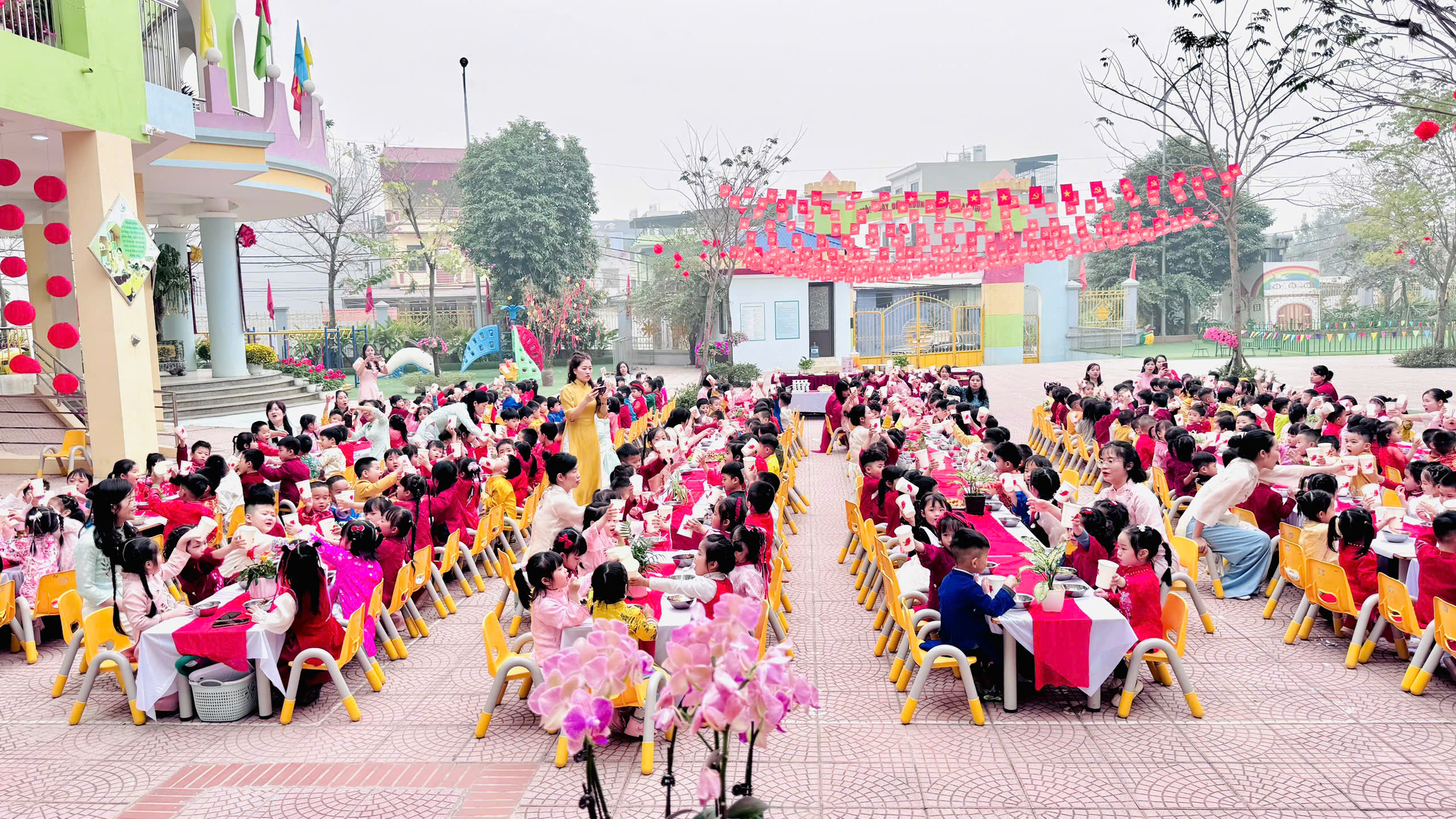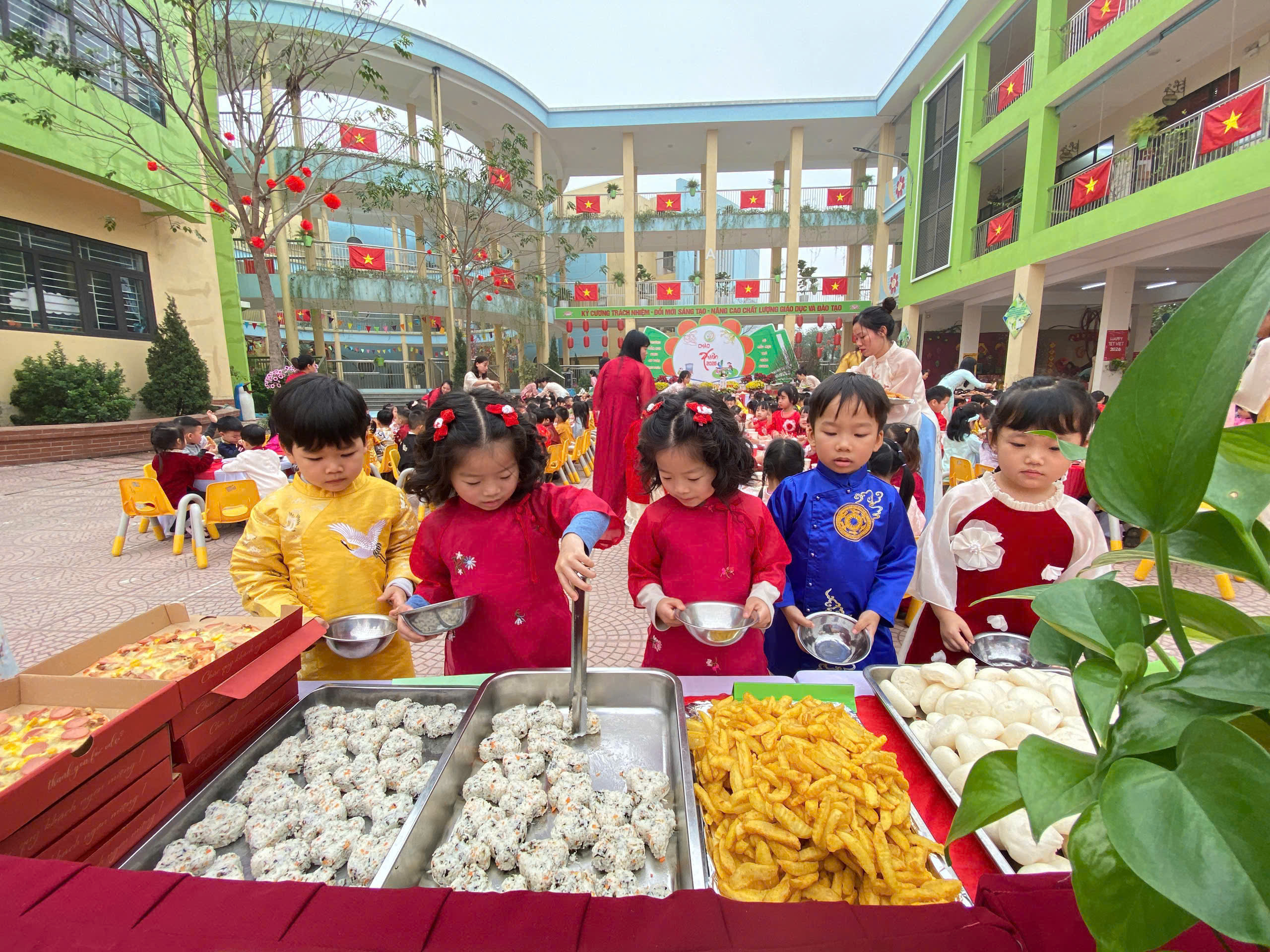 Đại Tiệc Buffet "Vạn Người Mê": Để nạp lại năng lượng sau những giờ "quẩy" nhiệt tình, các bé đã được chiêu đãi một bữa tiệc Buffet đoàn viên siêu thịnh soạn. Nhìn các "thực thần nhí" thưởng thức món ngon một cách ngon lành, các cô giáo và bố mẹ cũng thấy ấm lòng lây!
