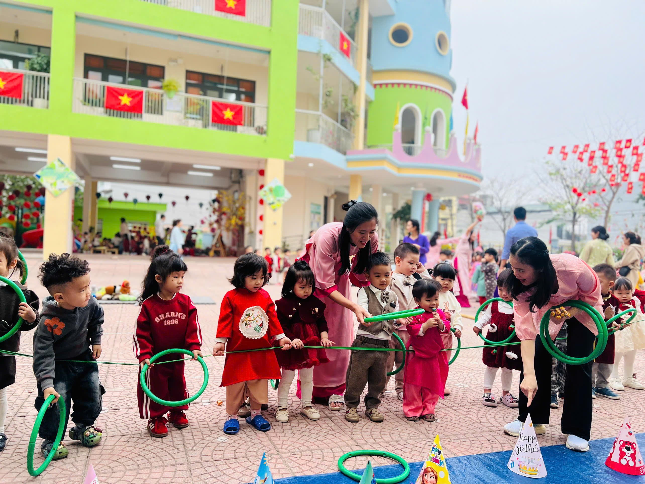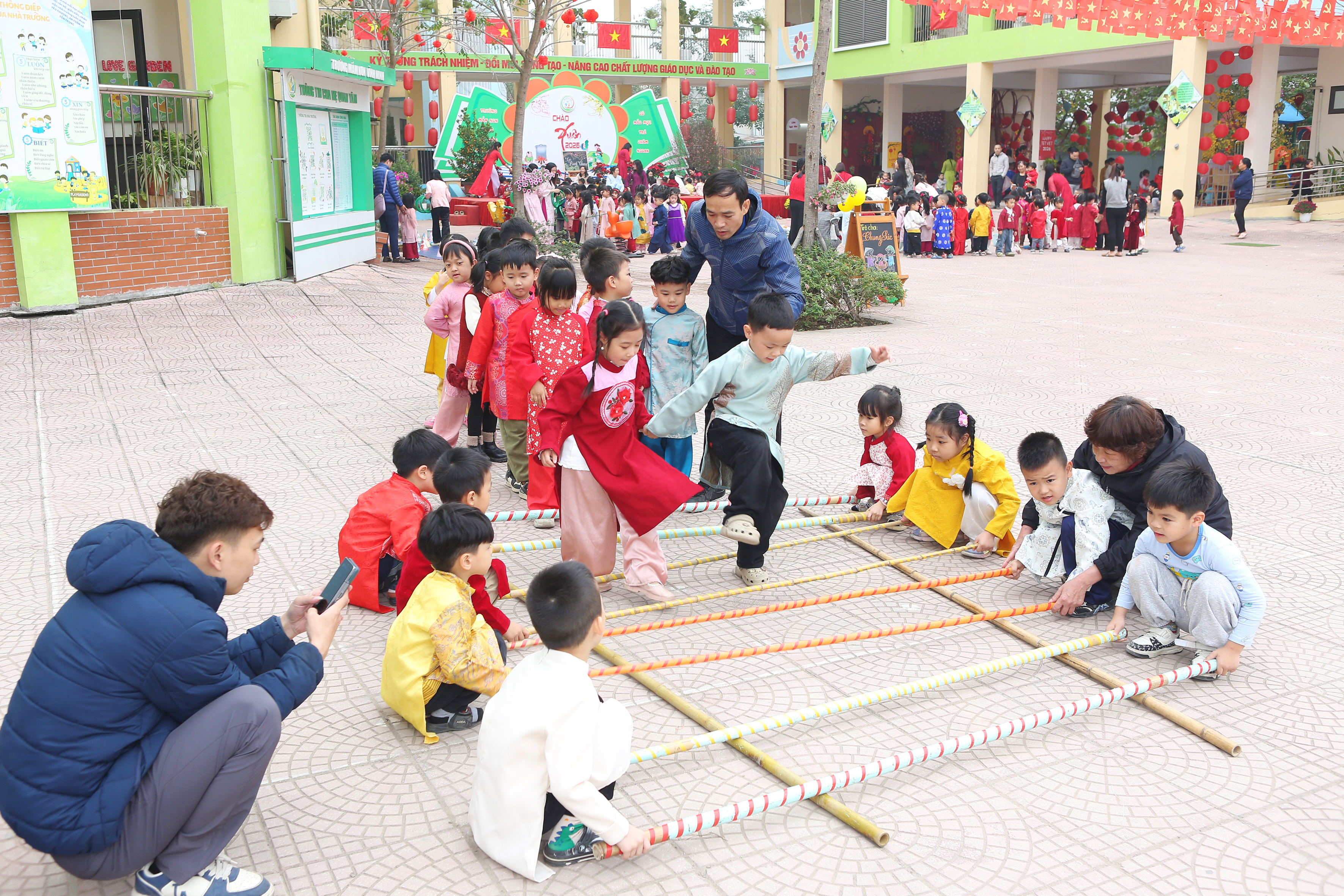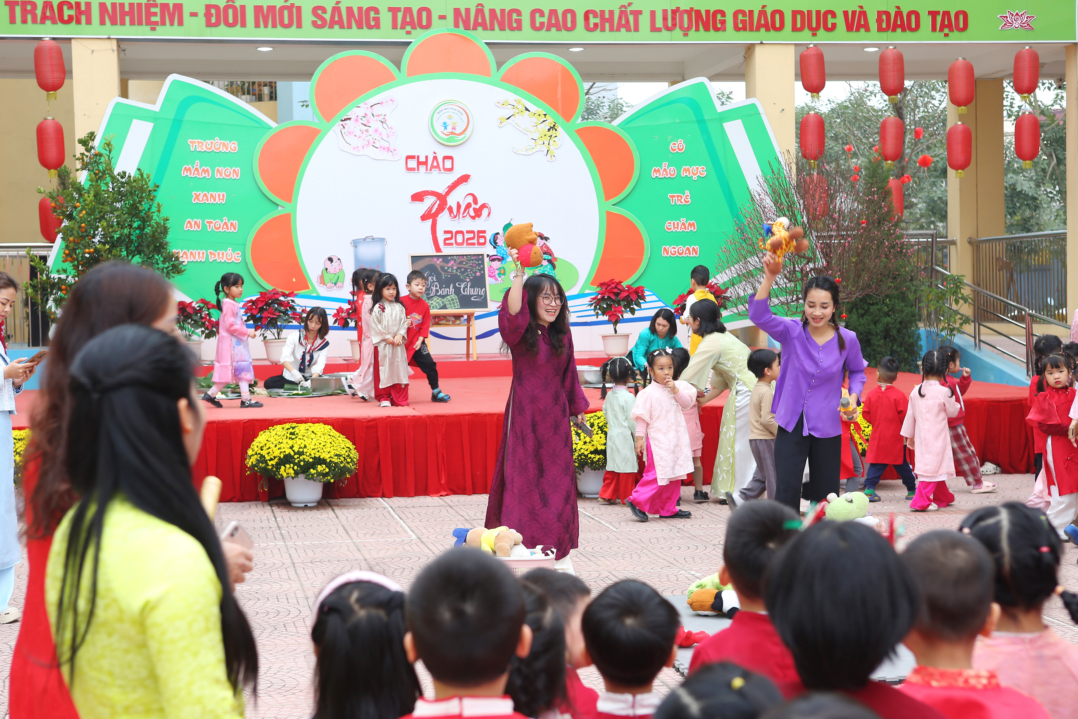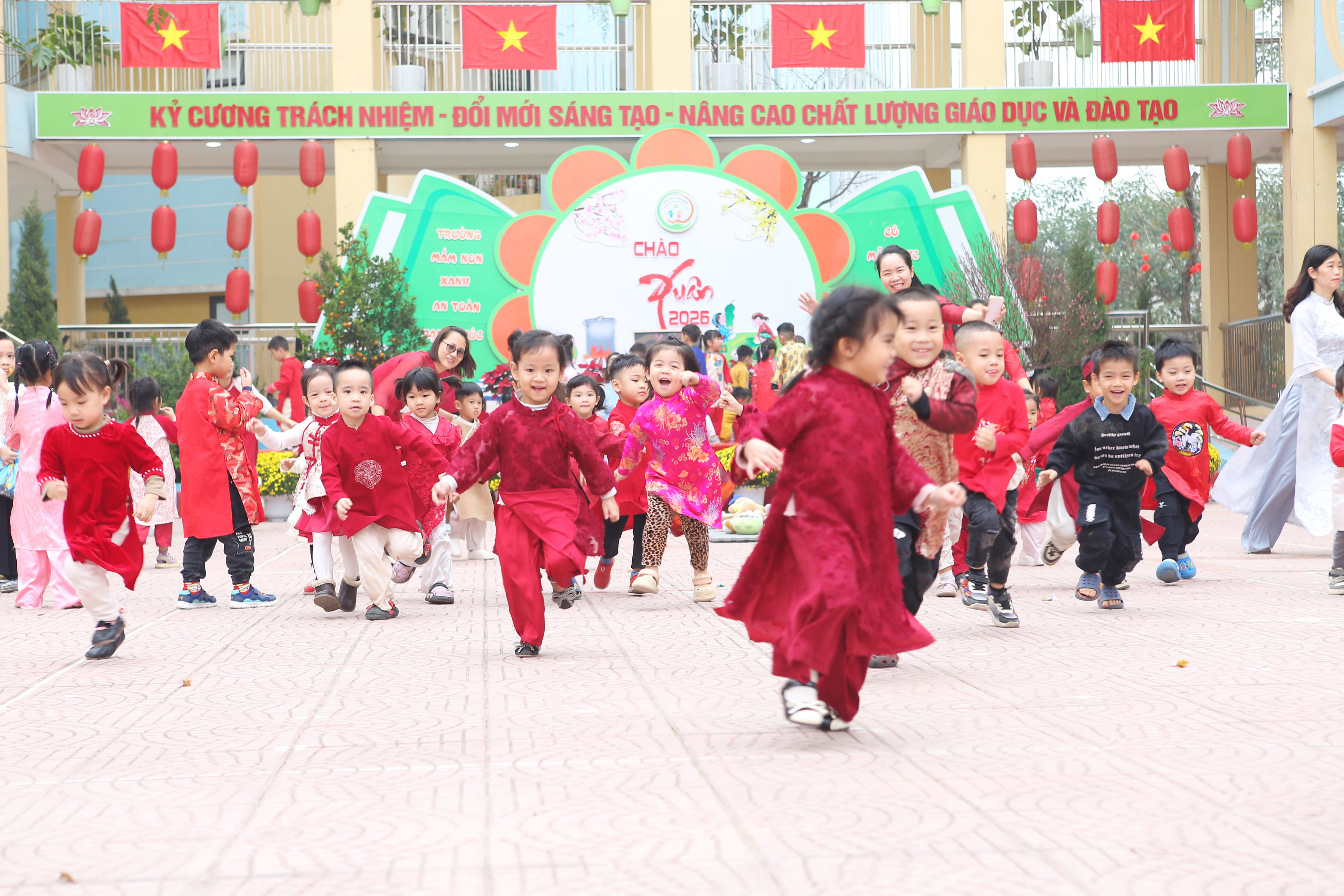 Sáng nay (05/02), ngày đầu tiên của chuỗi sự kiện "Chào Xuân 2026" tại Mầm non Vĩnh Ninh không chỉ có tiếng cười mà còn có cả mồ hôi (vì chơi nhiều quá đấy ạ!). Hãy cùng điểm lại những khoảnh khắc tuyệt vời sáng nay: