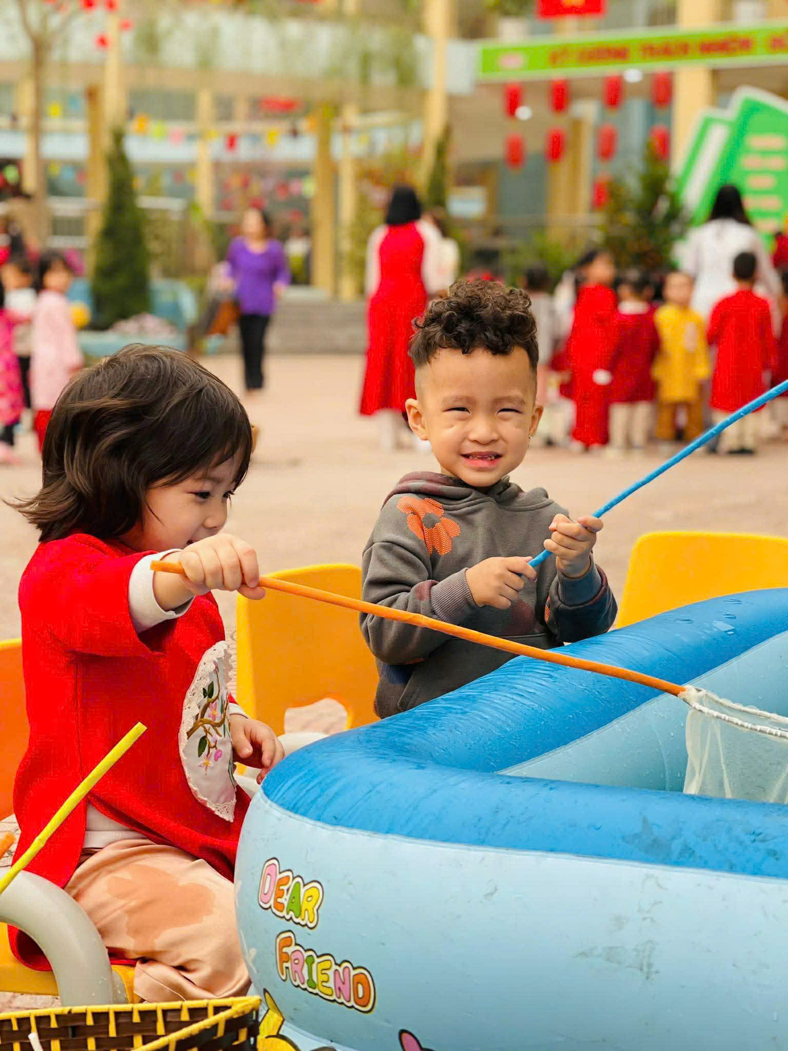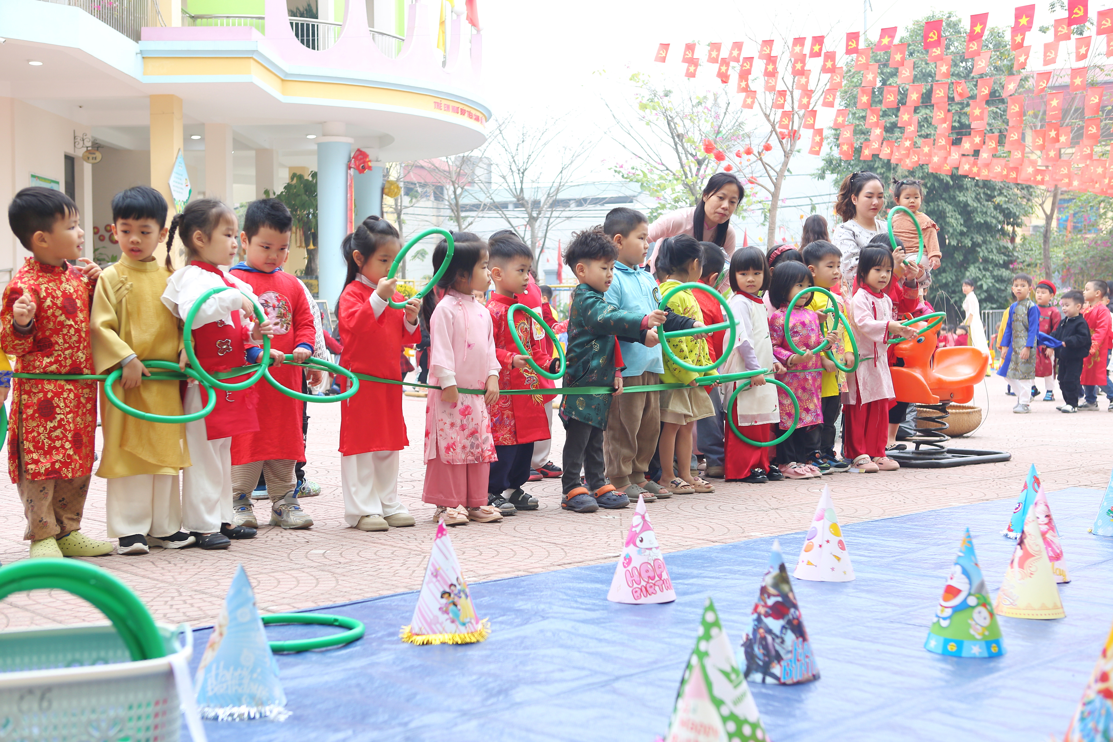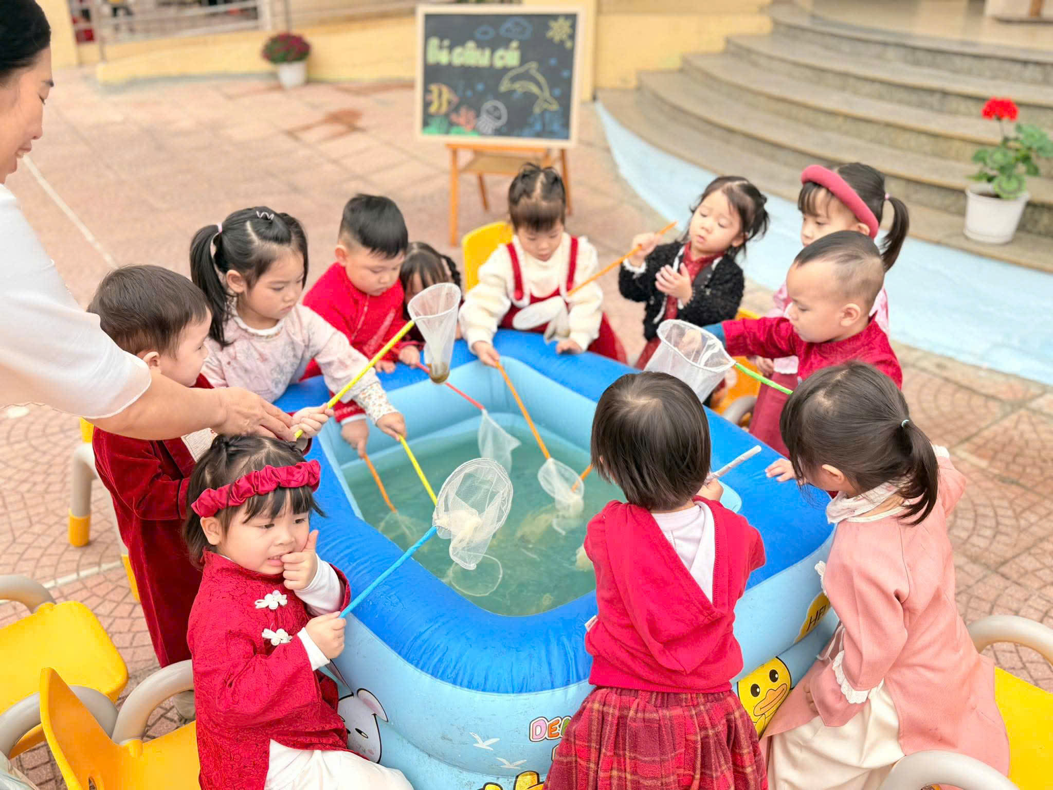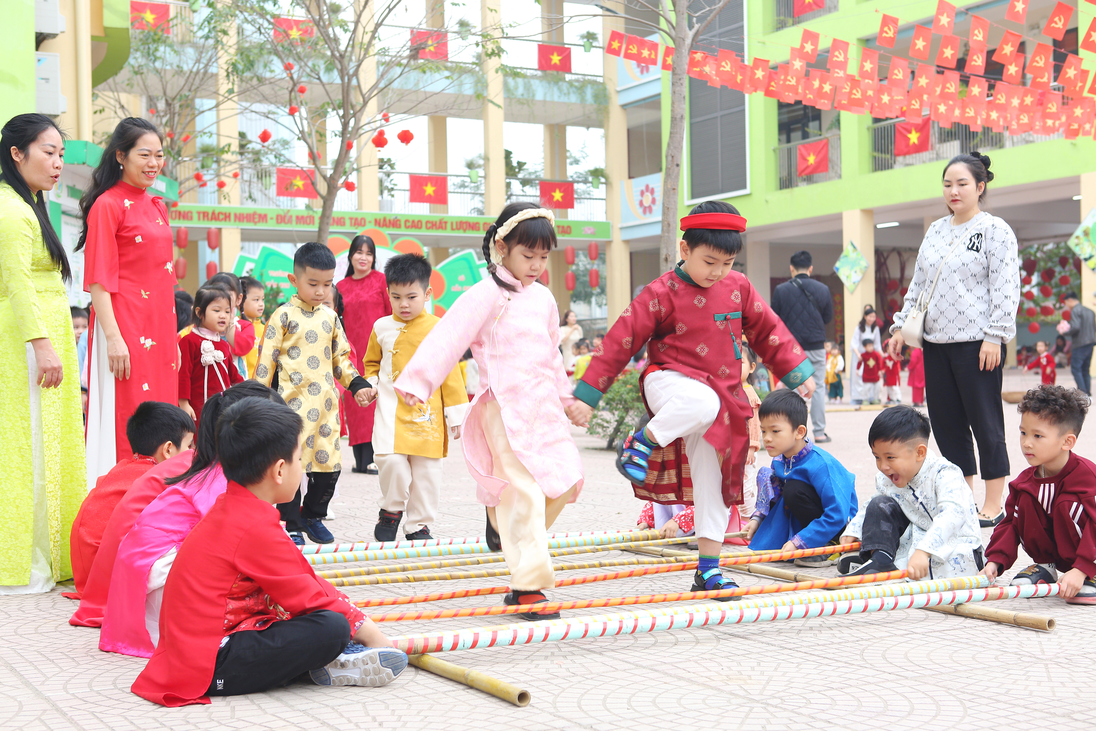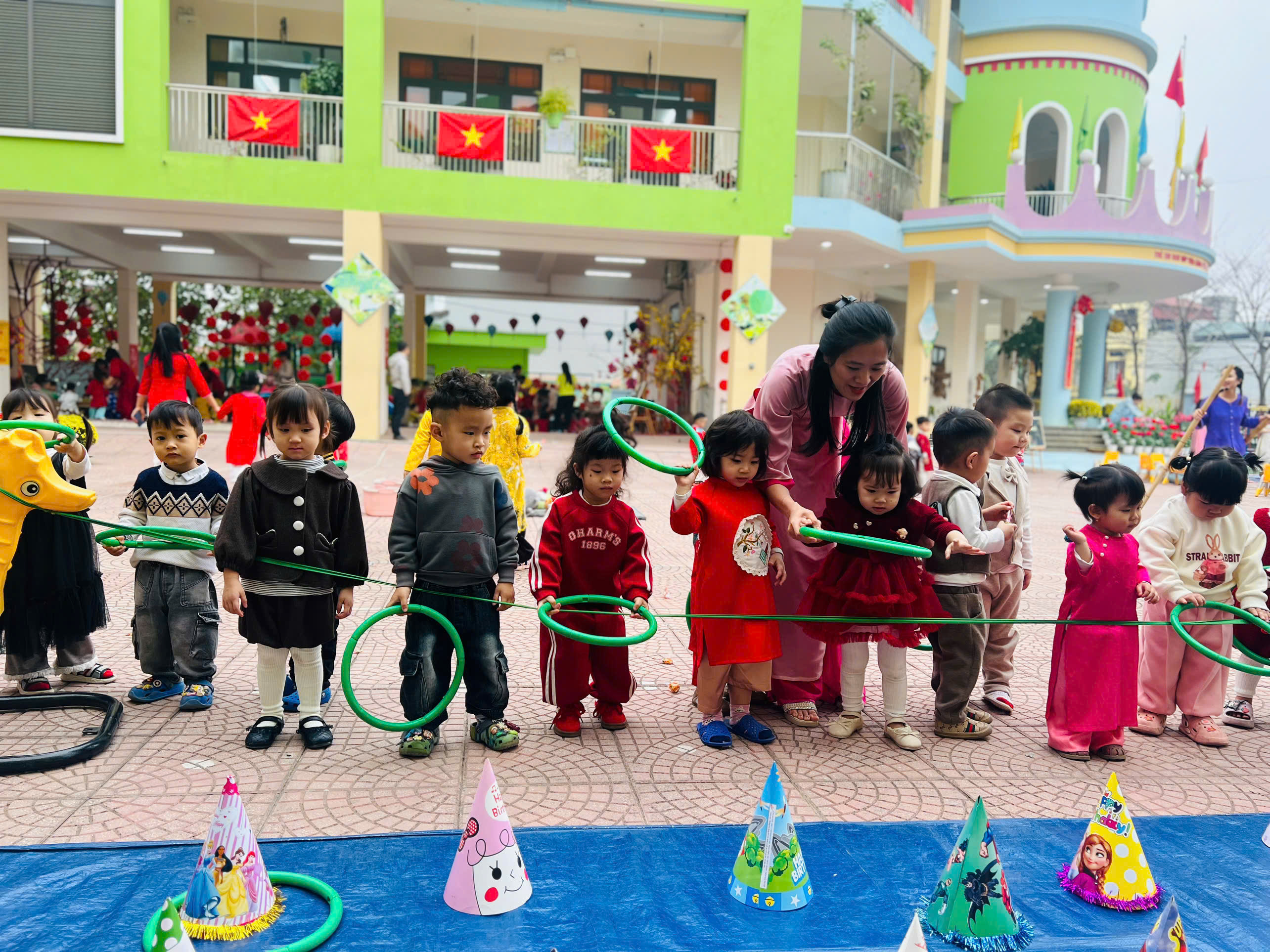 Sáng nay (05/02), ngày đầu tiên của chuỗi sự kiện "Chào Xuân 2026" tại Mầm non Vĩnh Ninh không chỉ có tiếng cười mà còn có cả mồ hôi (vì chơi nhiều quá đấy ạ!). Hãy cùng điểm lại những khoảnh khắc tuyệt vời sáng nay: