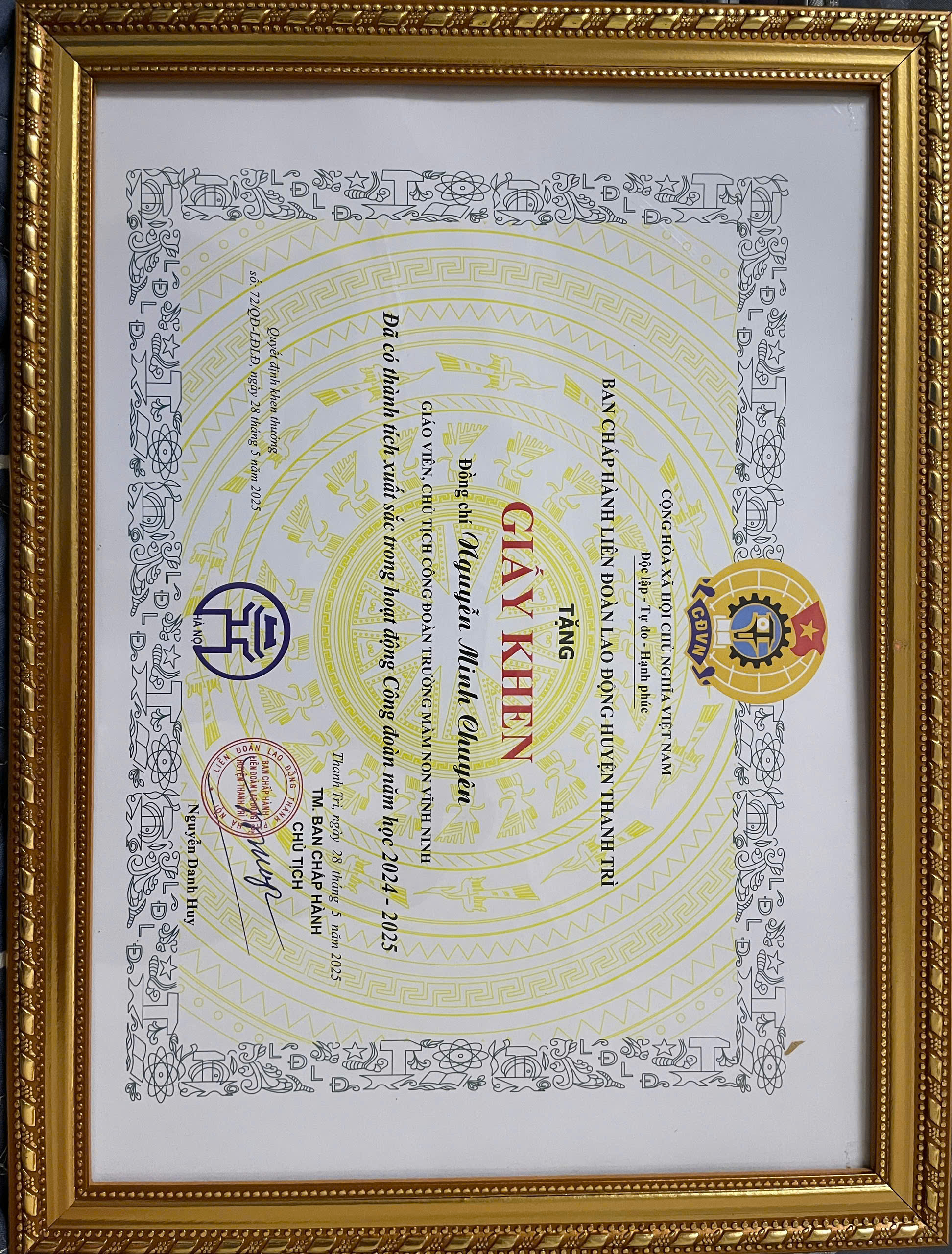 Trong suốt hơn 20 năm công tác cô luôn hoàn thành xuất sắc mọi nhiệm vụ, được phụ huynh tin tưởng, được đồng nghiệp tin yêu. Là một Chủ tịch công đoàn mẫu mực, cô càng hiểu sâu sắc giá trị của sự sẻ chia, kết nối và bảo vệ quyền lợi cho anh chị em công đoàn viên. Cô không ngại kh