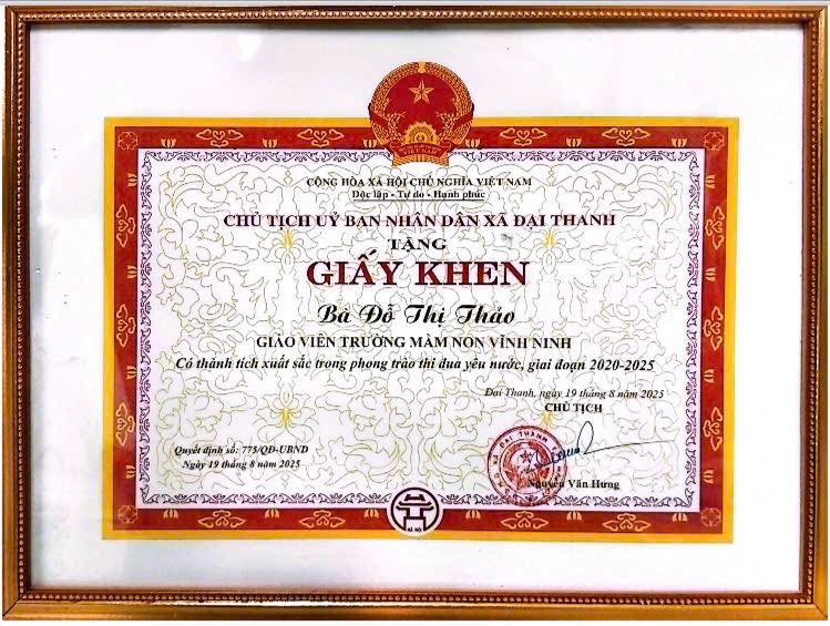 Hôm nay, ngày 25/8/2025, cô giáo Đỗ Thị Thảo của trường Mầm non Vĩnh Ninh đã vinh dự được Ủy b