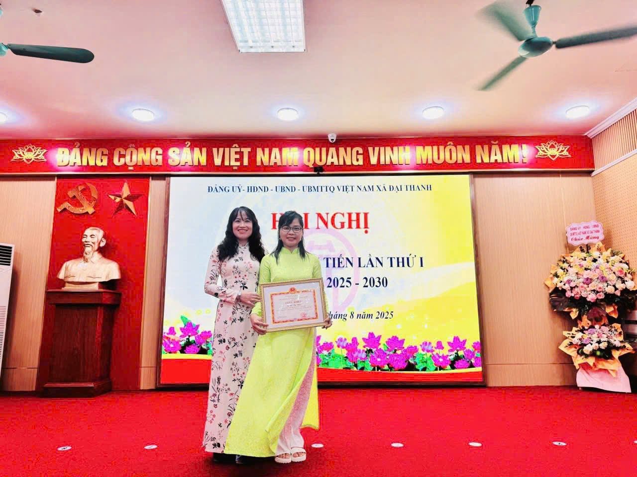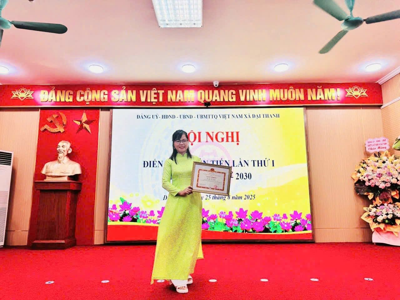 an Nhân dân xã Đại Thanh tặng giấy khen " Cá nhân xuất sắc trong phong trào thi đua yêu nước giai đoạn 2020-2025"